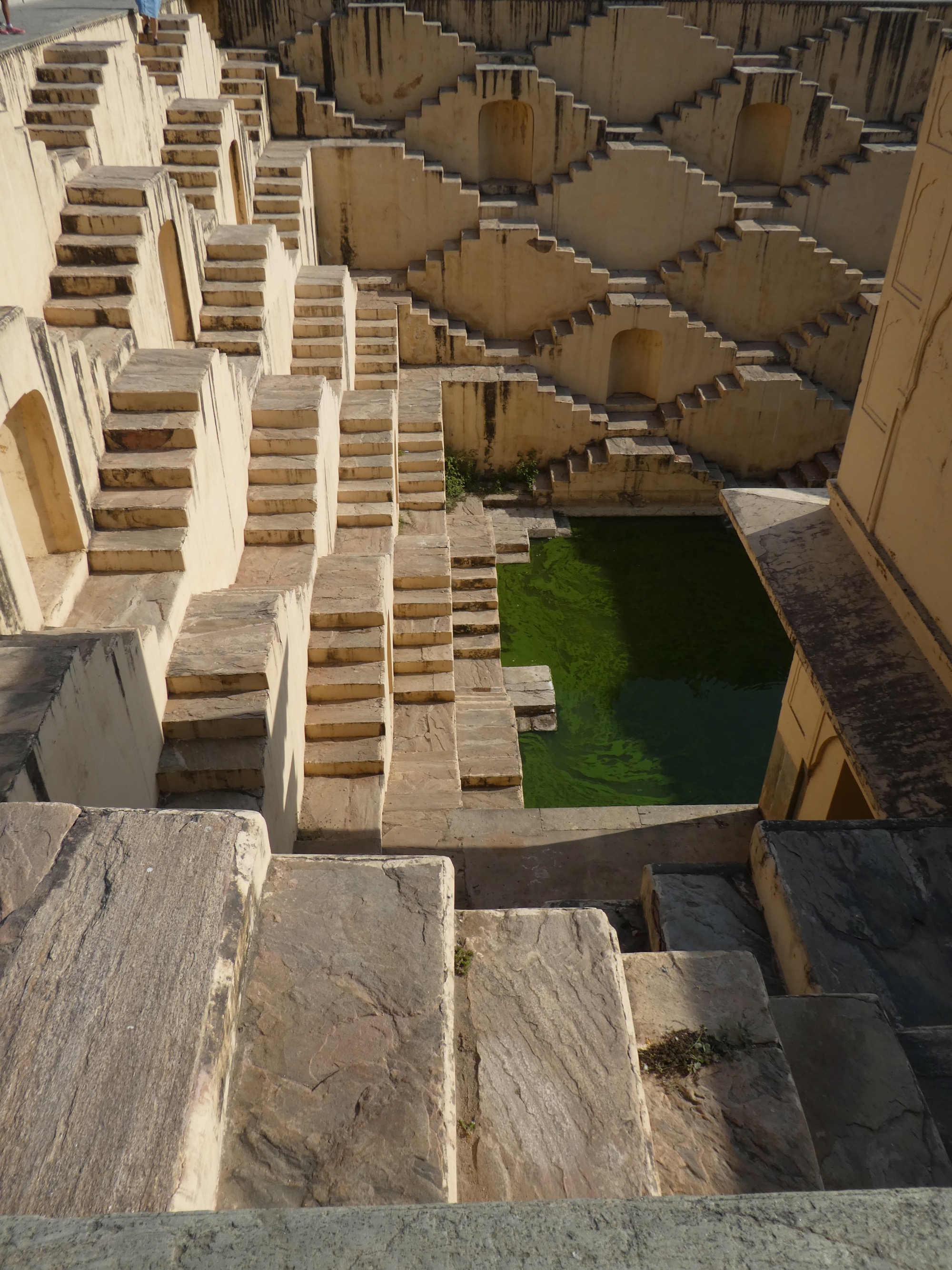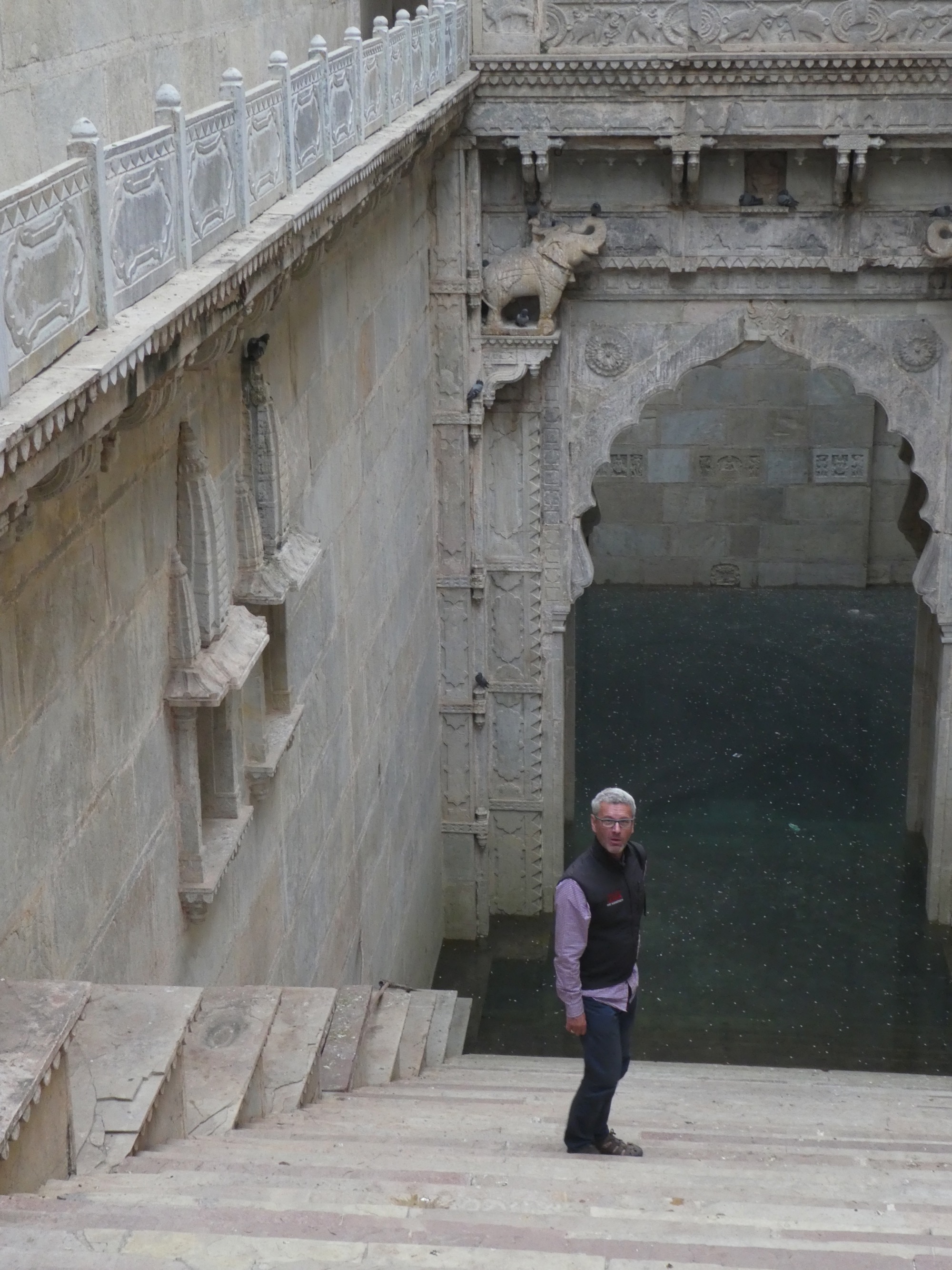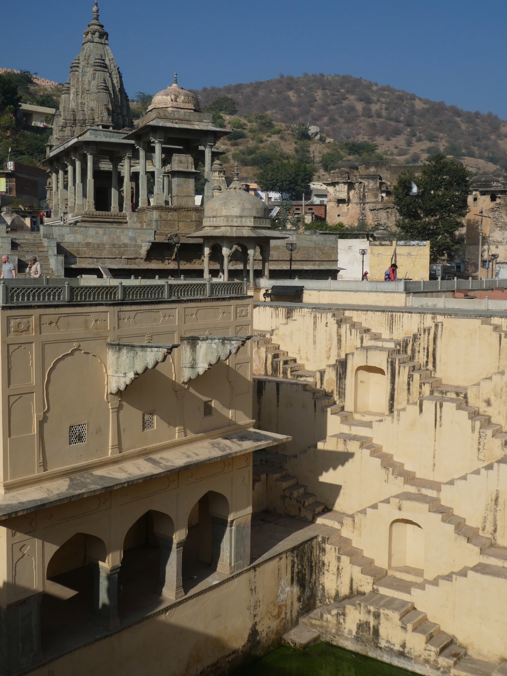 Zum Einfahren haben wir uns als erste Etappe in weiser Voraussicht  auch nur eine kurze Distanz ausgesucht. Das Amber Fort 20 km außerhalb von Jaipur steht für heute noch auf der ToDo-Liste. Eine große imposante Festungsanlage, durch die wir am Spätnachmittag bummeln. Am nächsten Morgen noch die Stepwells angeschaut – auch optisch eine interessante Konstruktion. Hinuntersteigen ist nicht erlaubt – da erschallt sofort die Trillerpfeife …