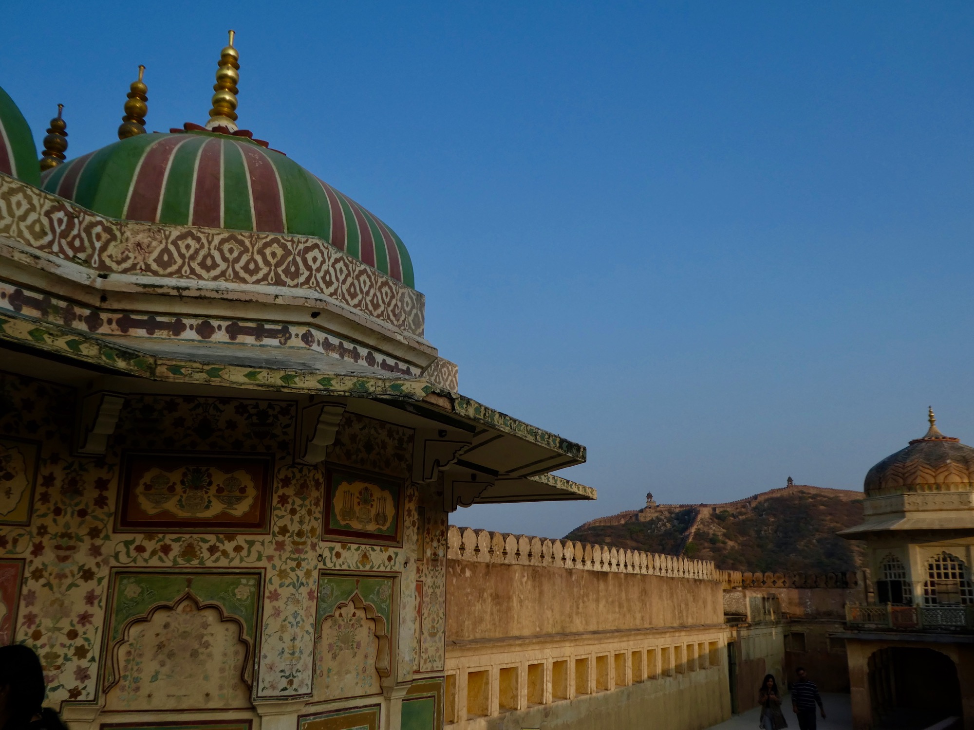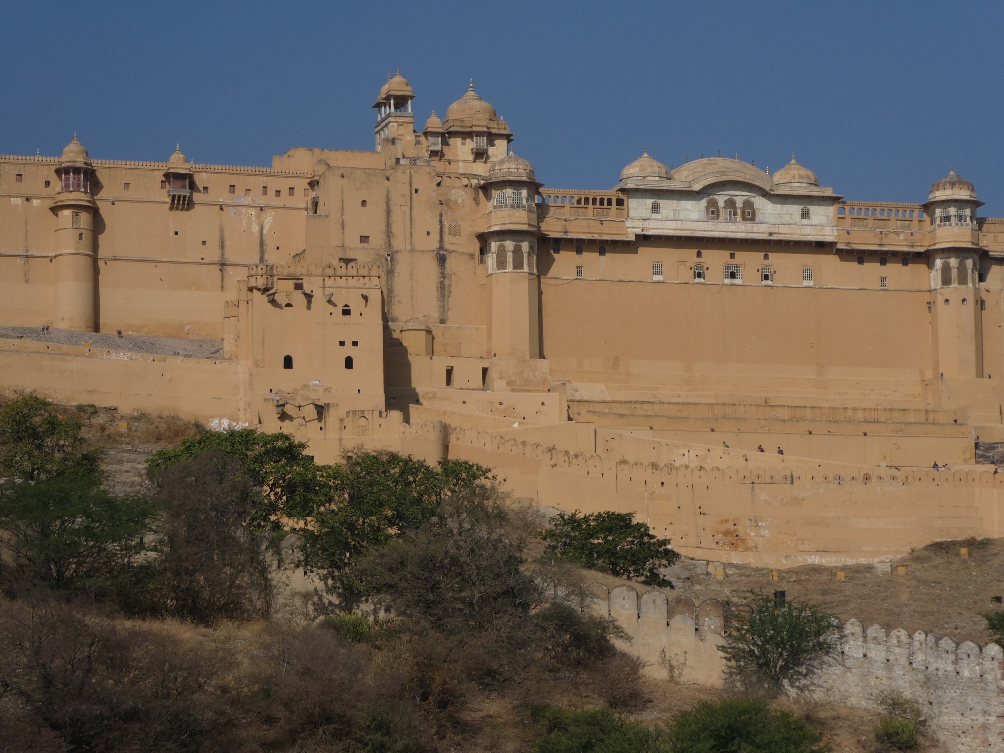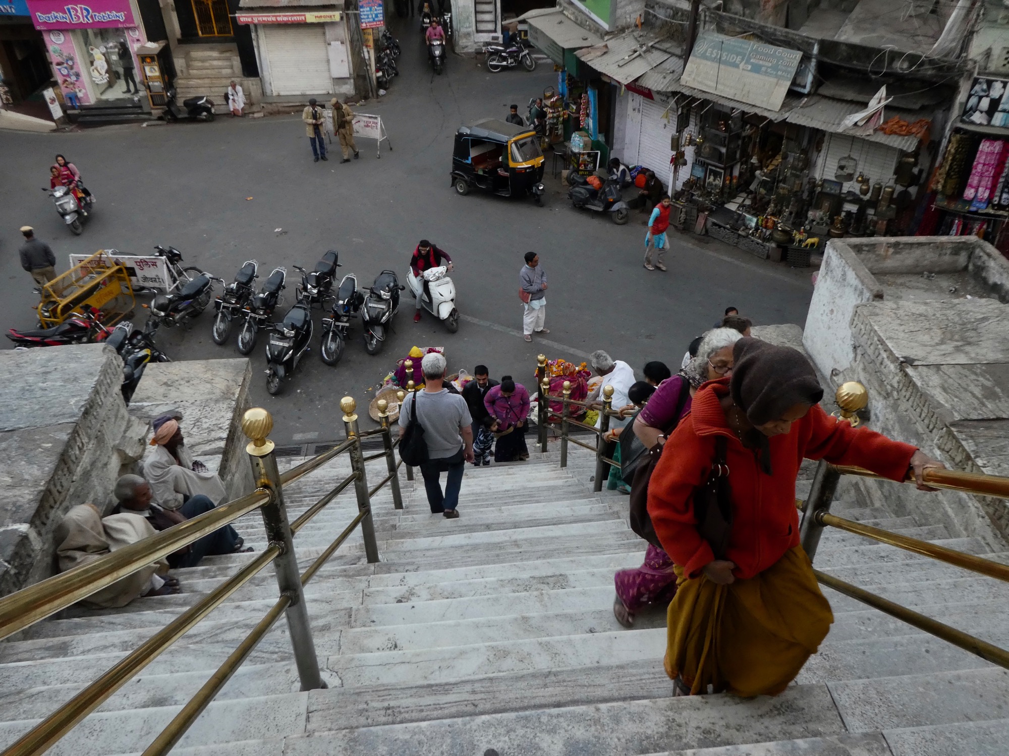 Zum Einfahren haben wir uns als erste Etappe in weiser Voraussicht  auch nur eine kurze Distanz ausgesucht. Das Amber Fort 20 km außerhalb von Jaipur steht für heute noch auf der ToDo-Liste. Eine große imposante Festungsanlage, durch die wir am Spätnachmittag bummeln. Am nächsten Morgen noch die Stepwells angeschaut – auch optisch eine interessante Konstruktion. Hinuntersteigen ist nicht erlaubt – da erschallt sofort die Trillerpfeife …