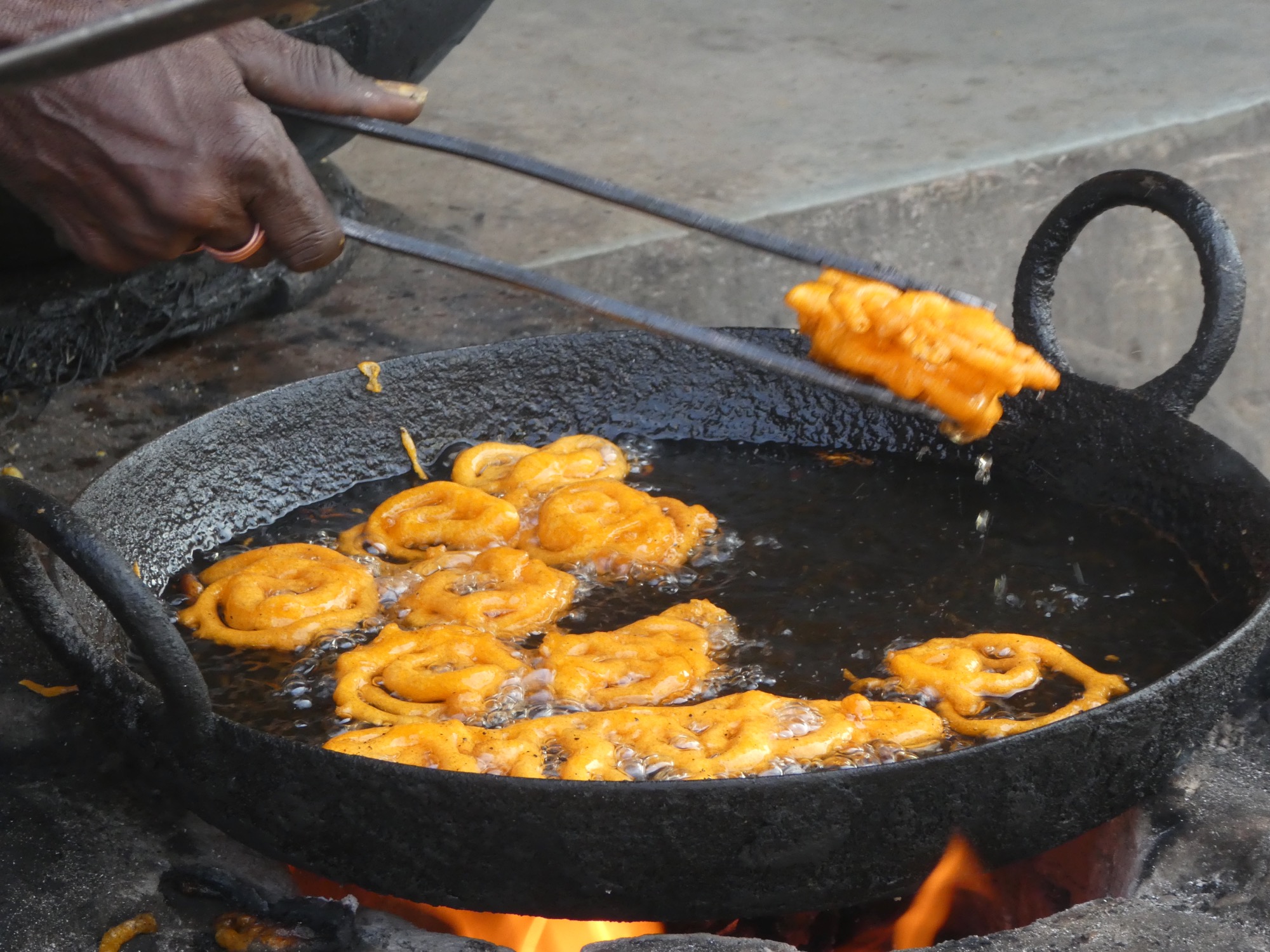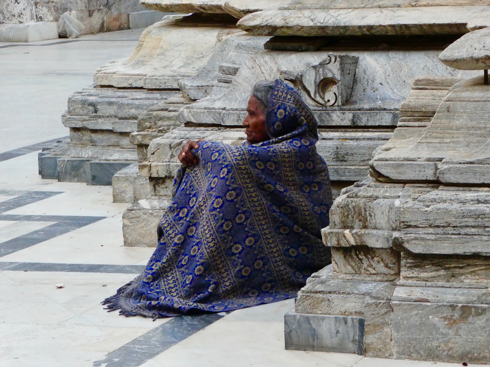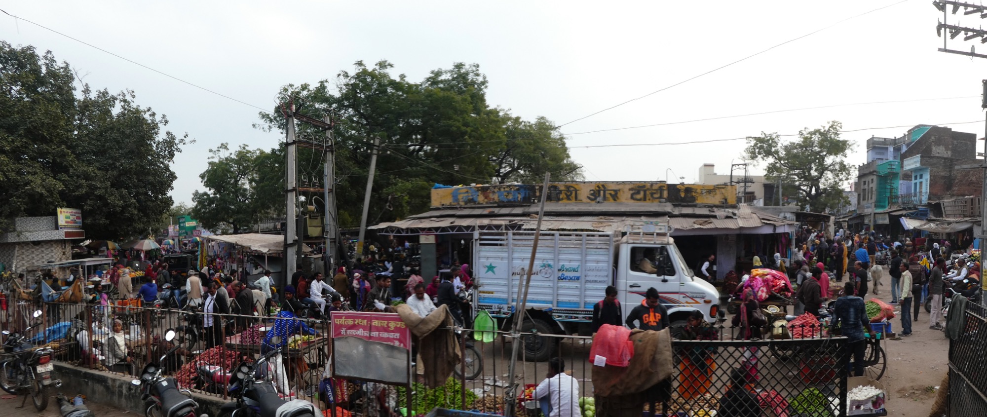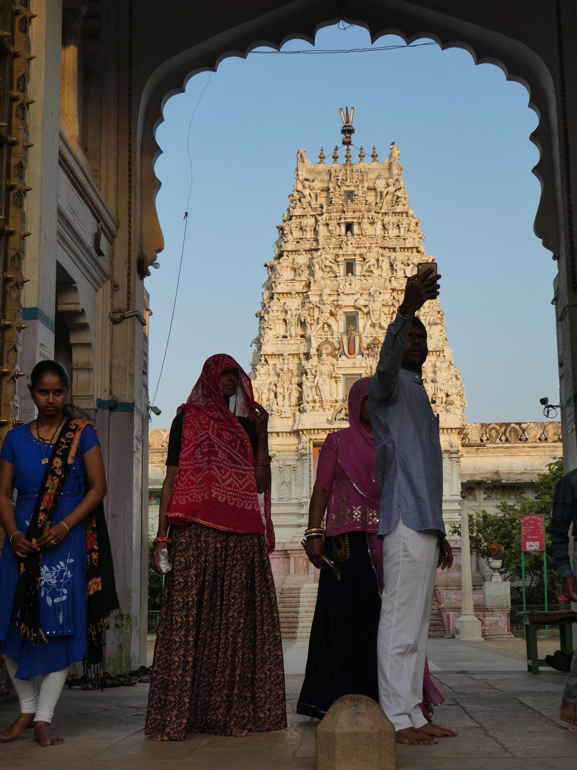 Kreisverkehre sind übrigens wie gemacht für Indien – je mehr Zufahrten desto mehr Chaos, am liebsten noch mit einem Tempel im Zentrum – der Adressat fürs Stoßgebet … Jeder fährt in den Kreisel ein bis zur absoluten Blockade – tut sich eine Lücke auf, wird sie sofort von einem Moped oder Fahrrad geschlossen. Irgendwo blinkt eine Ampel oder ein Uniformierter trillert auf seiner Pfeife und schwingt einen hölzernen Stab wie einen Dirigentenstab – alles ohne große Wirkung. Höchste Konzentration für alle und auch hier ist die Fahrrichtung flexibel.