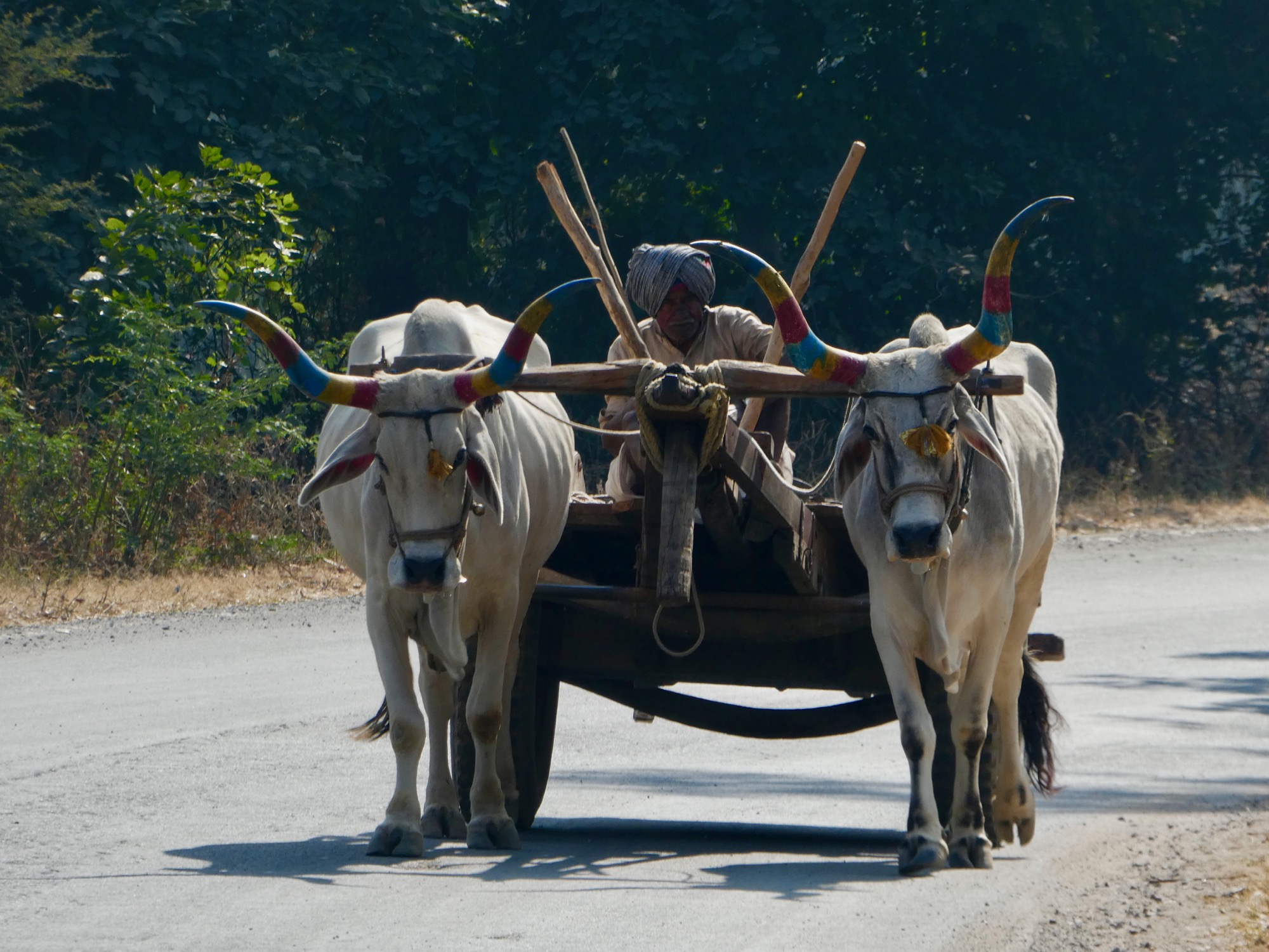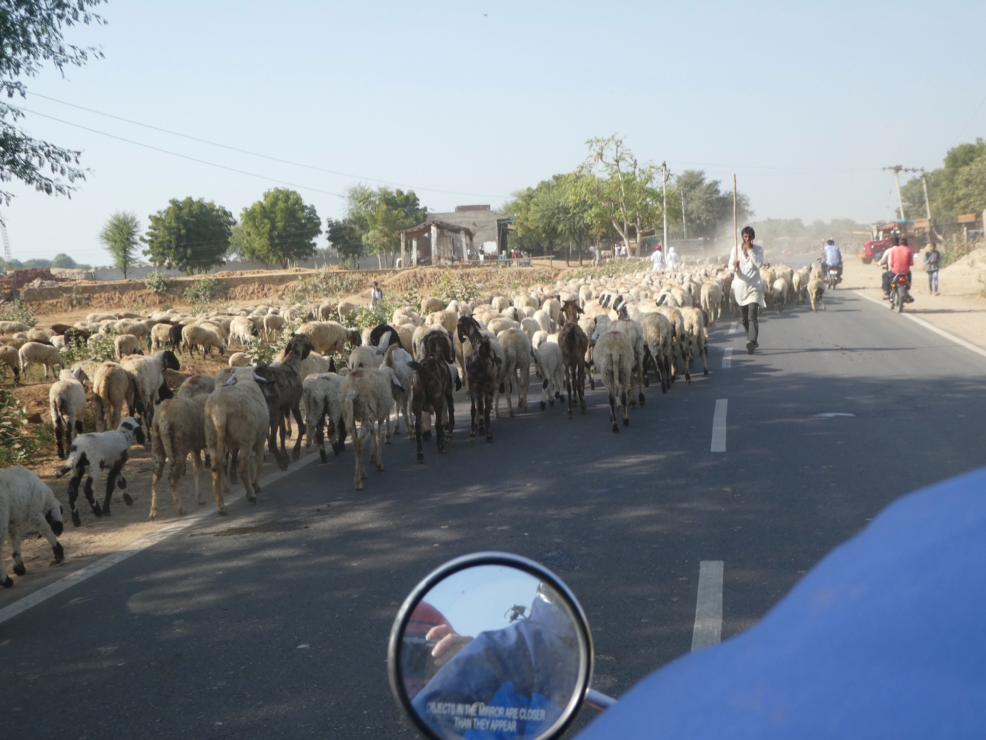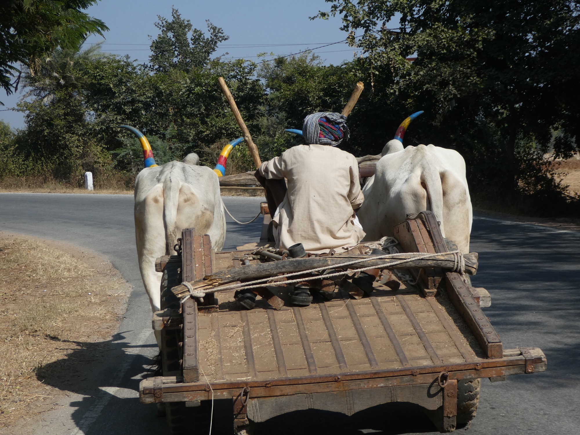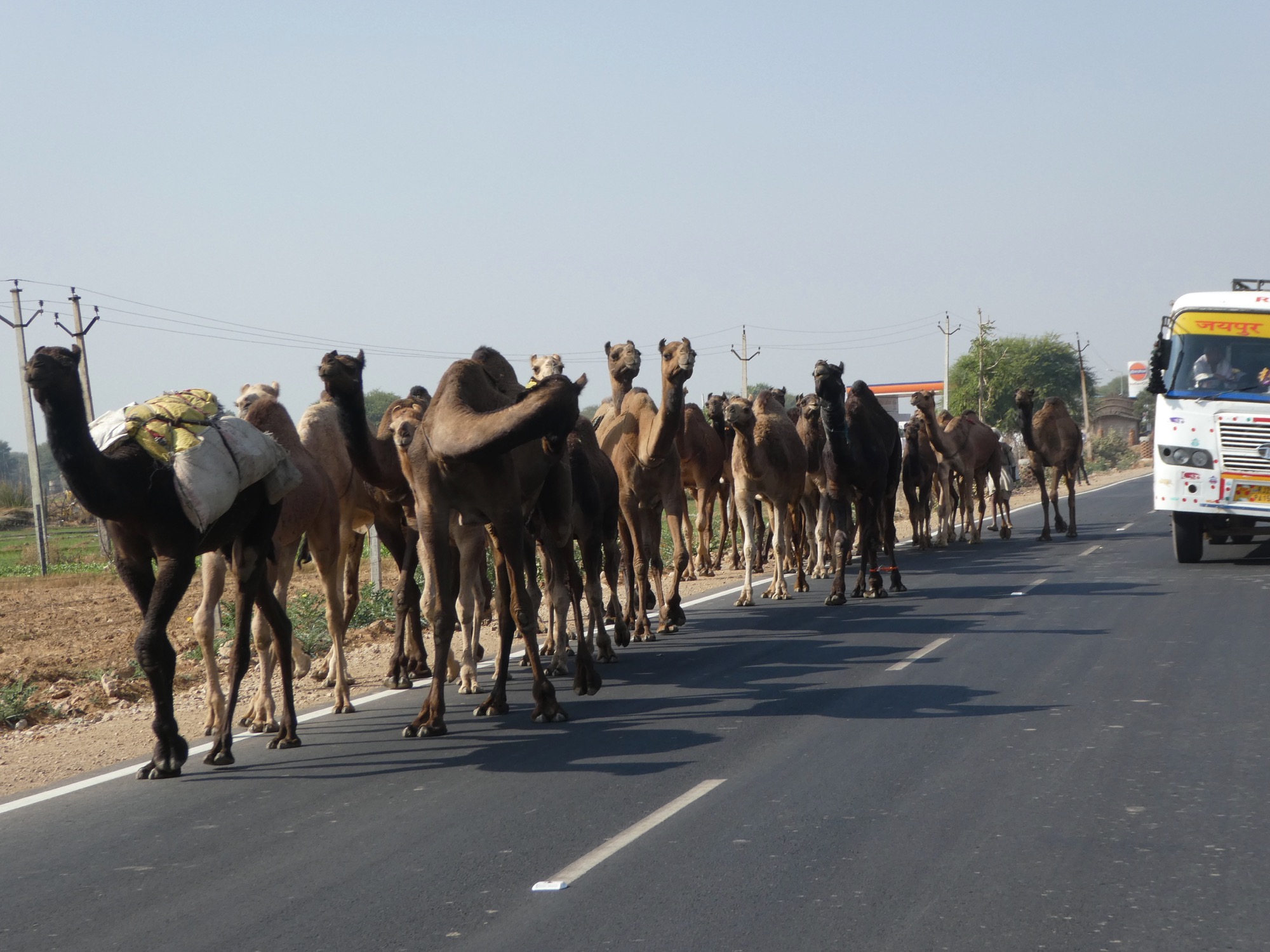 Immerhin kann man sich – wahrscheinlich einem darwinistischen Prinzip folgend – darauf verlassen, dass im Verkehr alle aufmerksam sind – Rücksichtsname ist allerdings ein Fremdwort. Die totale Unberechenbarkeit gilt dann für die indische Tierwelt, die wir auf den Straßen antreffen – Kühe, Wasserbüffel, Kamele, Elefanten, Pferde, Ziegen, Schafe, Haus- und Wildschweine, Affen, Pfaue und was auch immer. Kühe sind einfach überall: In den Städten, auf den Landstraßen und Expressways – auf letzteren lieben sie insbesondere den Mittelstreifen.