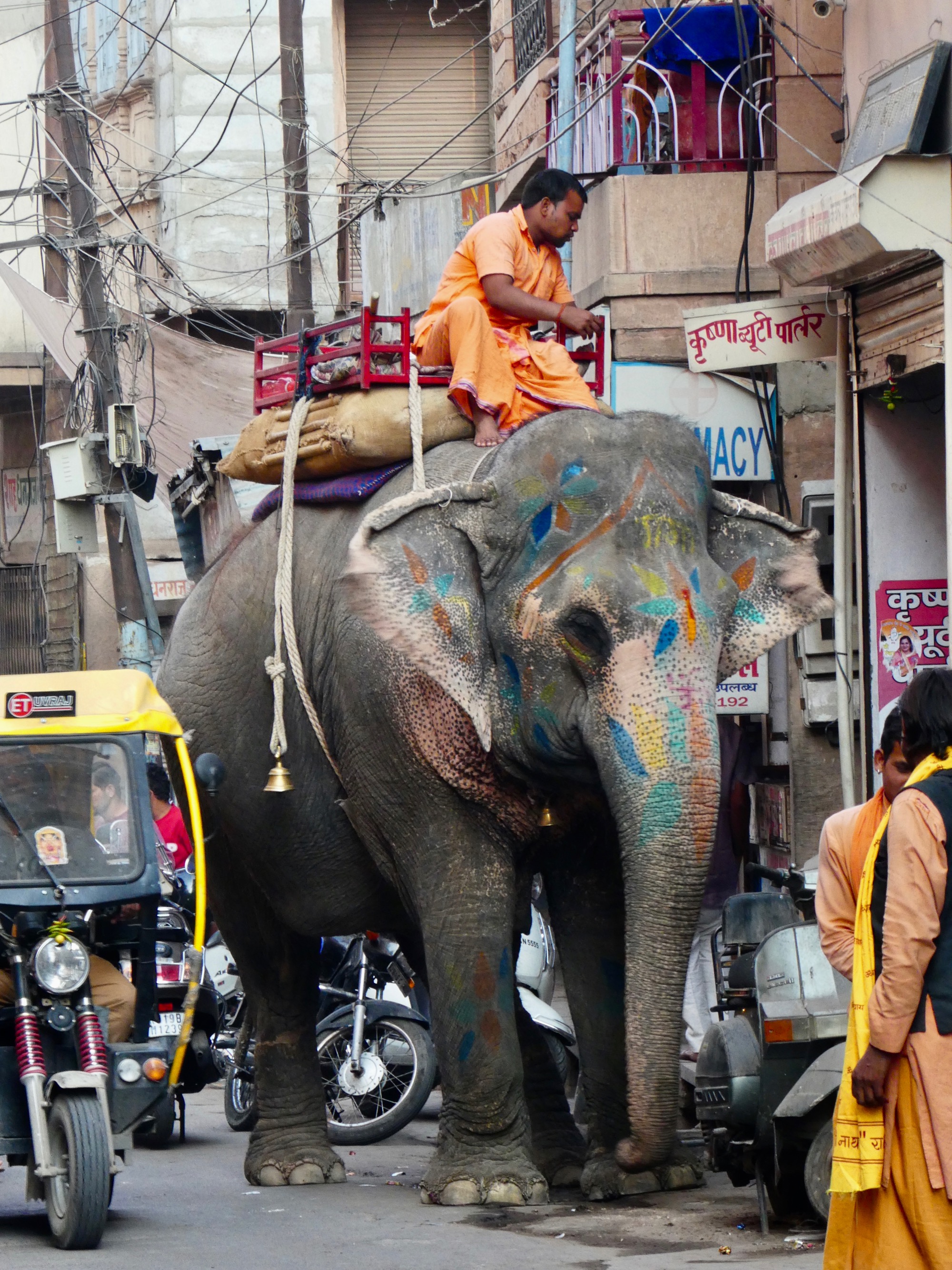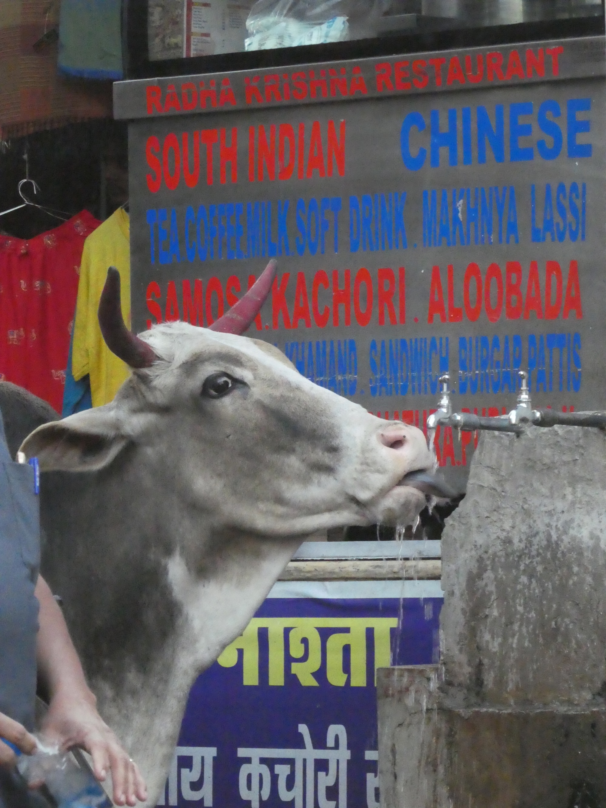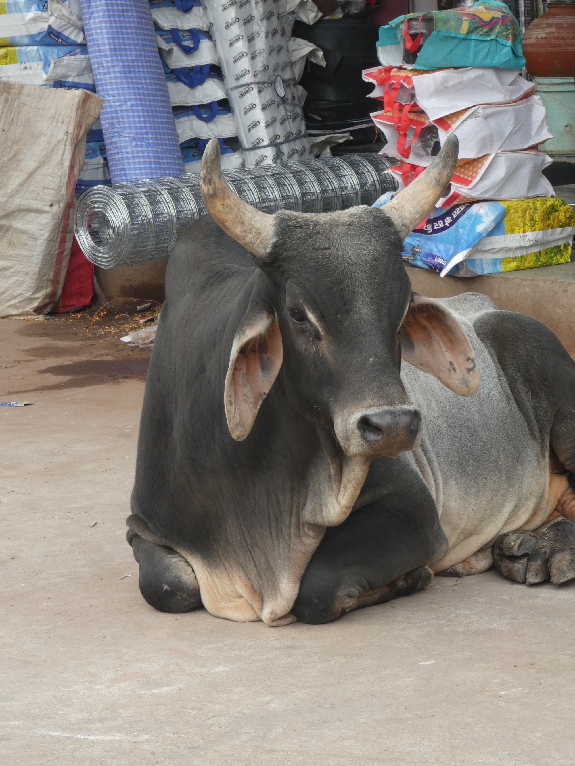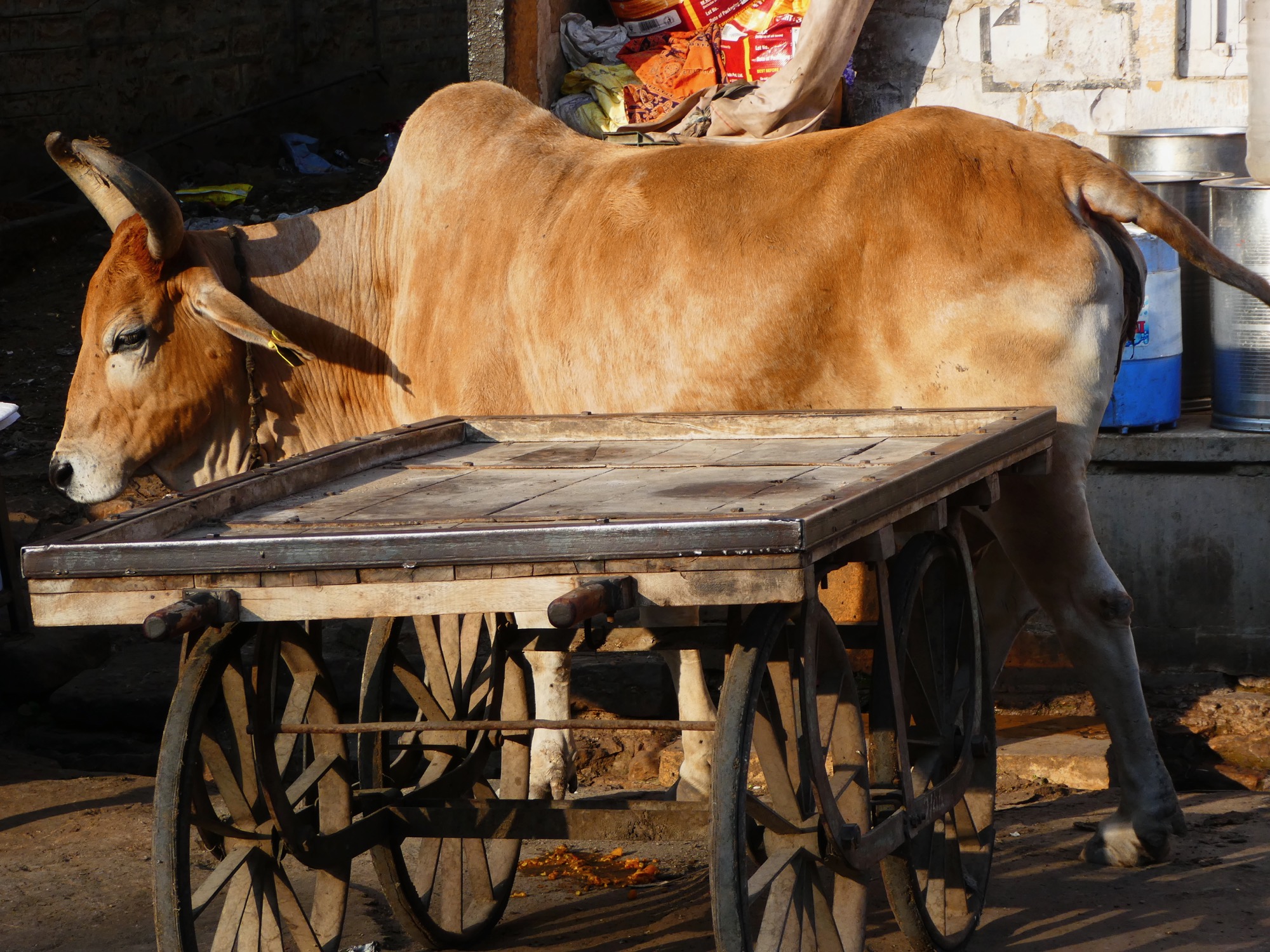Immerhin kann man sich – wahrscheinlich einem darwinistischen Prinzip folgend – darauf verlassen, dass im Verkehr alle aufmerksam sind – Rücksichtsname ist allerdings ein Fremdwort. Die totale Unberechenbarkeit gilt dann für die indische Tierwelt, die wir auf den Straßen antreffen – Kühe, Wasserbüffel, Kamele, Elefanten, Pferde, Ziegen, Schafe, Haus- und Wildschweine, Affen, Pfaue und was auch immer. Kühe sind einfach überall: In den Städten, auf den Landstraßen und Expressways – auf letzteren lieben sie insbesondere den Mittelstreifen.