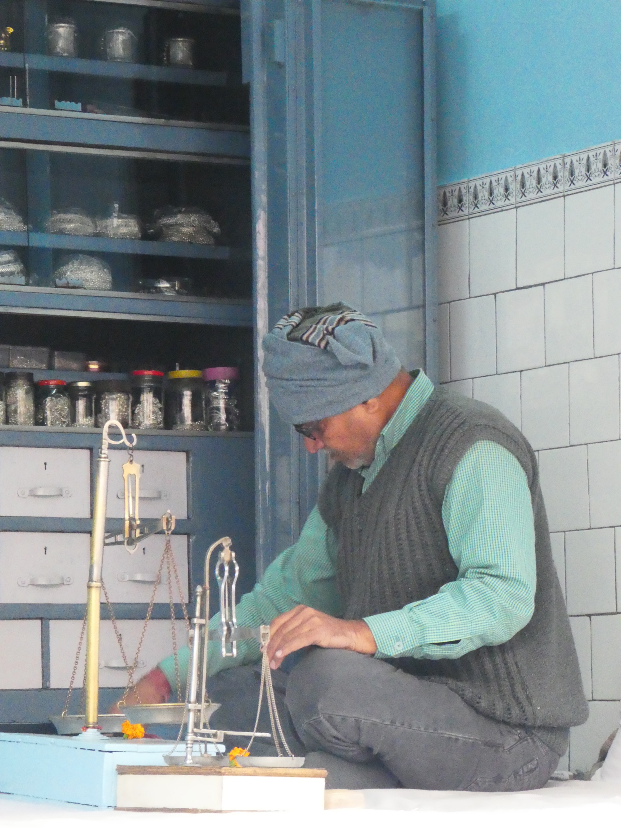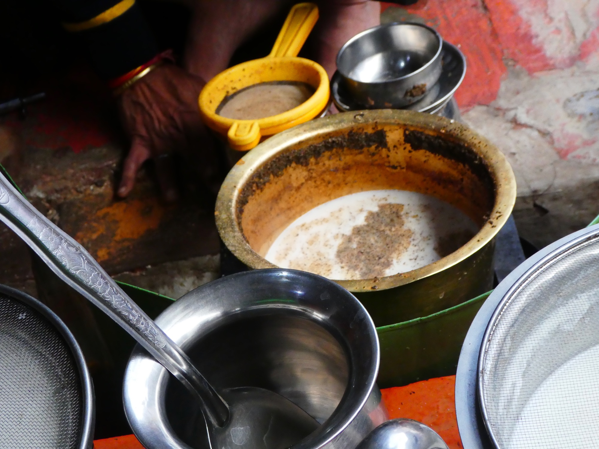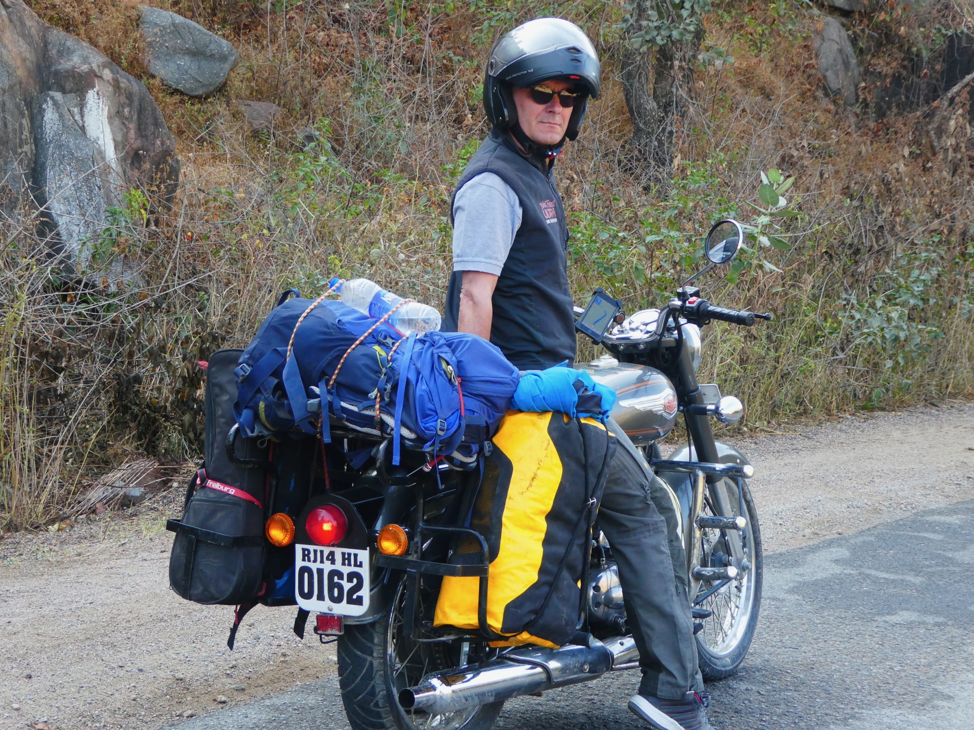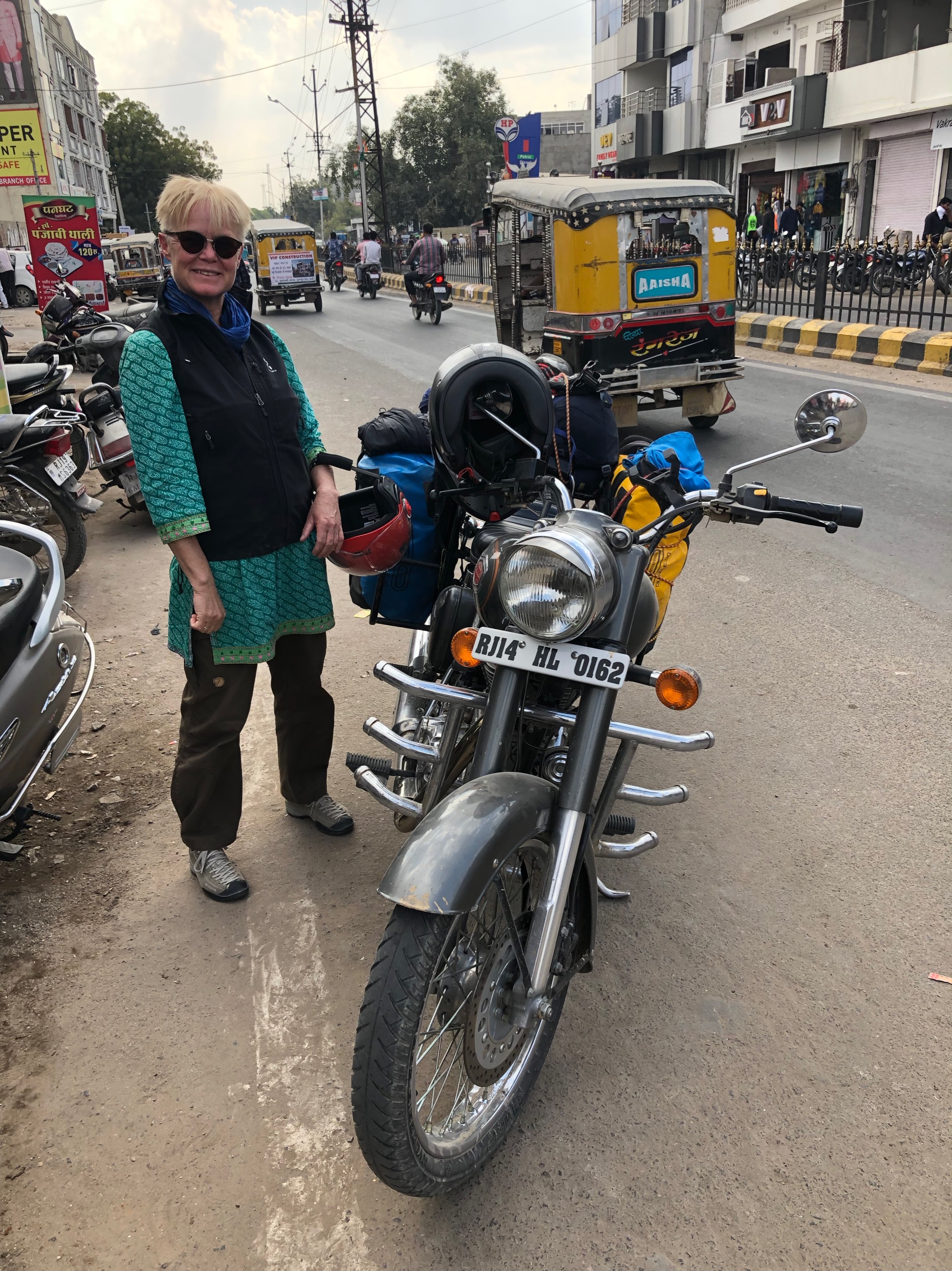Am nächsten Morgen sortieren wir wieder mal unser Gepäck um – diesmal muss ja alles aufs Motorrad passen. Zwei 40l Ortliebtaschen (… die haben inzwischen auch schon Einiges erlebt …) und ein 35l Rucksack. Ich schaue schon etwas kritisch, ob das mit uns zusammen auf ein Bike passt … Am nächsten Morgen holt uns unser LieblingsRikschaFahrer Max ab und fährt uns zu Javeds Shop. Hier geht es gewohnt indisch zu: Erstmal einen Chai … das reservierte Bike hatte am Morgen bei der Testfahrt geschwächelt, also wird der Gepäckträger auf ein anderes Bike ummontiert. Und einen Helm für meinen Frauenkopf gibt’s auch nicht – kein Problem … wir werden mit Max erstmal zum Bazar geschickt – einen Helm kaufen! Chris braucht noch Handschuhe und „Bikeschuhe“. Bis dahin ist dann auch das Bike fertig und wir trauen uns ins wahre Leben …