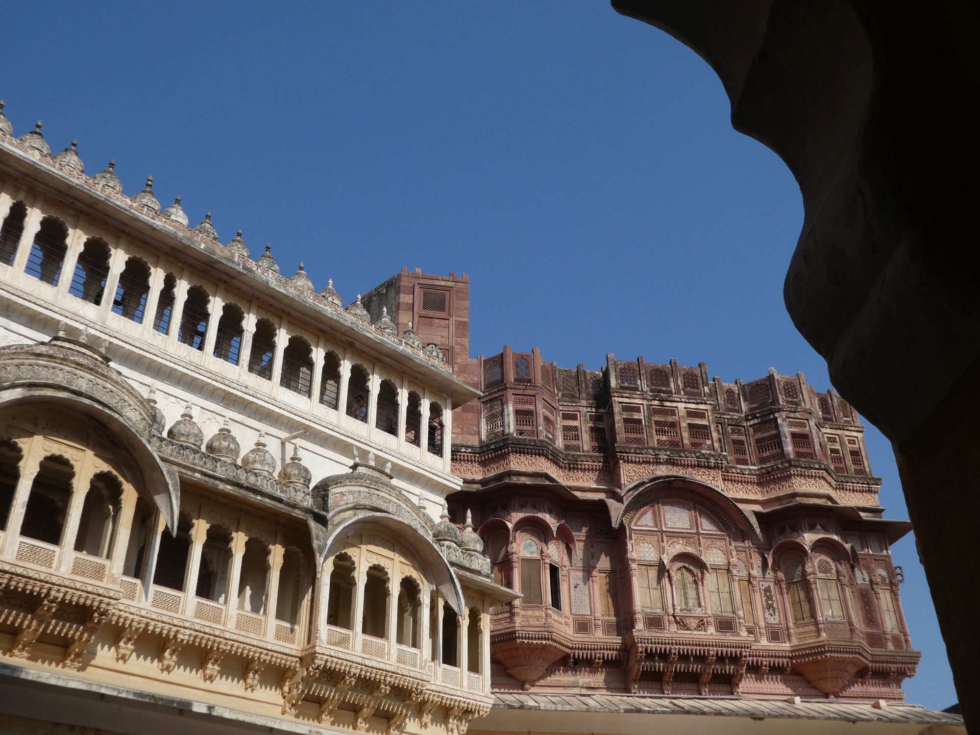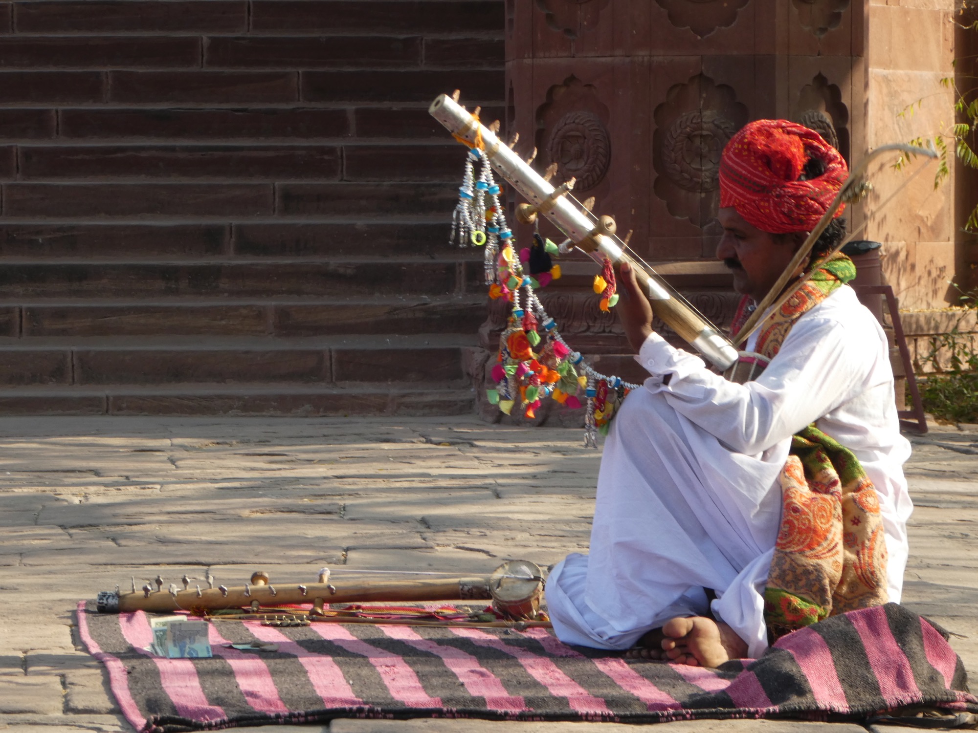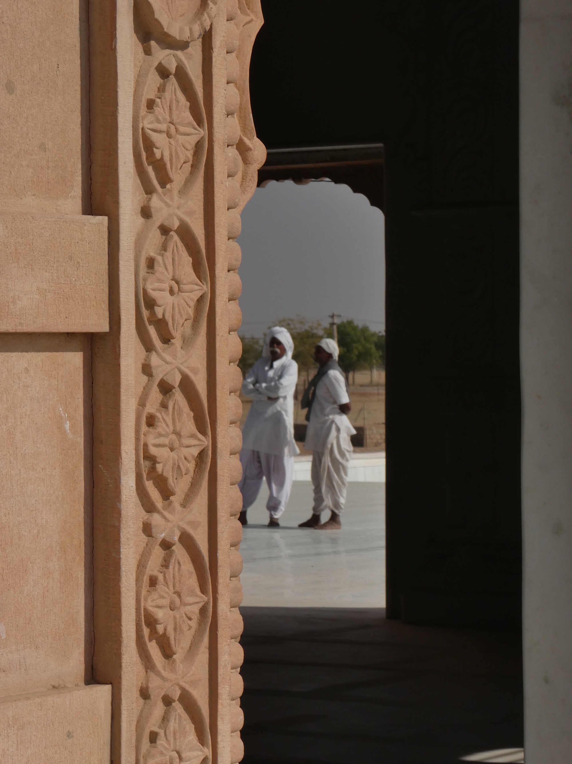 Und dann steht heute eine lange Etappe Richtung Norden auf dem Plan – am frühen Nachmittag wird klar, dass wir es nicht bis Bikaner schaffen und plötzlich auch gar nicht so recht wissen, warum wir dort eigentlich hinwollten. Die anvisierte Wüstentour mit den Dromedaren haben wir wegen schönerer Dünen eh nach Jaisalmer verlegt. Also spontan umgeplant und in Nagaur ein Hotel gesucht. In einem Riesenpalazzo (diese Dinger werden hauptsächlich für Hochzeiten und sonstige große Feste genutzt) werden wir freundlich empfangen – und einigen uns nach einigem Hin-und Her auch auf einen reellen Zimmerpreis. „Und – ja, die laute Musik dauert nur noch eine Stunde, dann ist komplette Ruhe!“ Wir dürfen so lange an den Swimmingpool auf der anderen Straßenseite. Und uns dort aus zehn dreckigen Handtüchern das Sauberste raussuchen – die haben echt Nerven, die Inder! Aber das Wasser ist picobello und die laute Musik, die als Service für uns dort auch gleich angestellt wird können wir durch wilde Handzeichen wieder abstellen … Nach einem erfrischenden Bad (… auch in Rajasthan nähern sich die Nachttemperaturen dem Winter und die Wassertemperatur passt sich an …) kommen wir zurück ins Hotel. Immer noch laute Musik und es werden neben großen Boxen unterhalb unseres Zimmers weitere Aufbauten getätigt. Nun doch mal schnell die Akteure gefragt, was hier eigentlich abgeht – ohhhh, am Abend gibt es einen Song-Contest wird mit begeistertem Lächeln erzählt. Uns entgleist das Lächeln etwas und es kommt zu einer kurzen aber zackigen Diskussion mit dem Hotelmanager, der uns so ungeniert belogen hatte. Wir ziehen um ins Hotel gegenüber ( … inzwischen ist es dunkel und nur noch die Aussicht auf einen einigermaßen ruhigen Nachtschlaf prägt die Auswahl). Als es im Foyer des neuen Hotels noch Diskussionen um die Rückgabe der geleisteten Anzahlung gibt ( …wir hätten ja den Pool benutzt … Eintritt 20 Rp … für uns wären es dann 500 Rp gewesen) musste ich dann doch mal etwas lauter werden – Ende vom Lied: Viele interessierte Blicke des Restaurantpublikums, 500 Rp auf die Hand zurück und unser Gepäck wurde vom Hotelpersonal zum neuen Quartier rübergetragen. Auch wir gewöhnen uns an rauhen Tonfall zur richtigen Zeit – und geben dann gerne ein abschließendes Lächeln und ein Namaste! zurück.