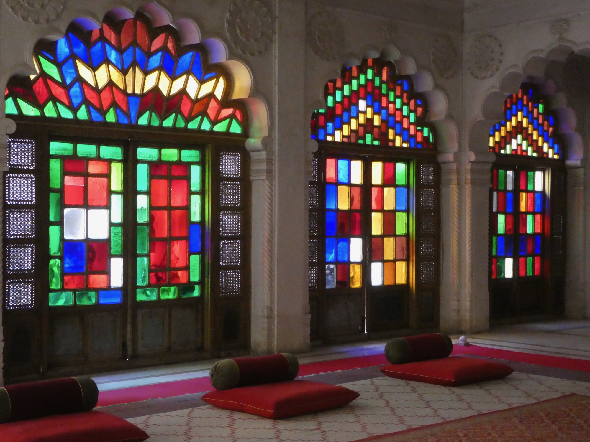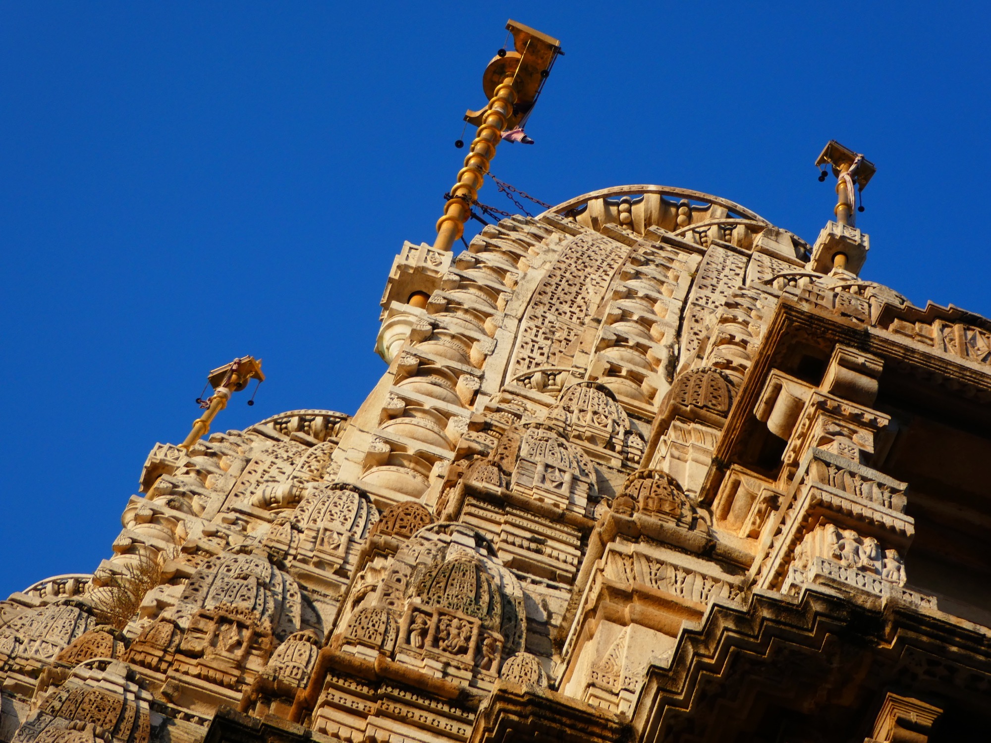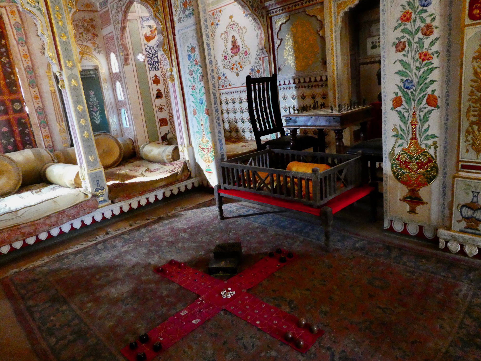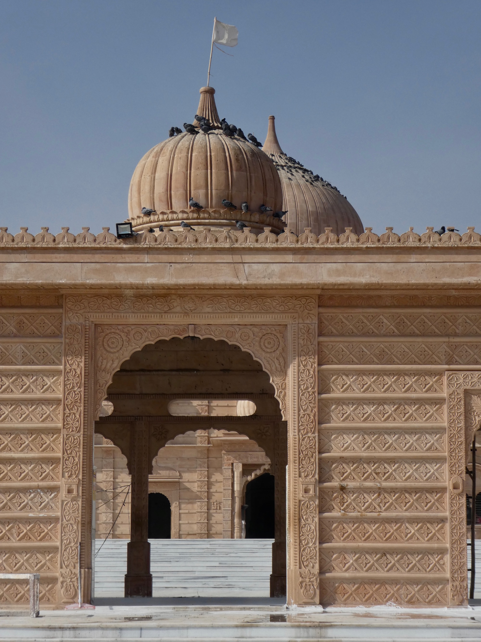 Und dann steht heute eine lange Etappe Richtung Norden auf dem Plan – am frühen Nachmittag wird klar, dass wir es nicht bis Bikaner schaffen und plötzlich auch gar nicht so recht wissen, warum wir dort eigentlich hinwollten. Die anvisierte Wüstentour mit den Dromedaren haben wir wegen schönerer Dünen eh nach Jaisalmer verlegt. Also spontan umgeplant und in Nagaur ein Hotel gesucht. In einem Riesenpalazzo (diese Dinger werden hauptsächlich für Hochzeiten und sonstige große Feste genutzt) werden wir freundlich empfangen – und einigen uns nach einigem Hin-und Her auch auf einen reellen Zimmerpreis. „Und – ja, die laute Musik dauert nur noch eine Stunde, dann ist komplette Ruhe!“ Wir dürfen so lange an den Swimmingpool auf der anderen Straßenseite. Und uns dort aus zehn dreckigen Handtüchern das Sauberste raussuchen – die haben echt Nerven, die Inder! Aber das Wasser ist picobello und die laute Musik, die als Service für uns dort auch gleich angestellt wird können wir durch wilde Handzeichen wieder abstellen … Nach einem erfrischenden Bad (… auch in Rajasthan nähern sich die Nachttemperaturen dem Winter und die Wassertemperatur passt sich an …) kommen wir zurück ins Hotel. Immer noch laute Musik und es werden neben großen Boxen unterhalb unseres Zimmers weitere Aufbauten getätigt. Nun doch mal schnell die Akteure gefragt, was hier eigentlich abgeht – ohhhh, am Abend gibt es einen Song-Contest wird mit begeistertem Lächeln erzählt. Uns entgleist das Lächeln etwas und es kommt zu einer kurzen aber zackigen Diskussion mit dem Hotelmanager, der uns so ungeniert belogen hatte. Wir ziehen um ins Hotel gegenüber ( … inzwischen ist es dunkel und nur noch die Aussicht auf einen einigermaßen ruhigen Nachtschlaf prägt die Auswahl). Als es im Foyer des neuen Hotels noch Diskussionen um die Rückgabe der geleisteten Anzahlung gibt ( …wir hätten ja den Pool benutzt … Eintritt 20 Rp … für uns wären es dann 500 Rp gewesen) musste ich dann doch mal etwas lauter werden – Ende vom Lied: Viele interessierte Blicke des Restaurantpublikums, 500 Rp auf die Hand zurück und unser Gepäck wurde vom Hotelpersonal zum neuen Quartier rübergetragen. Auch wir gewöhnen uns an rauhen Tonfall zur richtigen Zeit – und geben dann gerne ein abschließendes Lächeln und ein Namaste! zurück.