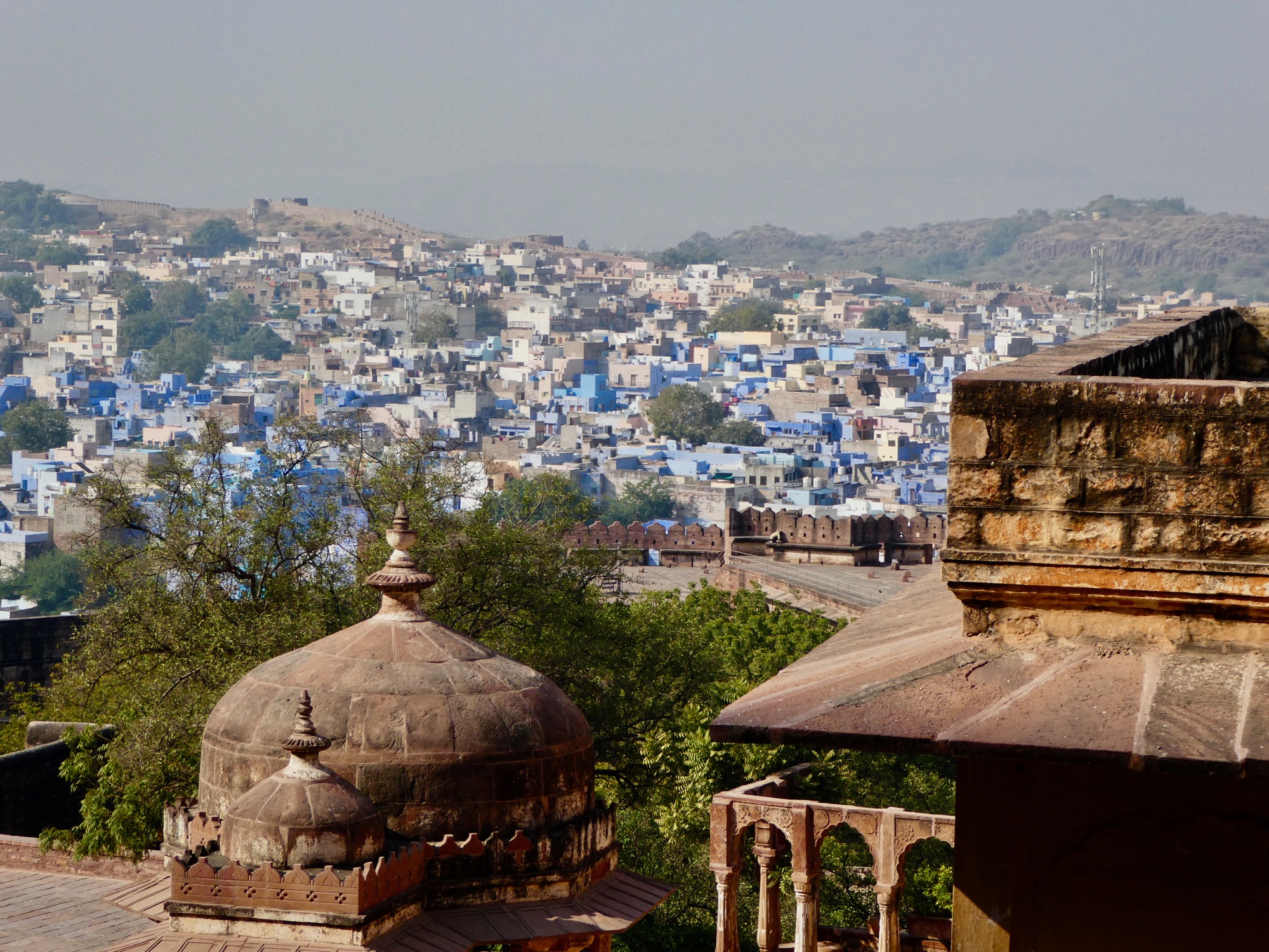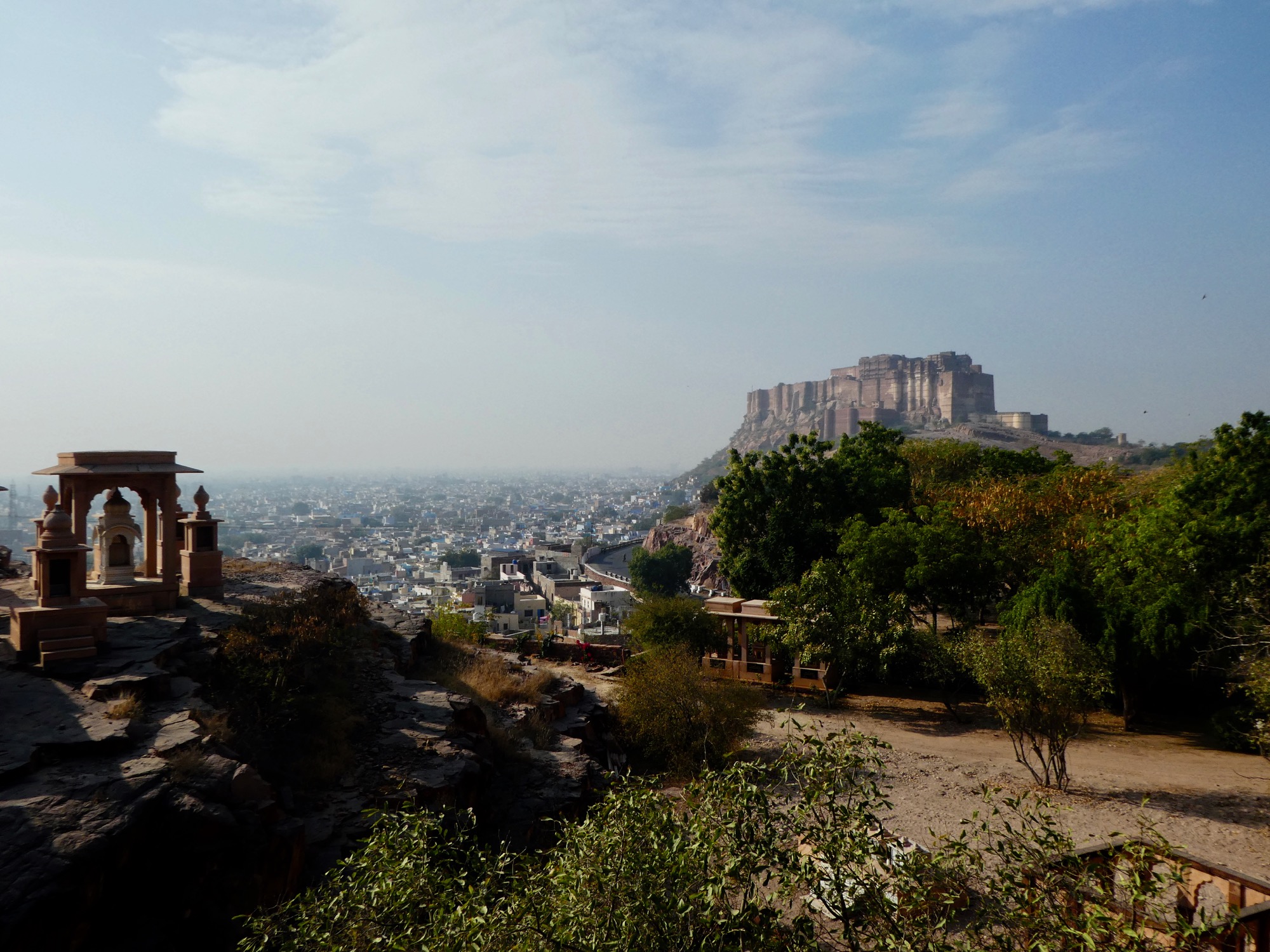 … am nächsten Morgen vom Jaswant Thada , dem königlichen Kremationsplatz und Mausoleum, noch einen letzten Blick auf die blaue Stadt.
