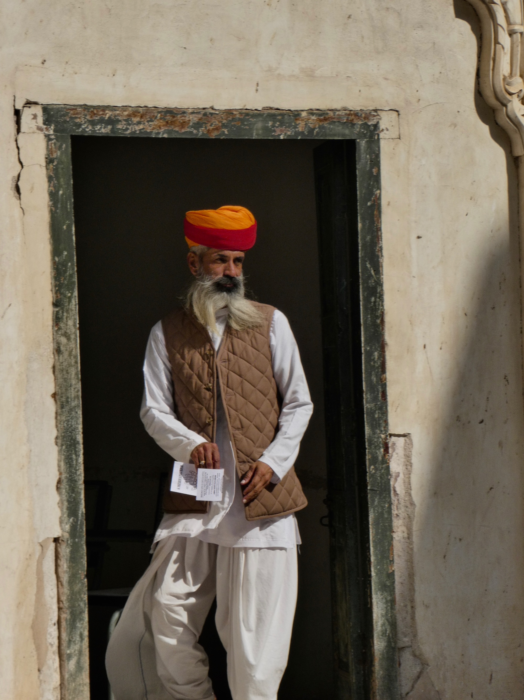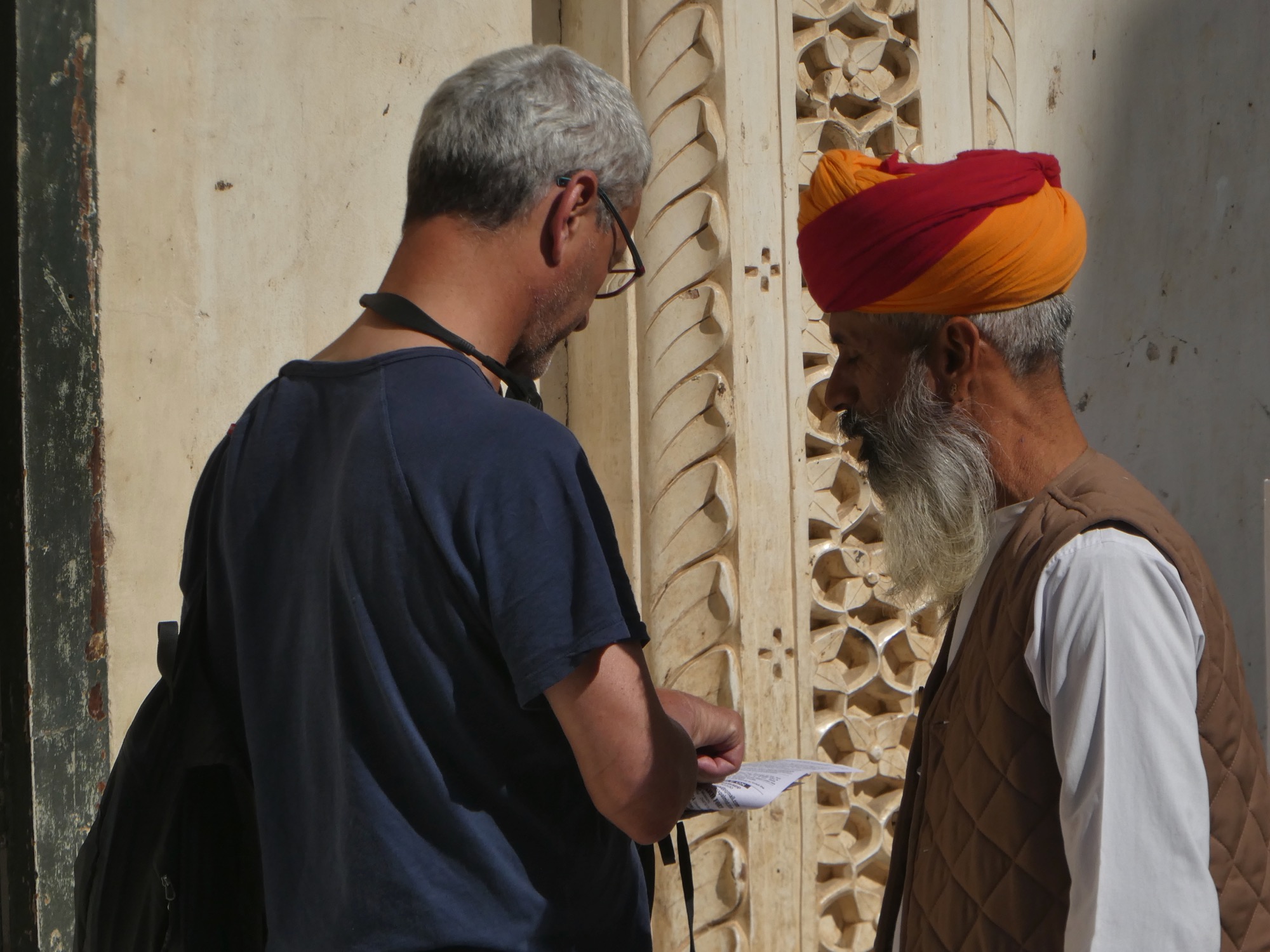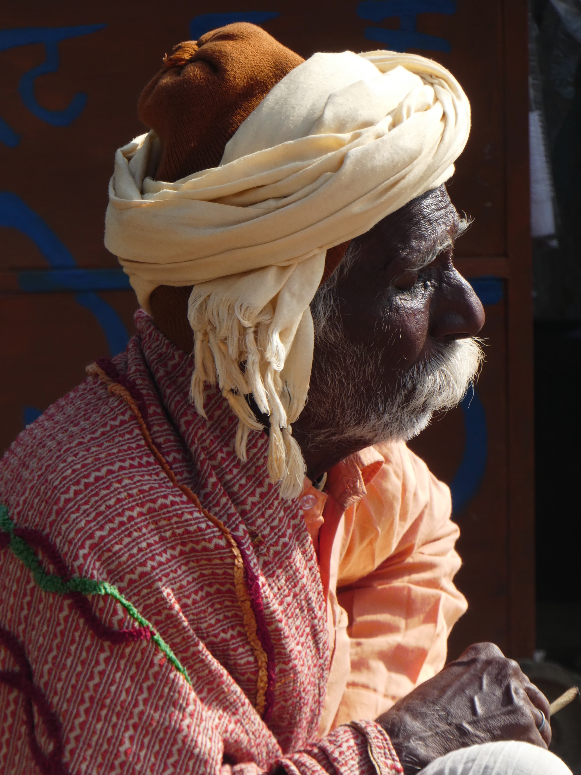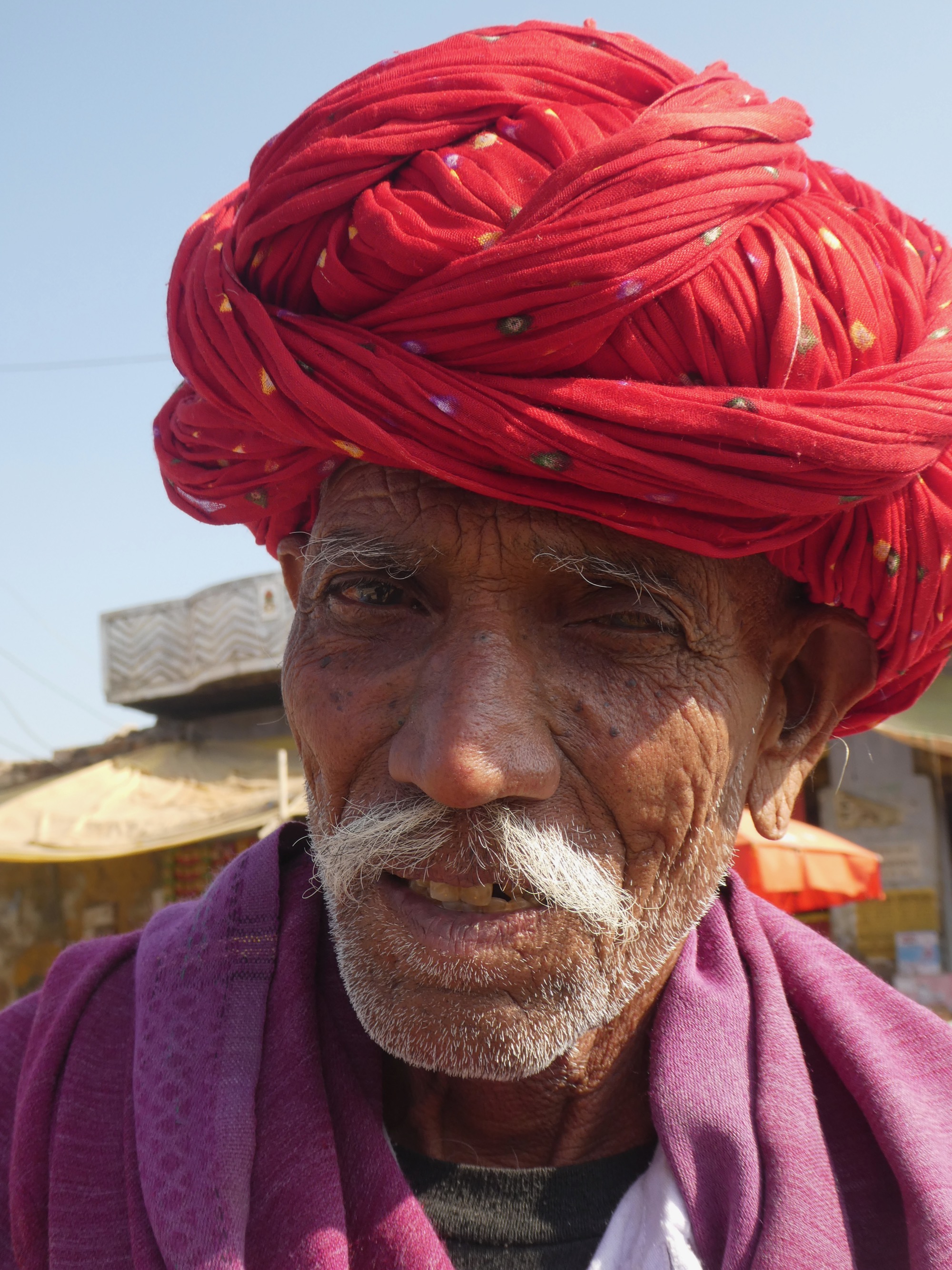Und wir schaukeln weiter auf kleinen Straßen durch die Dörfer Richtung Bundi – und beim Mittagsstopp kann ich ganz viele Safa-Fotos machen. Die älteren Herren freuen sich über mein Interesse und schauen stolz in die Kamera – so macht Fotografieren richtig Spaß!