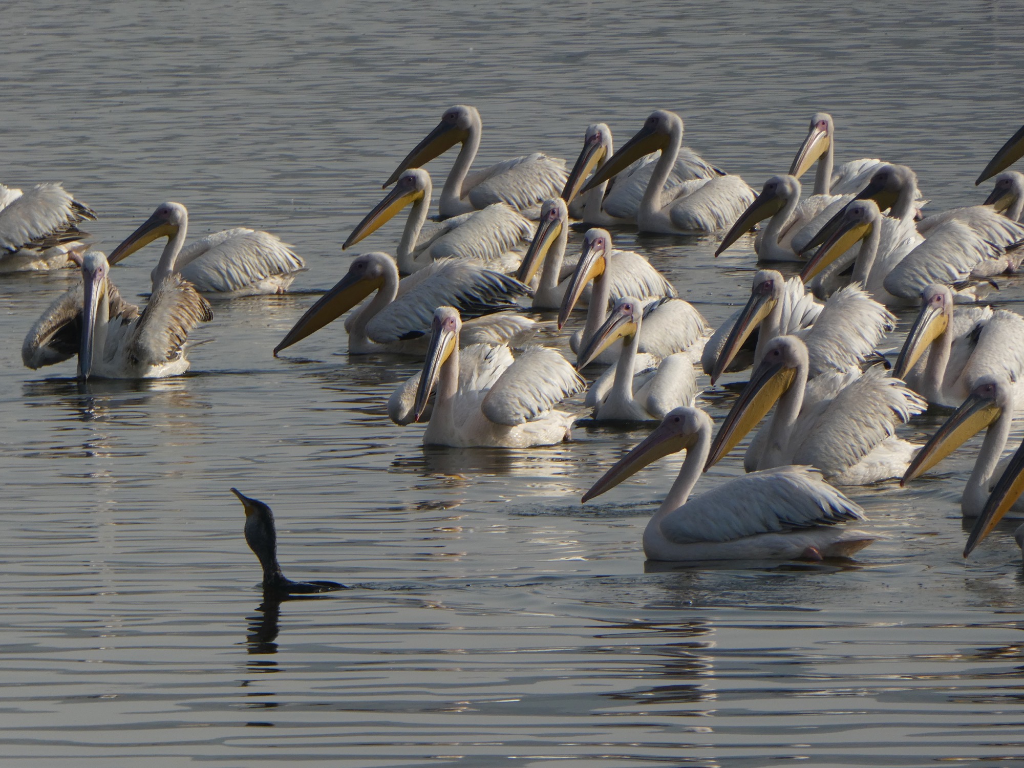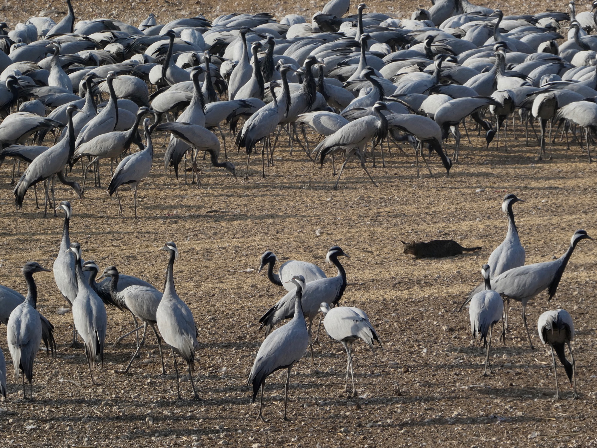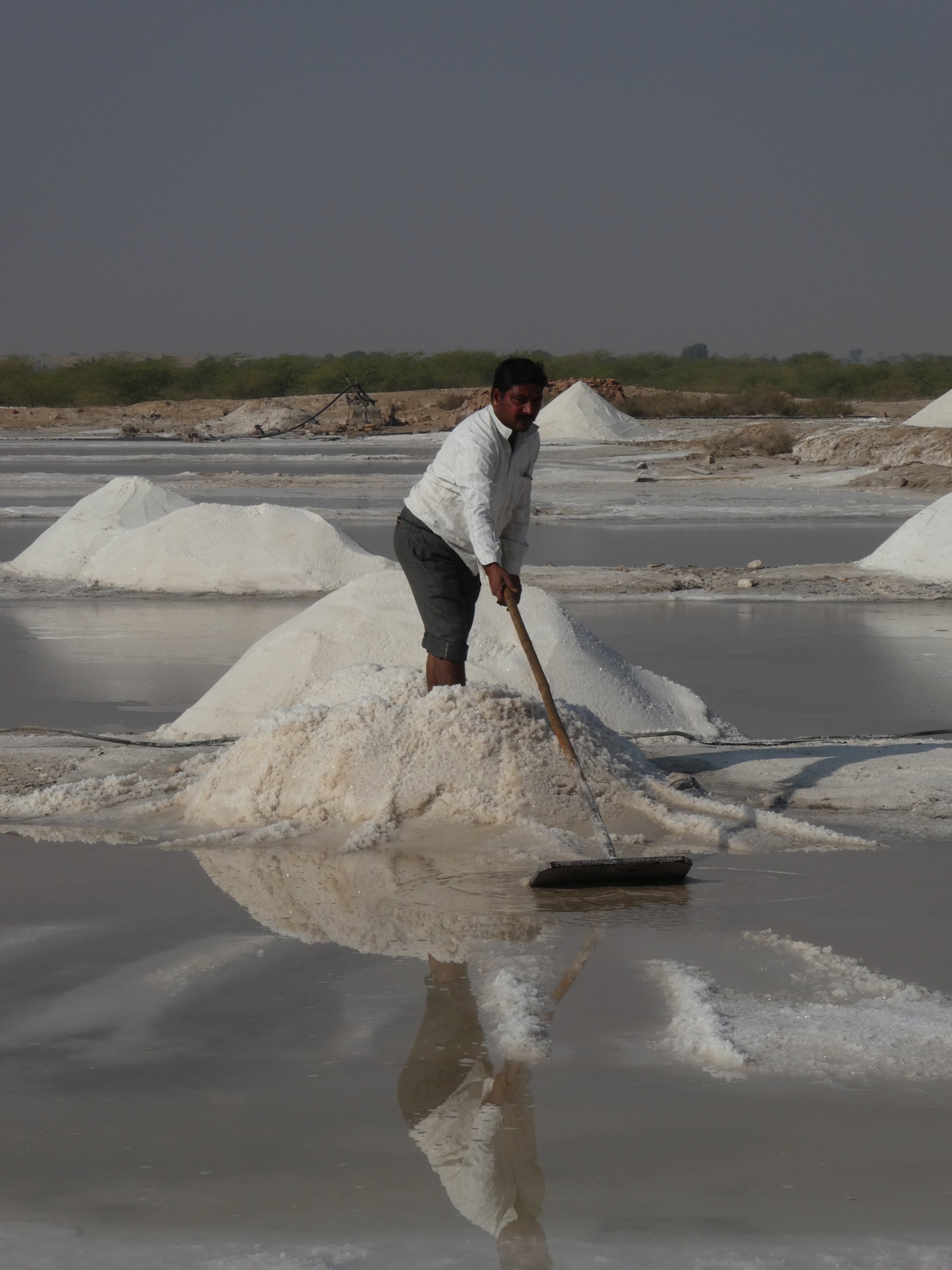 Ein Mann hat sich dem Kranichschutz verschrieben und füttert jeden Tag zwei Gruppen von Kranichen, die morgens pünktlich aus verschiedenen Himmelrichtungen auf seinem Feld aufschlagen. Das weiß auch schon die örtliche Katze, die offensichtlich ihren Spaß hat in dem Vogelschwarm mal ein bisschen für Stimmung zu sorgen … Anschließend schauen wir uns die Salzgewinnung an – in großen Becken verdunstet das Wasser in 2-3 Tagen und die Arbeiter schieben das noch feuchte Salz zu großen Haufen zusammen, die dann abtransportiert und in alle Welt verschifft wird. Eine heftige Arbeit und die Lebenserwartung (50 Jahre) der Leute dort ist dementsprechend nicht sehr hoch.