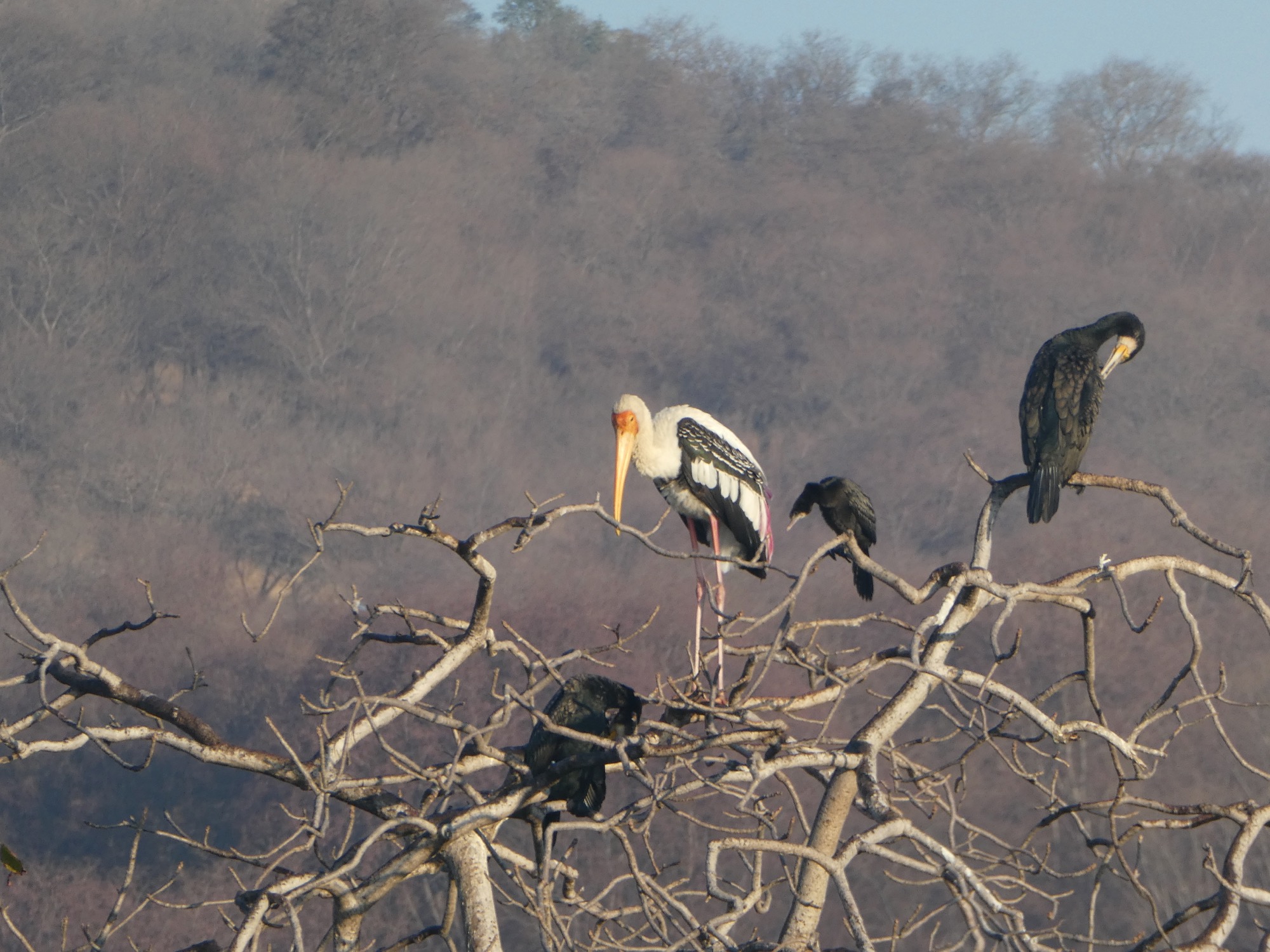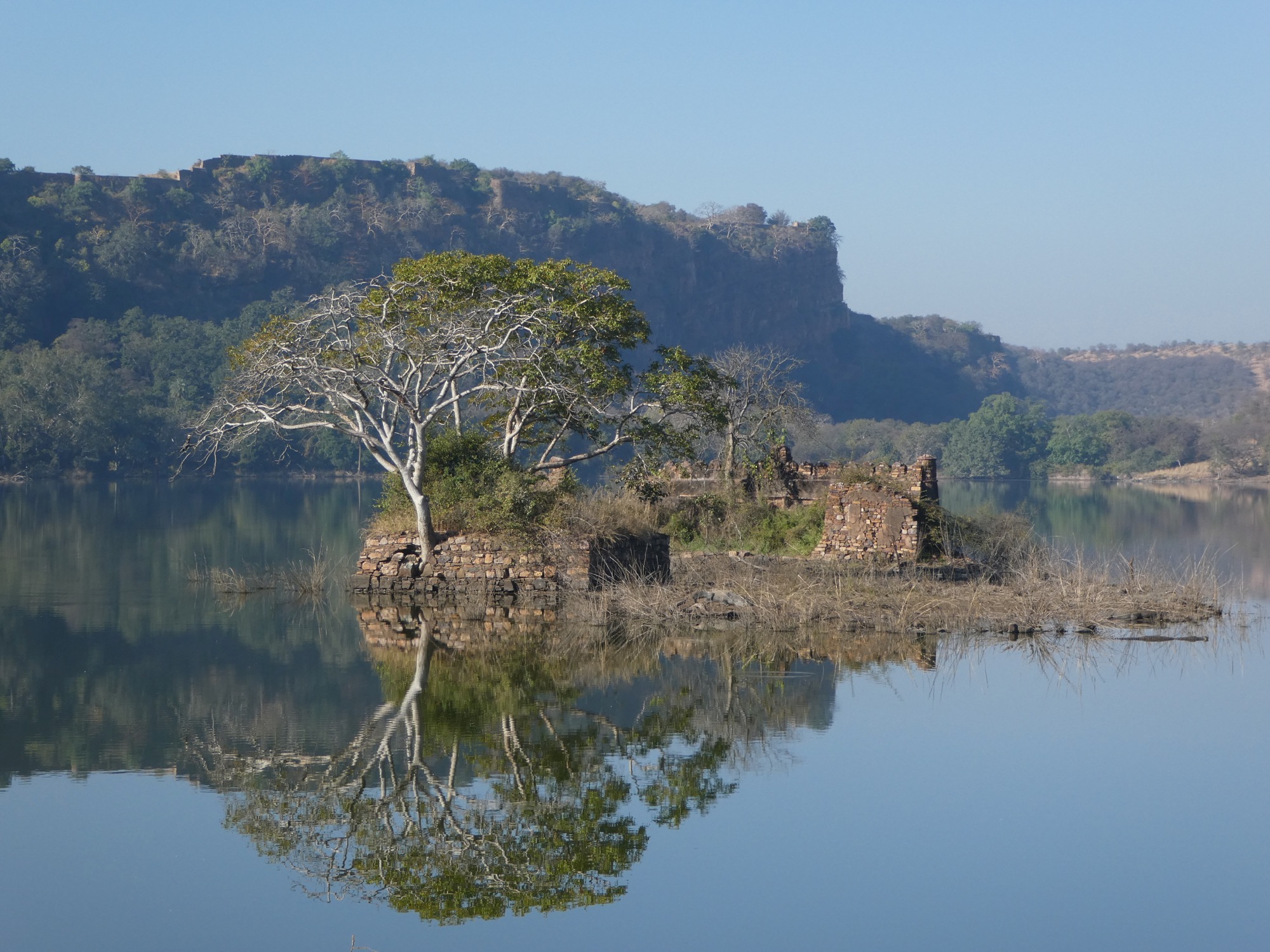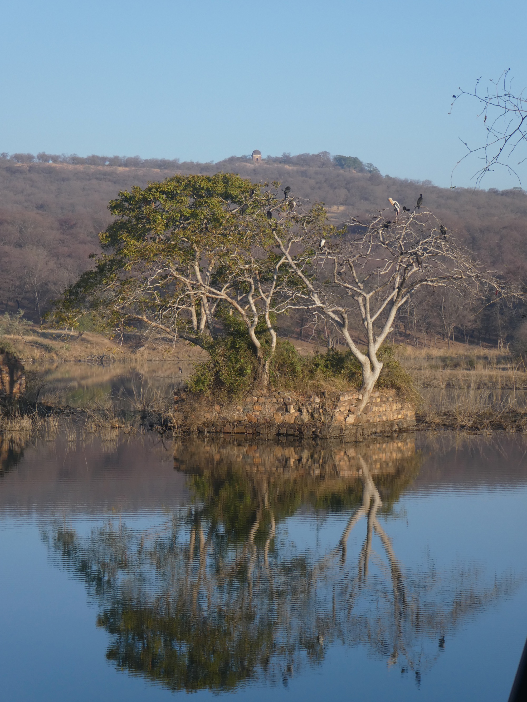 Von Bundi fahren wir zum letzten Stop unserer Rajasthantour – zum Tiger Reserve von Ranthambore – wir sind mal wieder auf TIGERJAGD ! Und vor uns haben dort schon erfolgreich Generationen der  Maharajas von Jaipur gejagt. Zweimal sind wir durch verschiedene Sektoren des Parks geruckelt – frühmorgens um 7 Uhr und dann noch einmal in der Abenddämmerung. Es gibt unglaublich viele Rehe … und Wasservögel, Wildschweine, Pfauen und Krokodile … und (angeblich) 65 Tiger! … die sich supergut verstecken =/