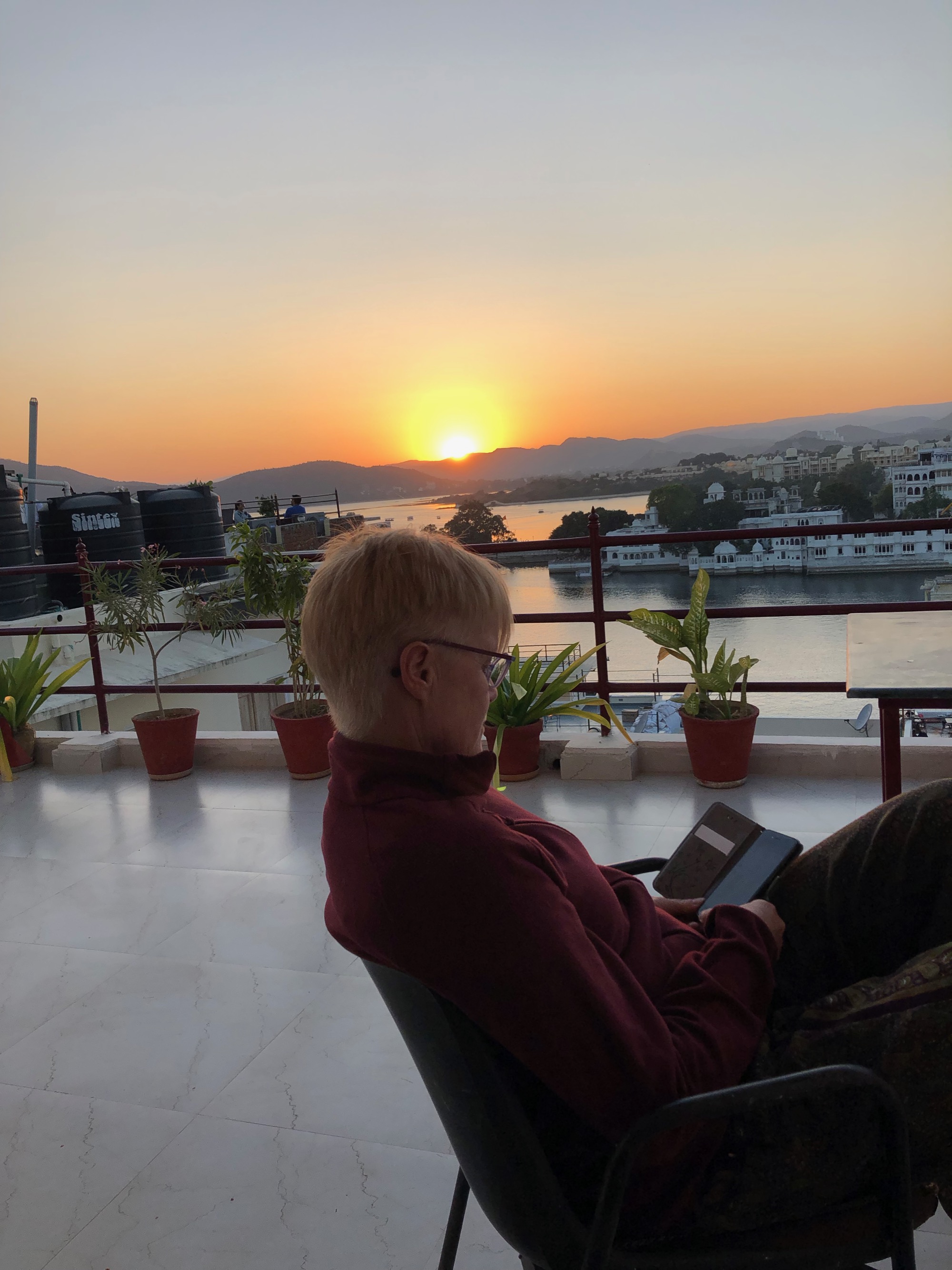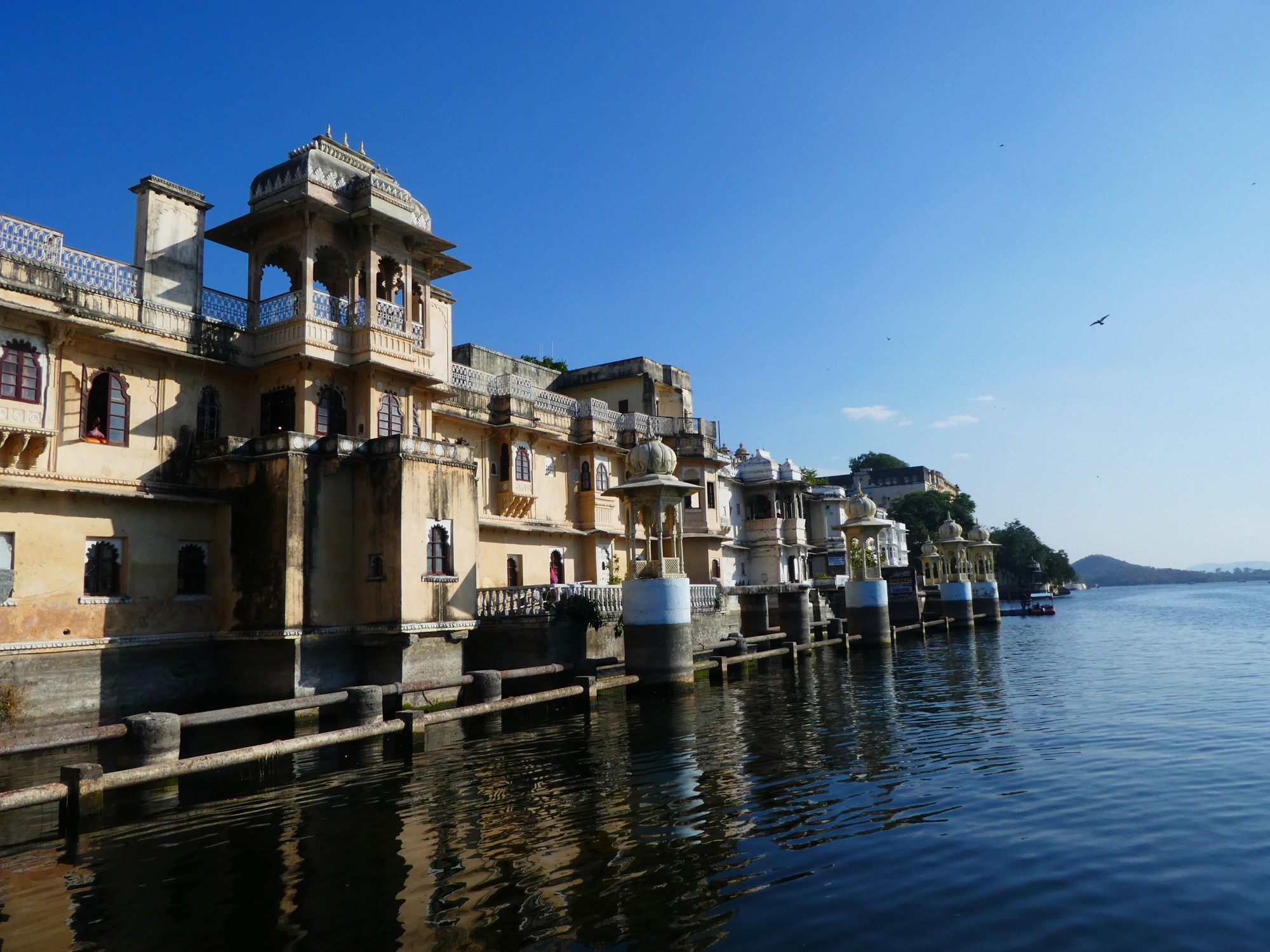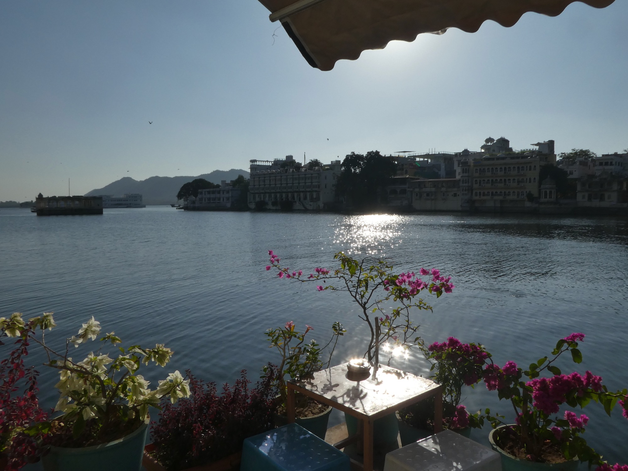 Dafür ist die Fahrstrecke durch die Aravalliberge am nächsten Tag um so schöner – motorradfreundliche entspannte Kurven, plötzlich grüne Landschaft, Hochtäler … einfach nur nett! Und Udaipur nimmt uns mit seinem Charme auch gleich gefangen … die Altstadt liegt direkt am See – es kommt ein bisschen Lugano-Feeling auf … oder Luzern? Nette kleine Cafés direkt am Wasser, von unserer Terrasse genießen wir den Sonnenuntergang … und am nächsten Tag natürlich eine Bootsfahrt. Zum Frühstücken haben wir schnell unser Lieblingscafé entdeckt und es kommt ein bisschen Ruhe in unseren Reisealltag ; ) Inzwischen sind wir ein etwas „kulturmüde“ und motivieren uns schließlich doch am Spätnachmittag zu einem weiteren Palastbesuch … ist schließlich der Größte in Indien ; ) Wer will denn das verpassen? Belohnung ist eine sehenswerte Fotoausstellung mit tollen Schwarzweißfotografien aus Maharadja-Zeiten zu Beginn der Fotografie bis in die 60er Jahre – es gibt doch immer noch Neues zu entdecken =)