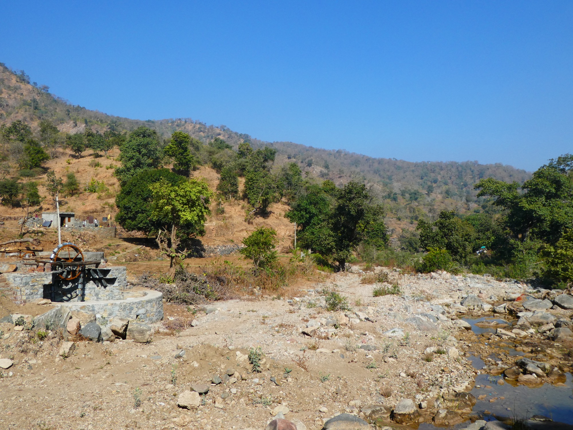 Tja, die kleine Straße sah auf maps.me echt reizvoll aus – und im ersten Dorf frag ich noch zwei freundliche Inder „road ok?“ – zurück kommt ein freundliches Kopfwackeln (… dass das NEIN heißt hatte ich eigentlich schon irgendwo gelesen, aber zu diesem Zeitpunkt definitiv vergessen …) … freudig fahren wir also weiter – um 10 km weiter festzustellen, dass die Straße über die nächsten 50 km (!!!) eine einzige Baustelle ist. Heißt: Einspurig entweder Asphalt mit Riesenlöchern, Bumps ohne Ende, immer wieder Sandpassagen … und gerade sagt Chris, dass grobkörniger Schotter noch schlimmer sei als uns dieser hinter dem nächsten Erdwall auch noch beschert wird … liebe Leute: Da wird Motorradfahren zum Krimi! (…und natürlich sind wir auch hier nicht alleine unterwegs, sondern teilen uns die Piste mit verrückten Busfahrern, unnachgiebigen Geländewagenfahrern, Kamikaze-Motorradfahrern, Kuh-und Ziegenherden ….und, und, und – somit 50 km volle Konzentration, ein paar Gleichgewichtsübungen und Rutschpartien, Schweißausbrüche und Stoßgebete … das Fotografieren ist mir in der Situation dann auch vergangen …) An diesem Abend haben wir uns ein Feierabendbierchen redlich verdient …