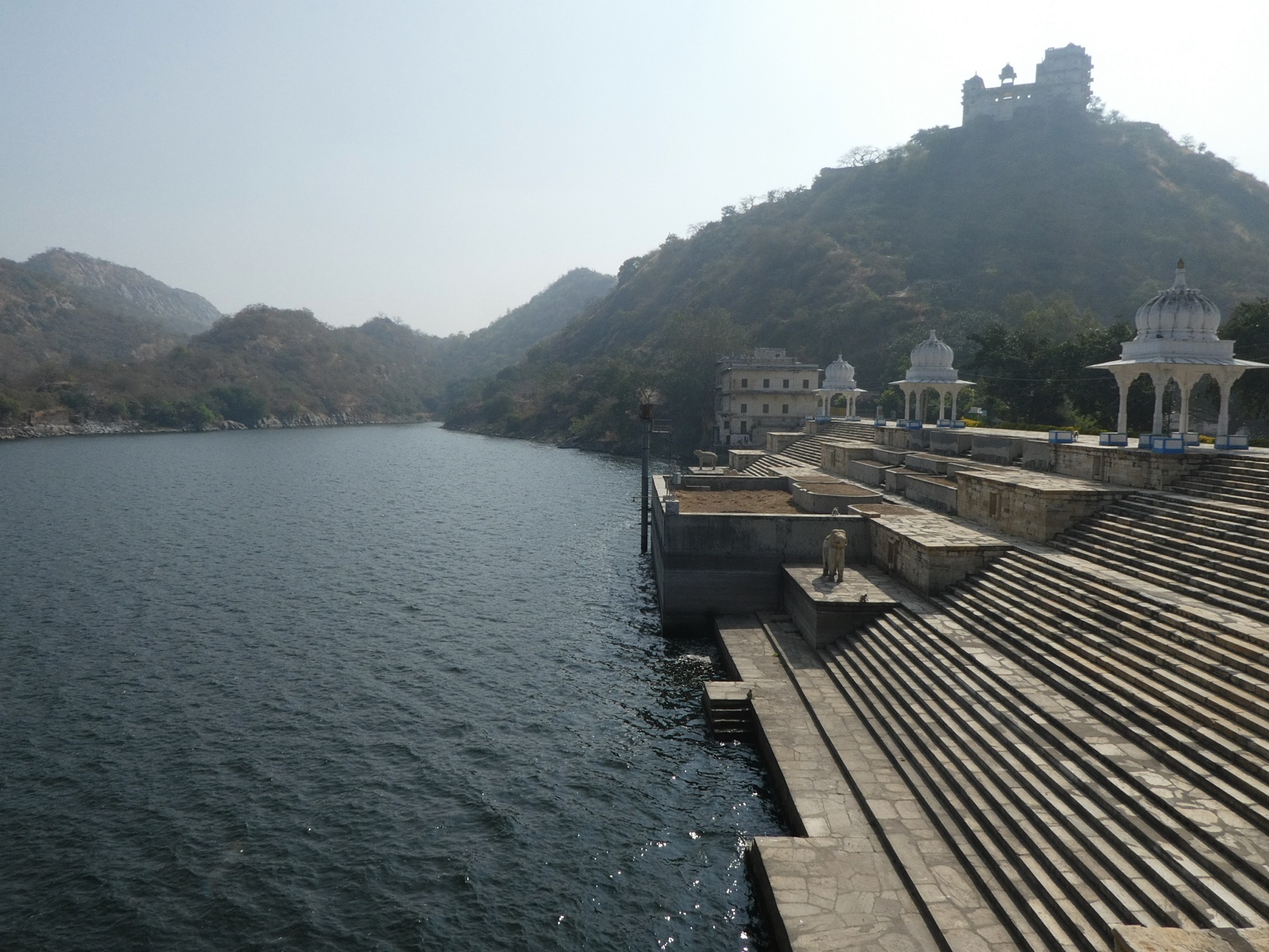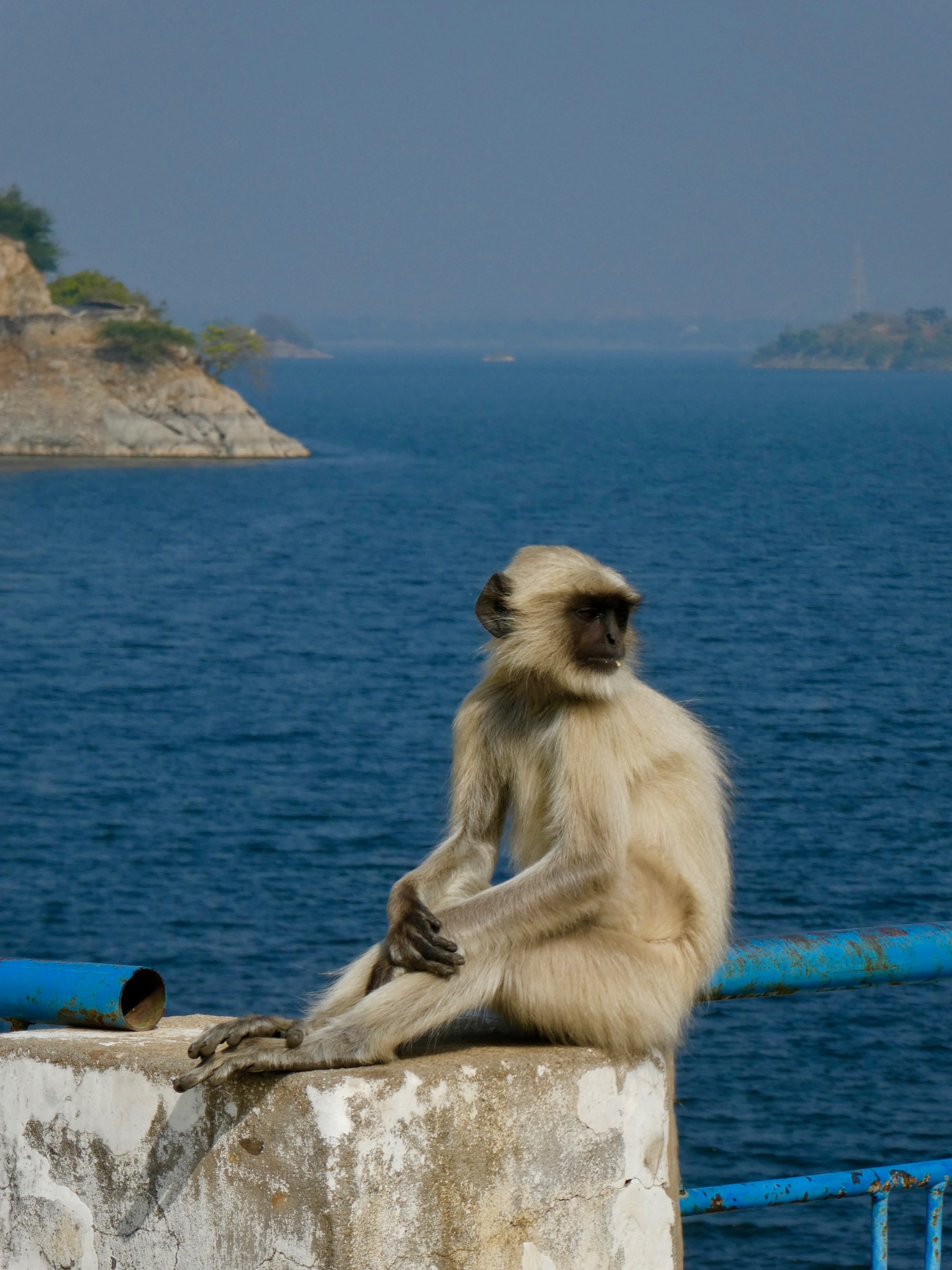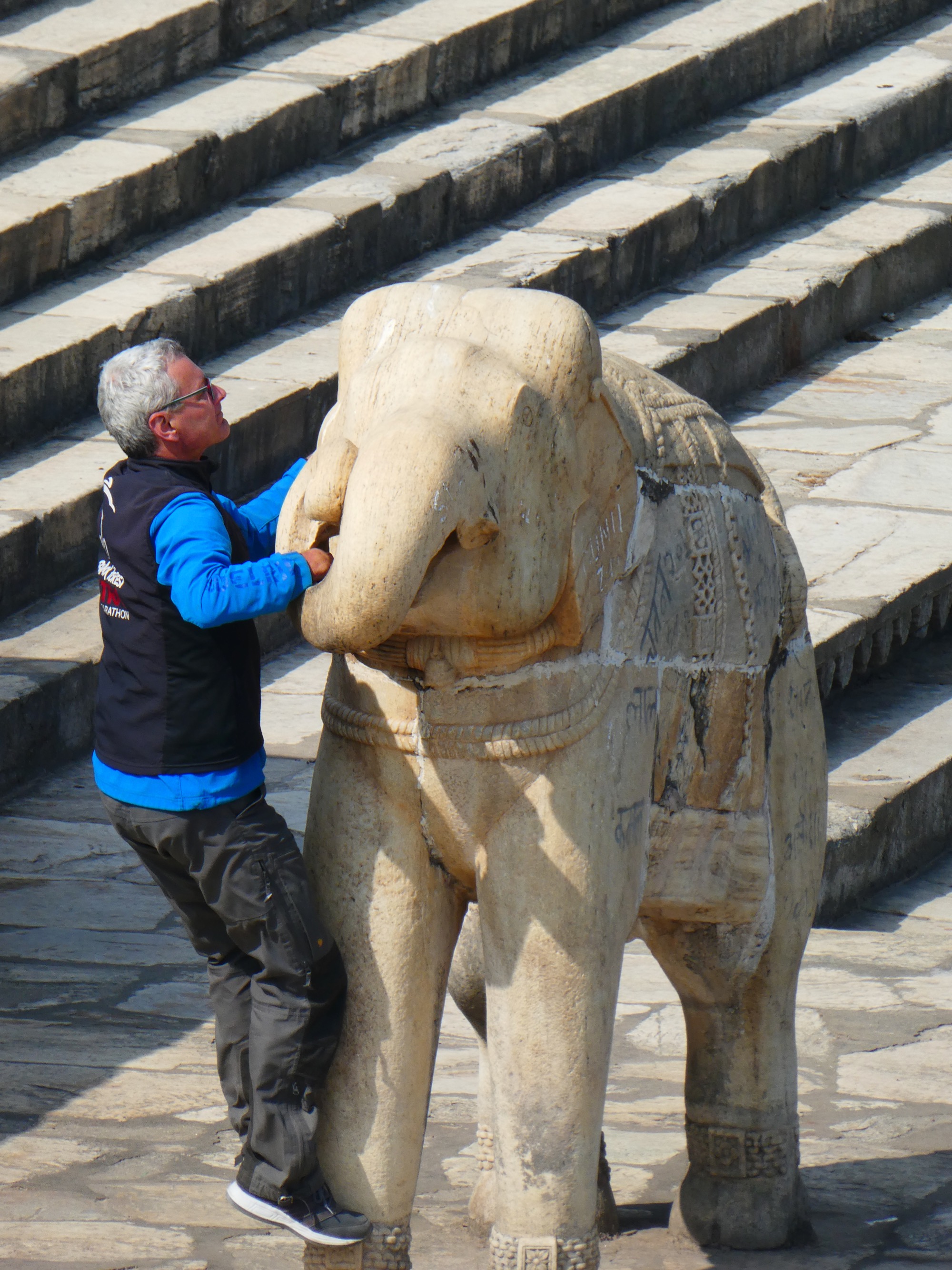 Am nächsten Tag fahren wir wieder über Land … vorbei an traditionellen Ziegelbrennereien, durch kleine Dörfer, wo uns die Menschen wieder neugierig empfangen und es das Eine oder Andere Kulinarische zu probieren gibt – bis zum See von Jaisamand. Hier betrachten uns neugierige Affen und Chris versucht bouldermäßig einen Elefanten zu erklimmen =)