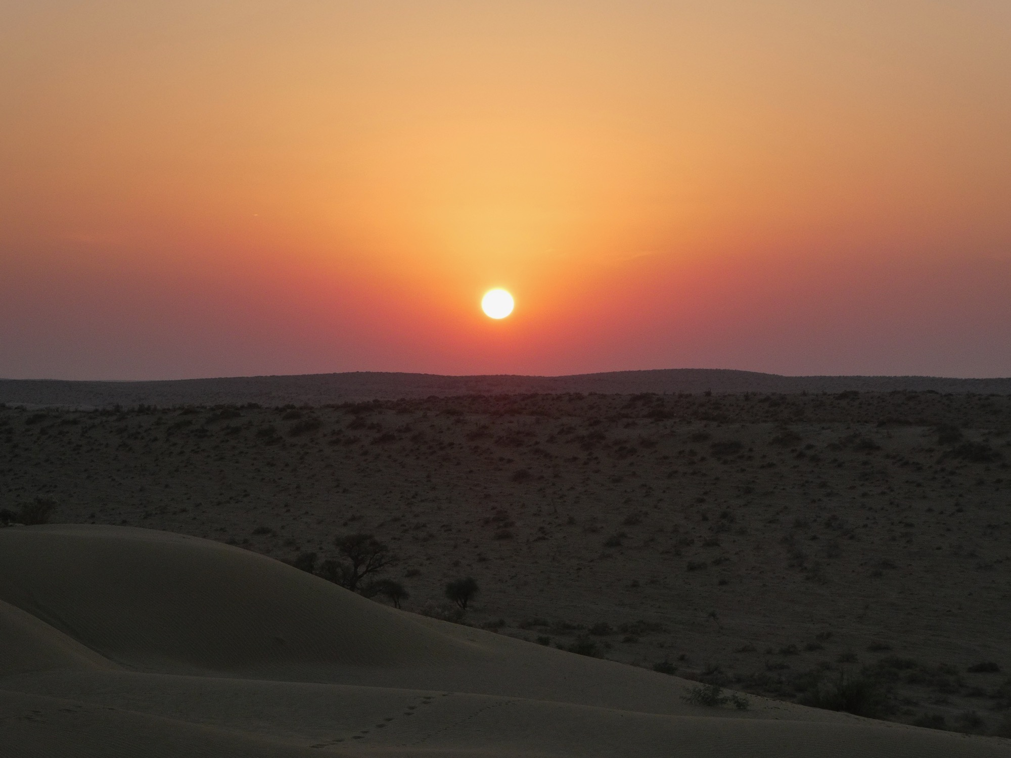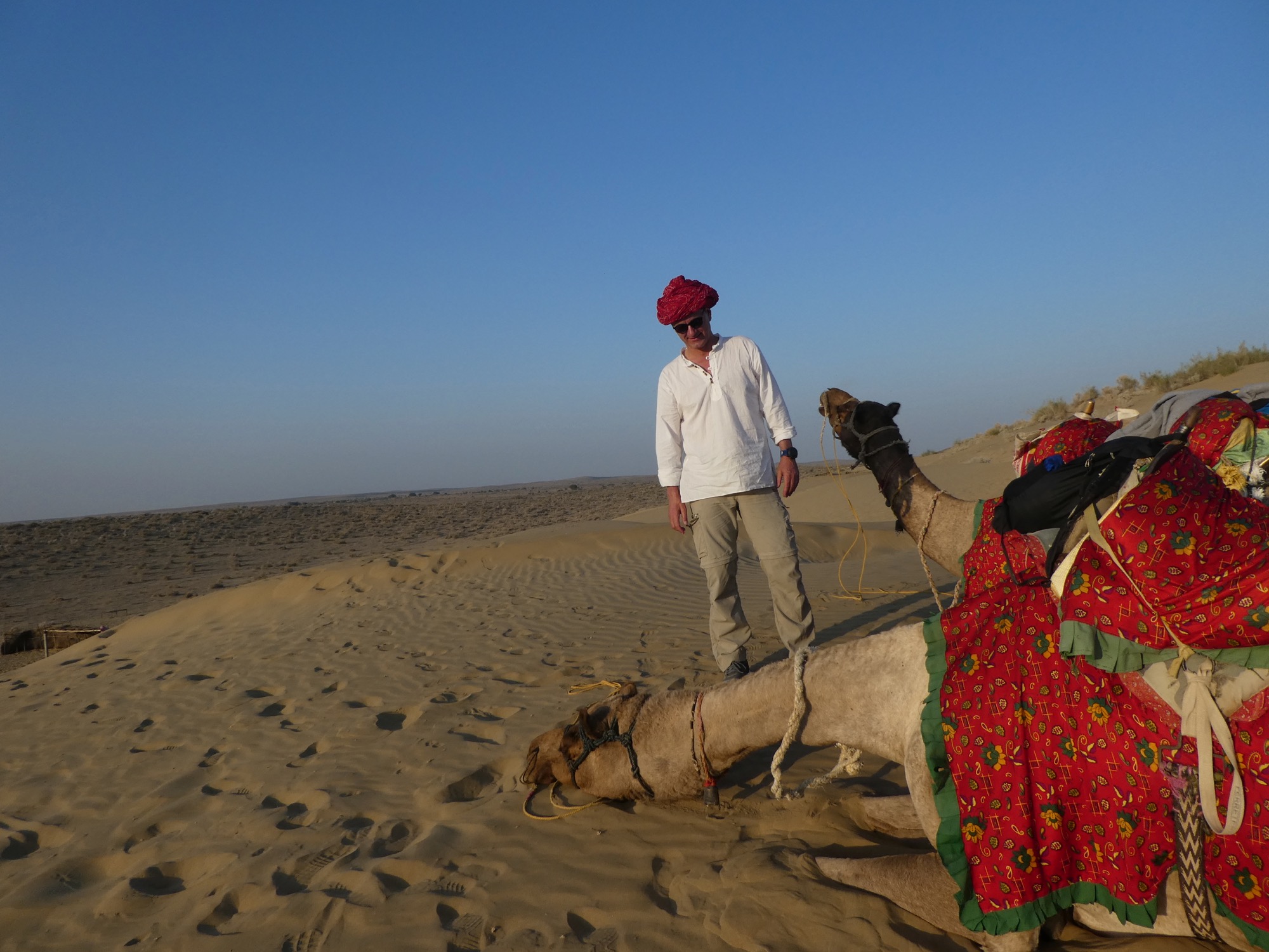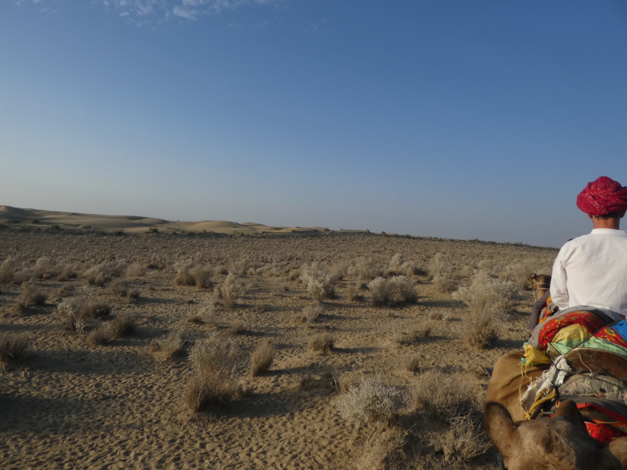 Uns zieht es weiter in die weite Wüstenlandschaft nach Jaisalmer und mit den Dromedaren so richtig in die Wüste. Ich bekomme „Heimatgefühle“ – und hänge mit den Gedanken ein bisschen in Marokko. Die Wüste hier ist anders als die Sahara – viel mehr Bewuchs und nur einzelne kleine reine Sanddünengebiete. Aber die Ruhe tut einfach gut – und ich liebe es, die Zehen in den Sand zu buddeln, in den Sonnenuntergang zu träumen, abends am Lagerfeuer zu sitzen und nachts dann Tausende von Sternen über mir zu haben! Und zum Aufwachen beim Sonnenaufgang einen heißen Chai ans „Bett“ – DAS ist Lebensqualität!!!