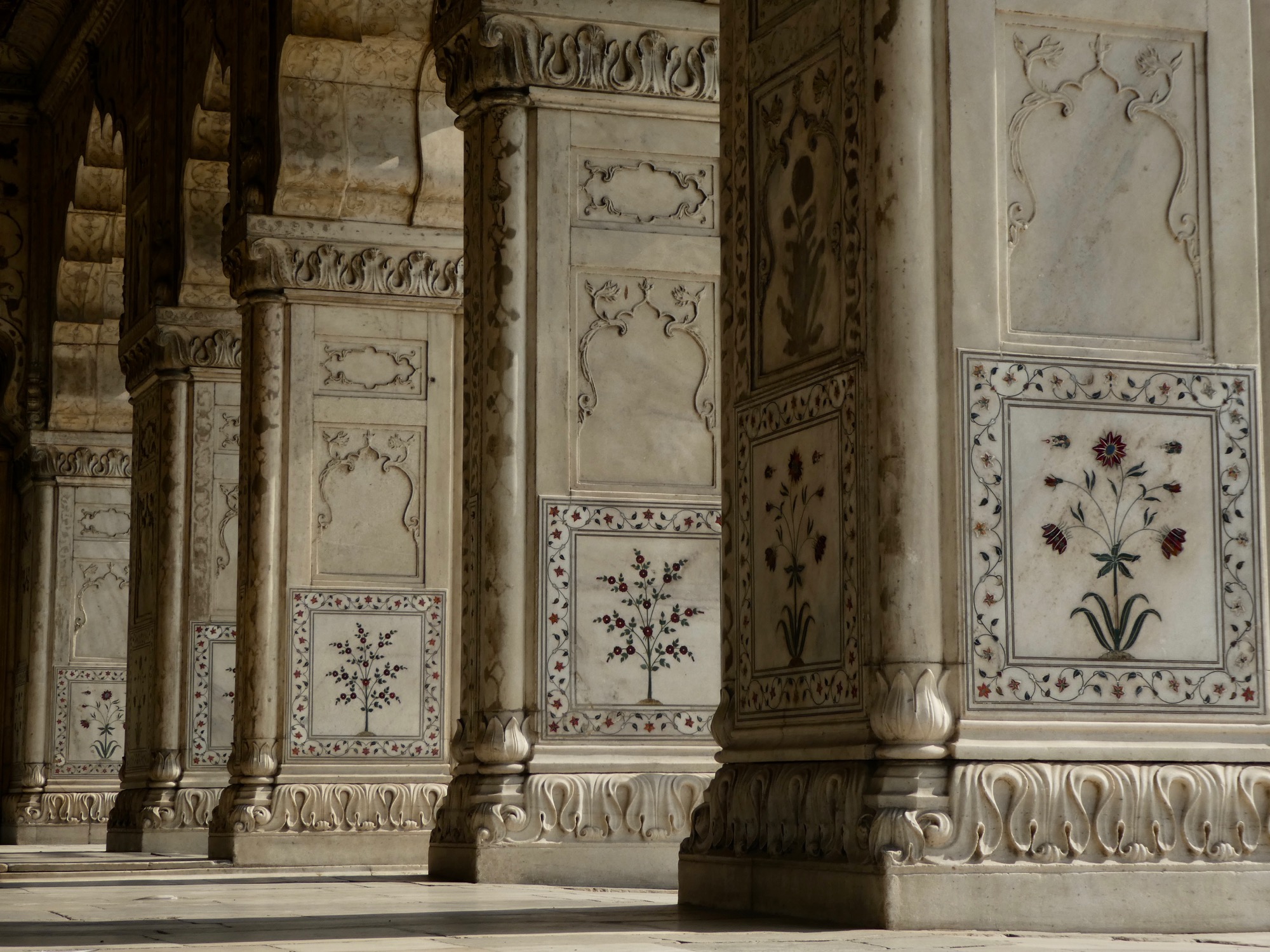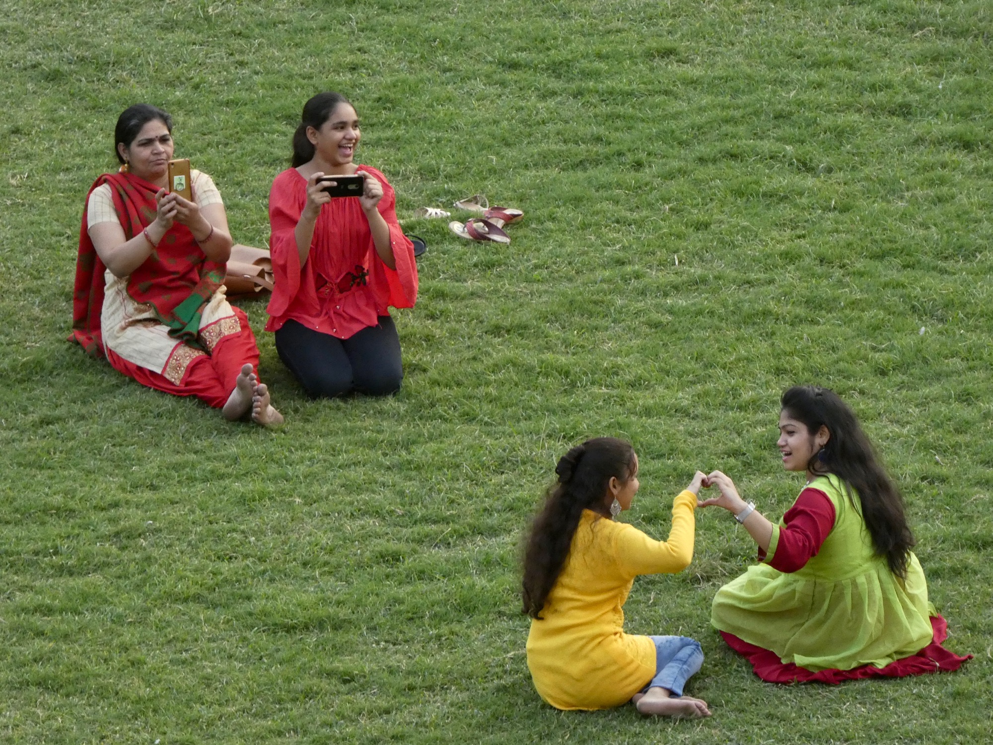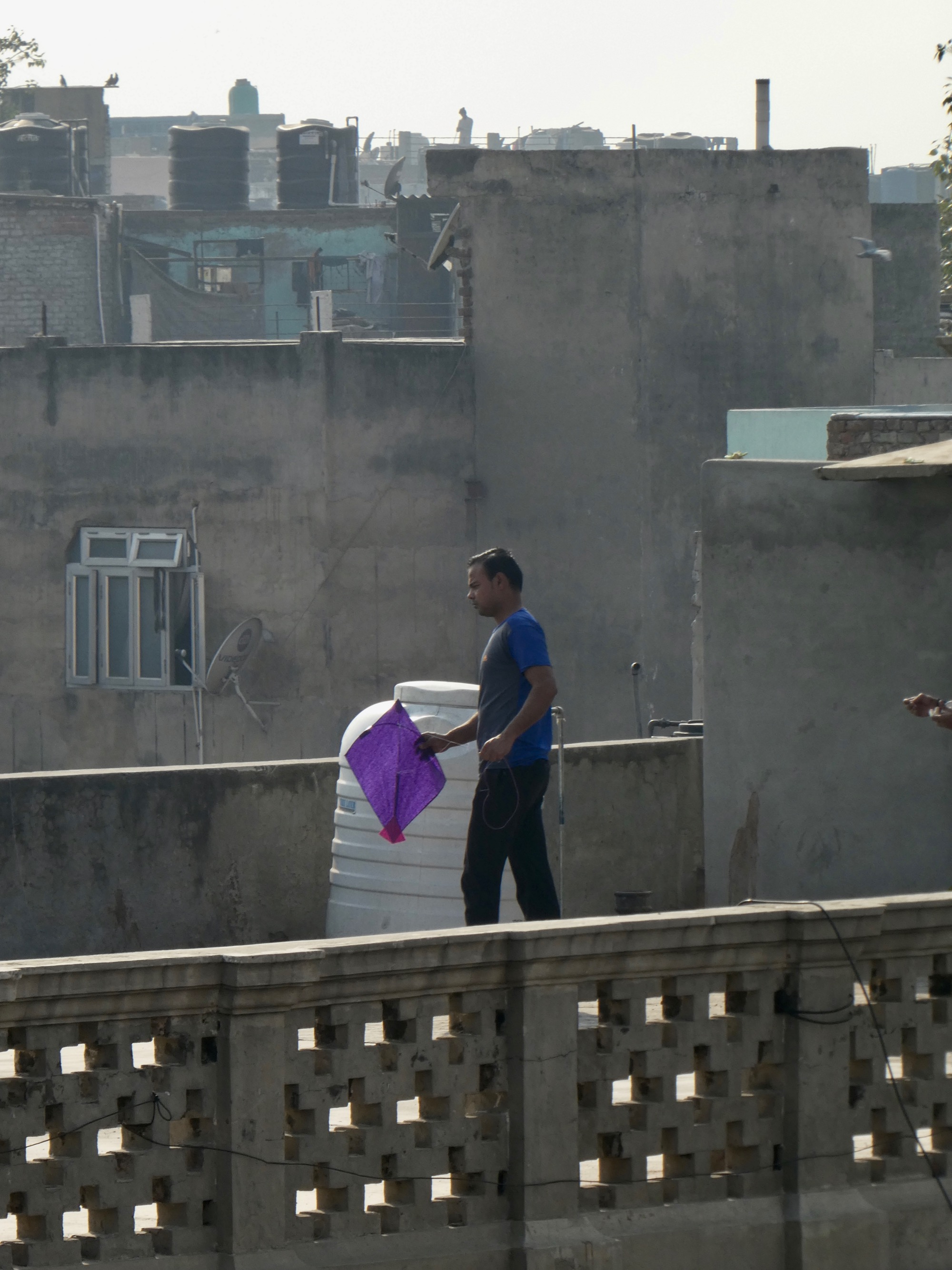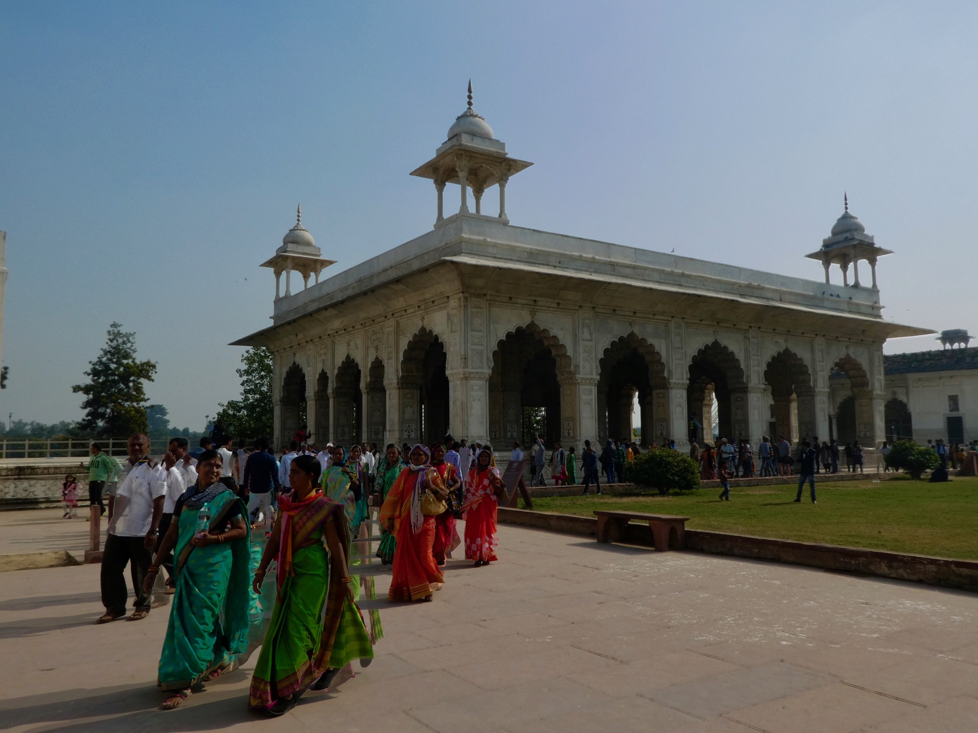 Gemeinsam Delhi zu entdecken macht Spaß! Im Roten Fort bestaunen wir hauptsächlich die indischen Touristen … und die riesige Mauer… Vieles ist vor unseren neugierigen Blicken verborgen – und manches nur auf Zehenspitzen durch Marmor“fenster“ zu erspickeln. Mehr Spaß haben wir dann bei einer Fahrrad-Rikschatour durch Old Delhi – wir schnüffeln uns durch den Gewürzmarkt und unser Fahrer schleust uns durch die Hinterhöfe auf ein Hausdach … das eröffnet uns den Blick in den Innenhof einer Moschee und wir können die Nachbarn bei Drachensteigenlassen beobachten. Das ist hier immer noch üblich und es gibt sogar ein Festival, wo sich die Menschen im Wettbewerb die Drachen abjagen, indem durch gekonnte Flugmanöver gegenseitig die Drachenschnüre gekappt werden.