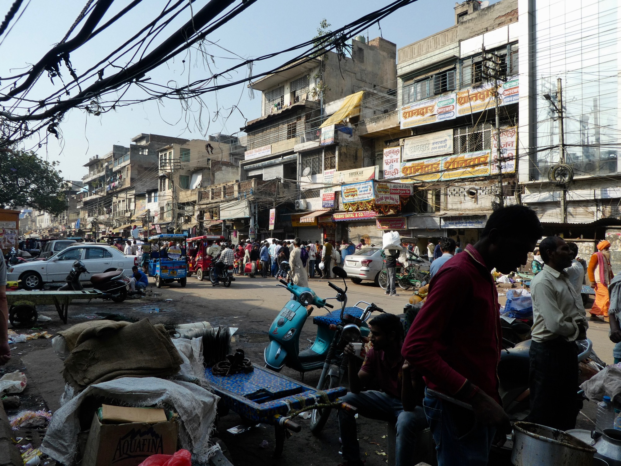 Nach unserem Aufenthalt in Kolkata waren uns doch einige Fragezeichen zum Leben in diesen Großstädten geblieben, so dass wir uns hier in Delhi zu einer geführten Tour durch einen der vielen Slums entschließen. Nein, es war nicht wie ein bisschen im Hinterkopf befürchtet ein „Zoobesuch“, sondern eine informative Führung durch Chitty, einen Mitarbeiter einer kleinen NGO. Wir fahren zusammen zu einem Slum „Sanjay Colony“ nahe der unzähligen Textilfabriken. Dieser Slum hat sich schon in den 60er Jahren entwickelt und so sehen wir heute gewachsene Strukturen. Frauen sortieren in einer langen Gasse auf dem Boden Unmengen von Stoffresten nach Farben für 200Rp/Tag. Im Slum selber viele kleine Schneidereien und kleine Läden für den Alltagsbedarf. Beim Durchlaufen erleben wir eine geschäftige Alltagsruhe und viele neugierige Menschen.  Es gibt Anlaufstellen für medizinische Problemchen und eine Schule, in der morgens die Mädchen und nachmittags die Jungs unterrichtet werden. Vor ein paar Jahren hat die Regierung sanitäre Anlagen am Rand des Slums errichtet … Toiletten, Duschen, Waschgelegenheiten. Seitdem ist die sanitäre Situation wohl deutlich besser. Die NGO selber betreibt so etwas wie ein kleines „Community College“ – Englischkurse, Computer Science, Bewerbungstrainings … die Angebote werden nach anfänglichem Misstrauen nun gerne angenommen. 80% unserer Tourgebühr fließt in dieses Projekt. Das erklärt auch die hohe Akzeptanz der Führungen durch die Gassen des Viertels. Für uns ein informativer Vormittag – aber dem vermittelten Feeling „alles halb so schlimm im Slum“ trauen wir nicht wirklich … Fotos gibts zu diesem Thema nur drei „Offizielle“ – selber Fotografieren war sinnvollerweise nicht erlaubt.