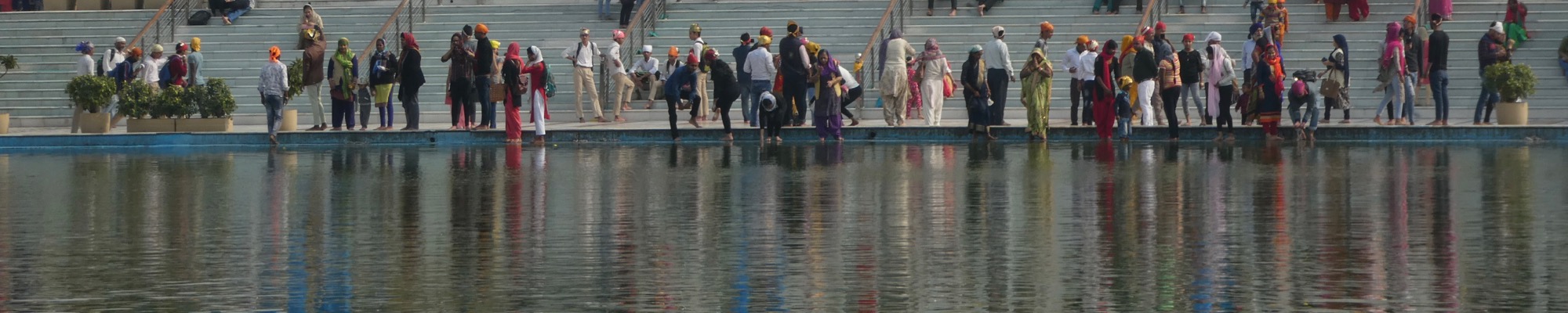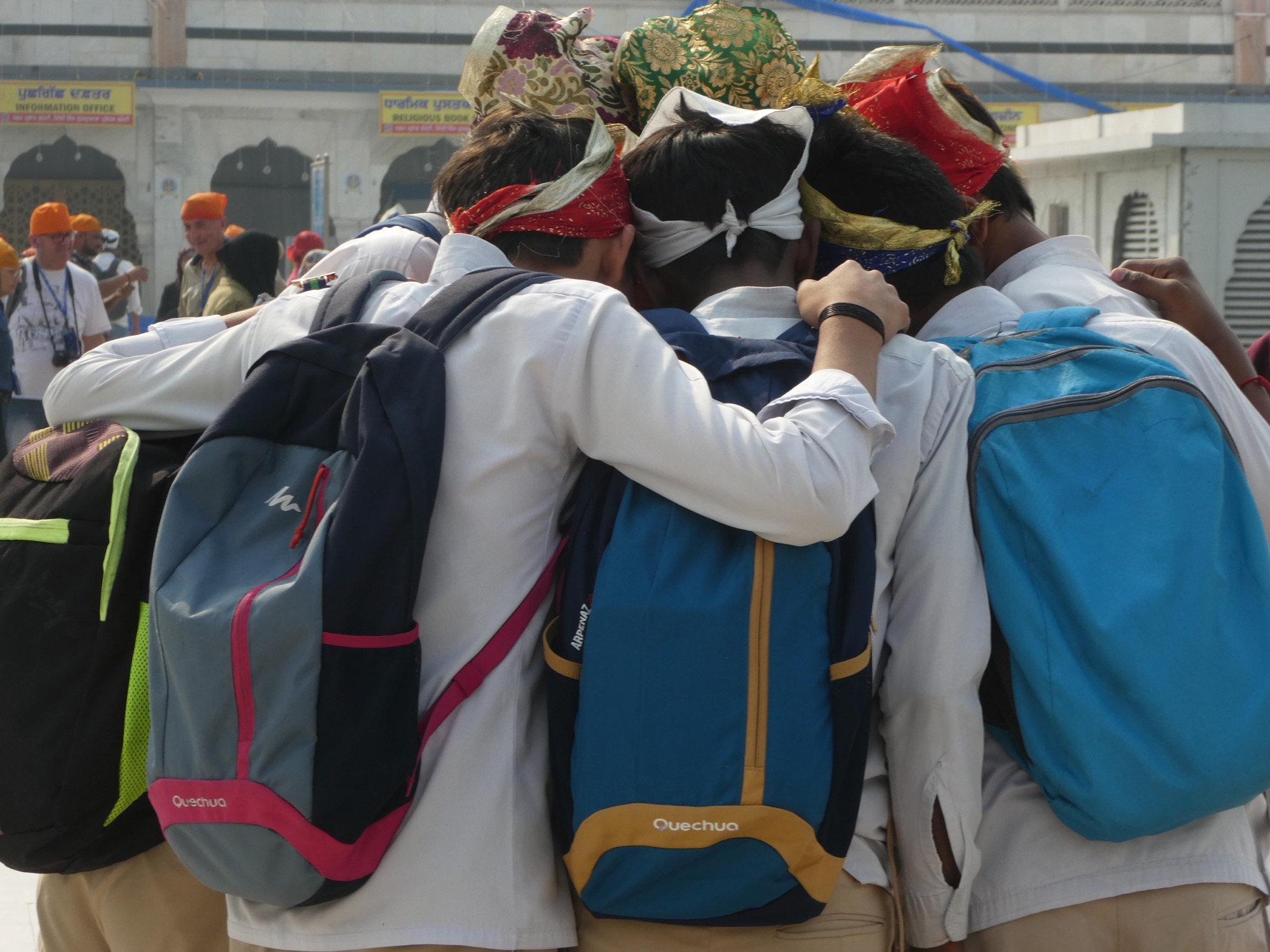 Sikhs sind Anhänger einer im 15. Jahrhundert in Nordindien entstandenen religiösen Reformbewegung. „Sikh“ bedeutet übersetzt „Schüler“. Die Religion wurde von dem Wanderprediger Guru Nanak (1469-1538) begründet. Er versuchte, mit der neuen Religion eine Verbindung zwischen Hinduismus und Islam zu schaffen. Genauso wie Christen und Muslime glauben auch Sikhs nur an einen Gott. Die Religion breitete sich vor allem auf dem Gebiet der Provinz Punjab aus, die seit 1947 zwischen Indien und Pakistan geteilt ist. In der indischen Stadt Amritsar steht das Hauptheiligtum der Sikhs, der Goldene Tempel, der 1984 bei religiös-politischen Auseinandersetzungen von der indischen Armee gestürmt wurde. Neben der Heiligen Schrift der Sikhs, der Guru Grant Sahib, haben vor allem die Karma-Lehre (Lehre vom Geburtenkreislauf) und ein tugendhaftes Leben mit der Überwindung von Egoismus Gültigkeit. Anders als im Hinduismus kennt der Sikhismus kein Kastenwesen. Sikhs tragen als Ausdruck von Gleichberechtigung gemeinsame Nachnamen. Sikh-Frauen tragen den Nachnamen Kaur (Prinzessin) und Männer Singh (Löwe). Zu den Kennzeichen eines Gläubigen gehören unter anderem das ungeschnittene Haar mit Dastar (Turban ähnlich – für Spiritualität), ein kleines Schwert (für Mut und Selbstaufopferung) und ein stählernes Armband (für die Einheit mit Gott).