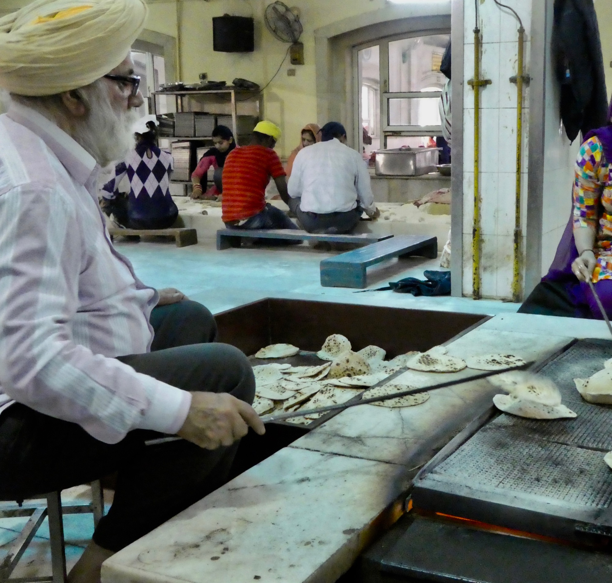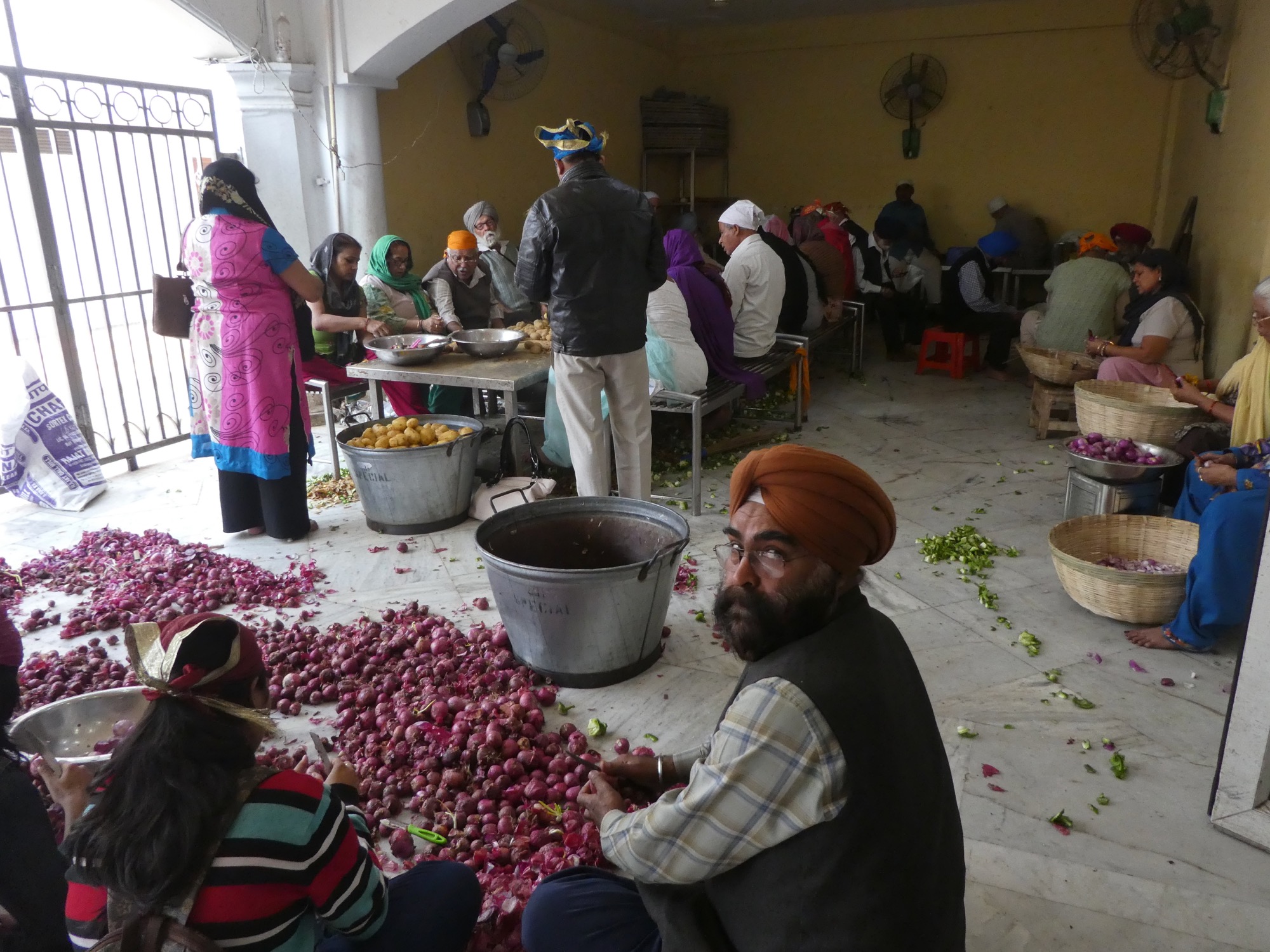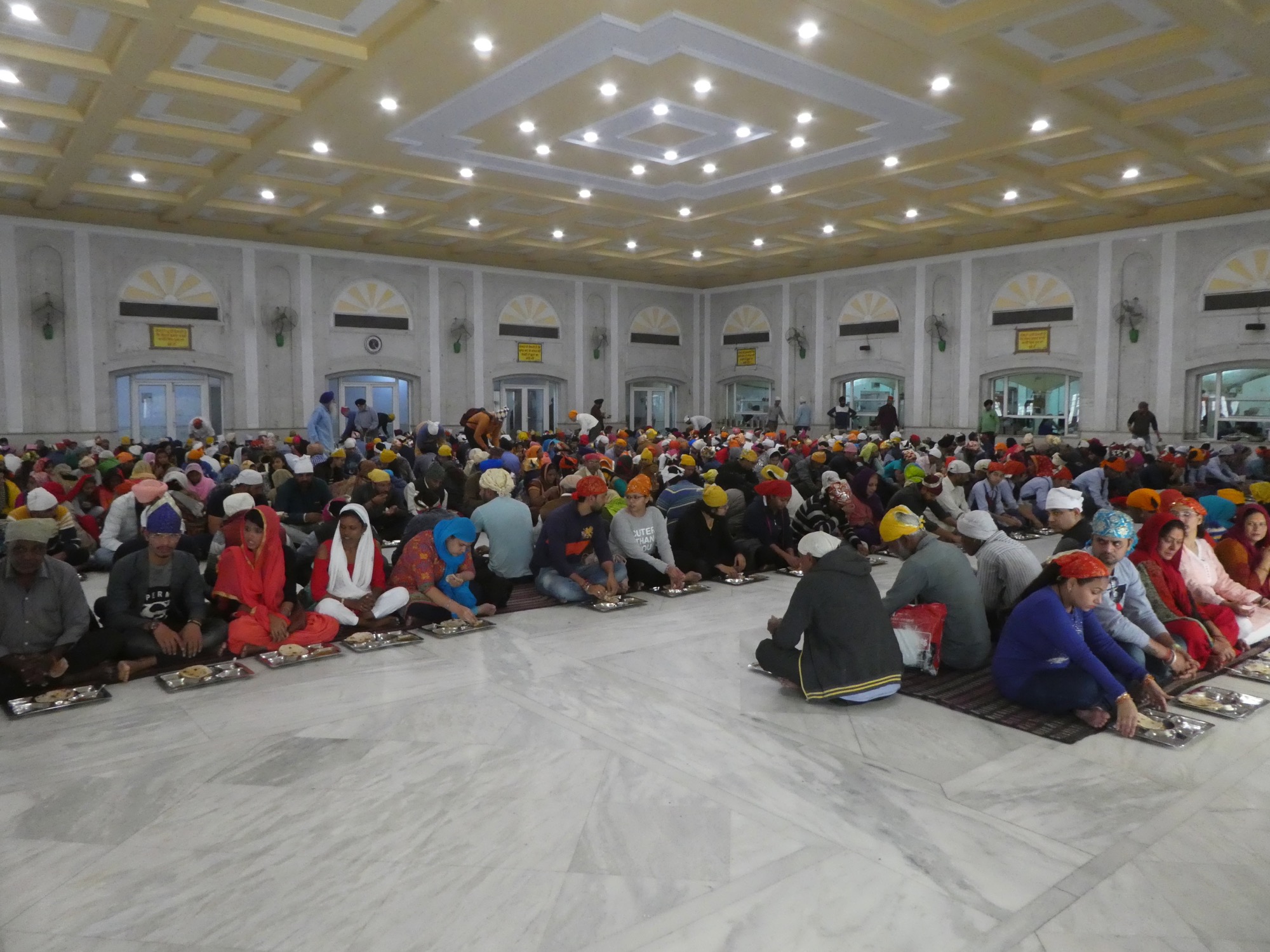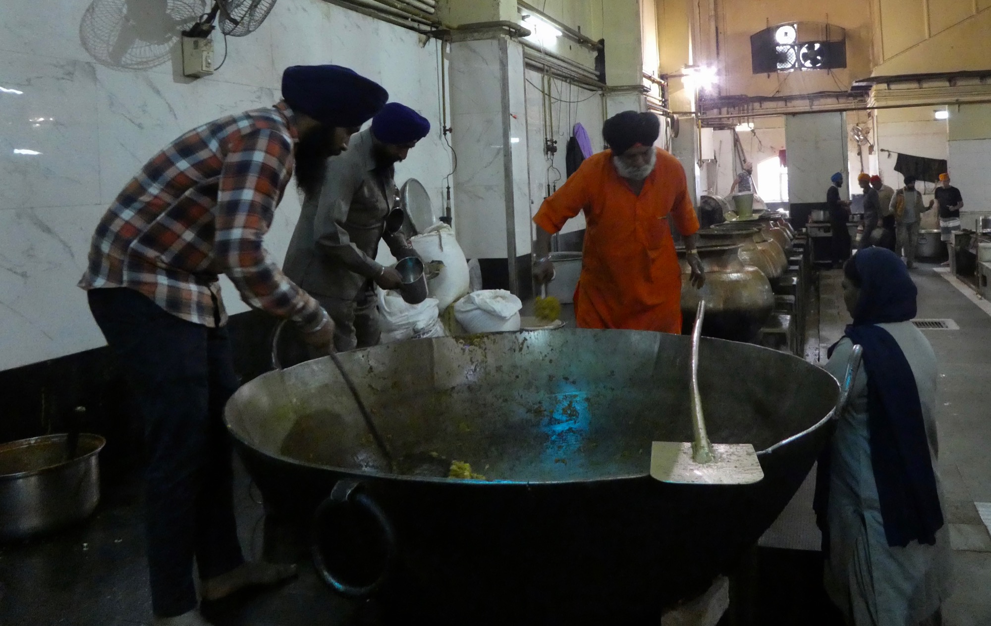 Uns hat besonders die Musik im Tempelinneren fasziniert und dann auch die tägliche Speisung von Hunderten von Gläubigen. Riesige Töpfe und unzählige ehrenamtliche Helfer, die schnibbeln, Unmengen Chapatis (100.000/Tag) ausrollen und Essen austeilen…