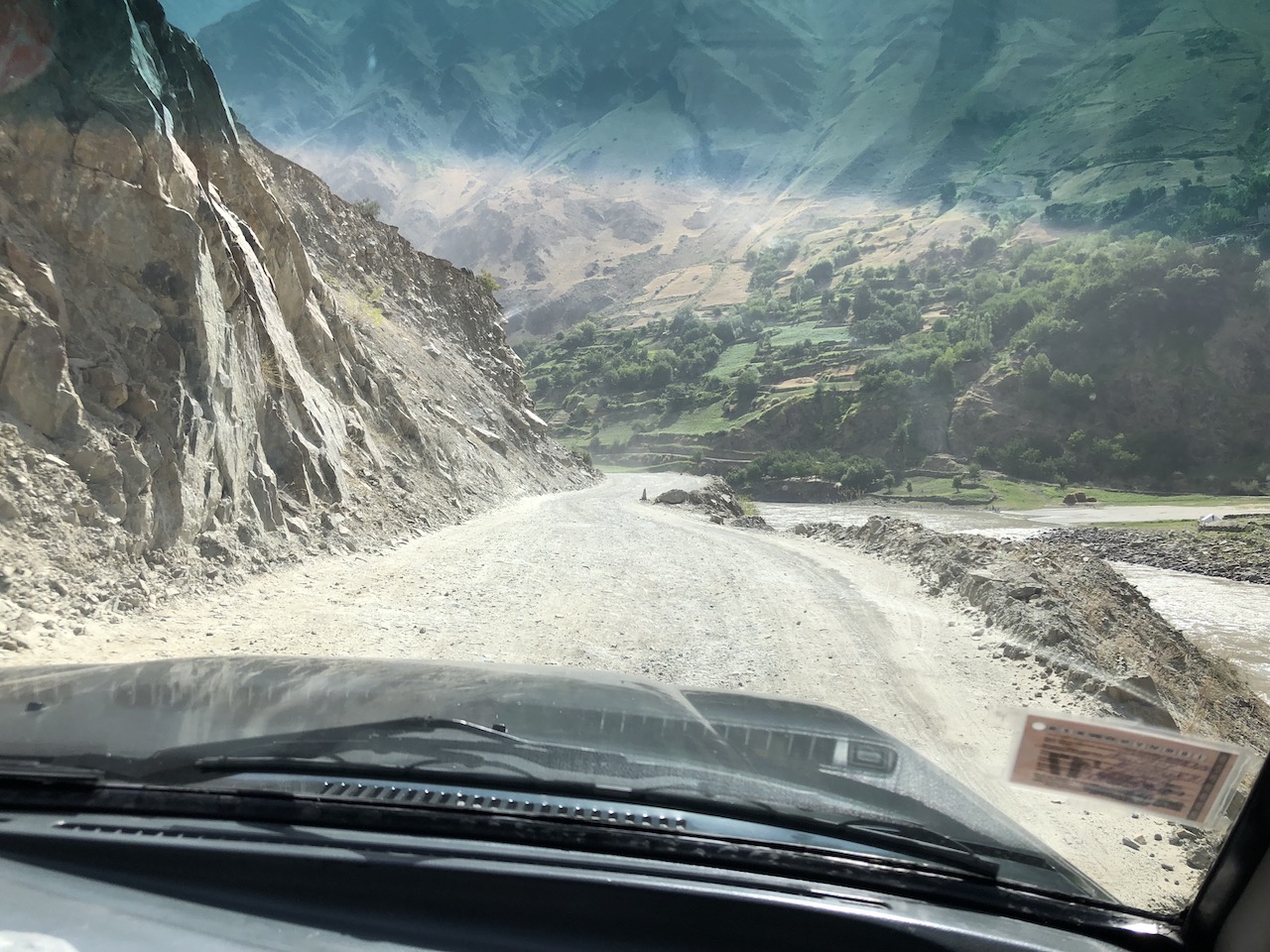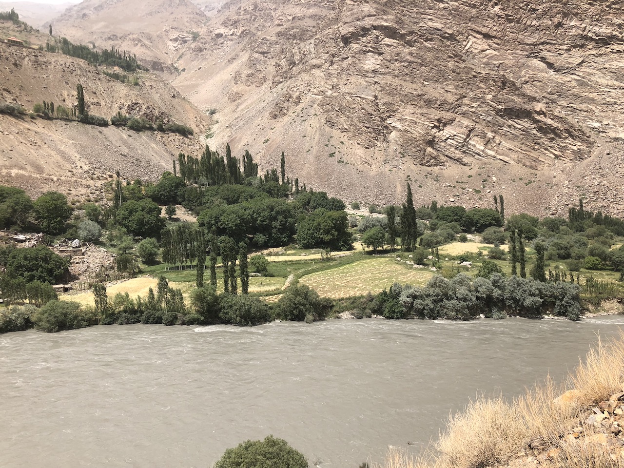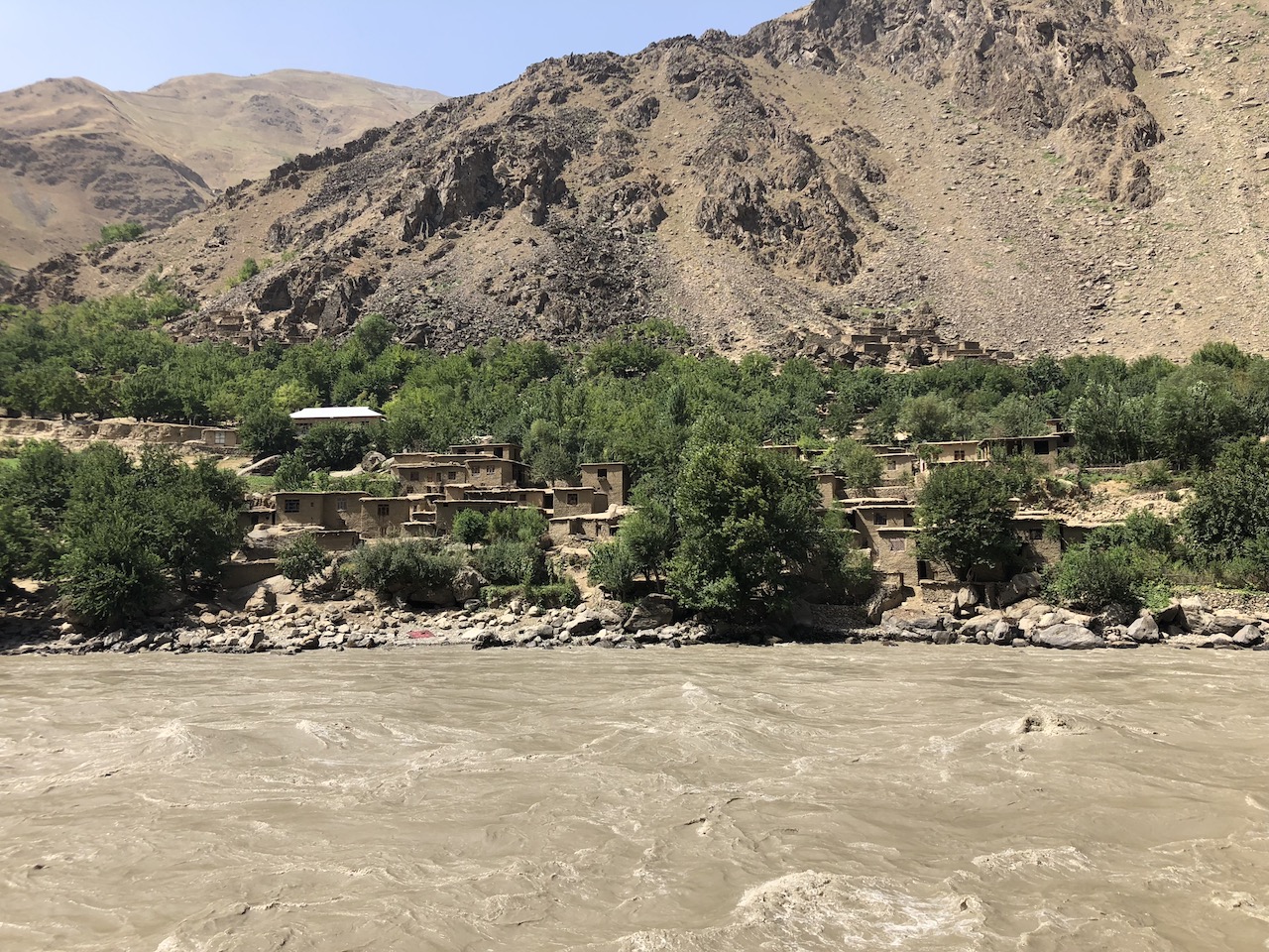Über Tage sind wir Hunderte von Kilometern der afghanischen Grenze entlang gefahren. Der Panj River stellt die Grenze dar und ist oft ein reißender Fluss, tief eingeschnitten zwischen Felswänden. Daneben führt die Straße entlang – zum Glück fahren die Lastwagen vorwiegend nachts!