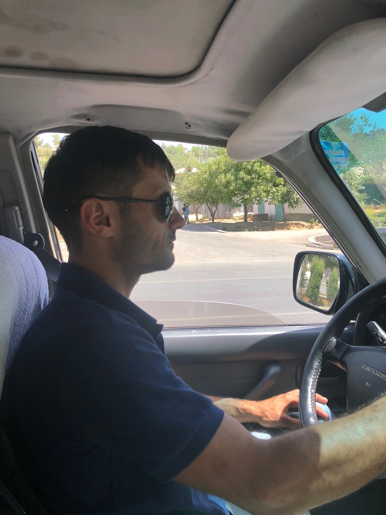 Unser Fahrer Marat fährt den Jeep souverän – mal gekonnt um die Schlaglöcher herum, oft aber mit Karacho mittendurch.