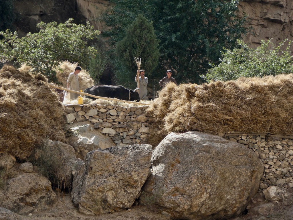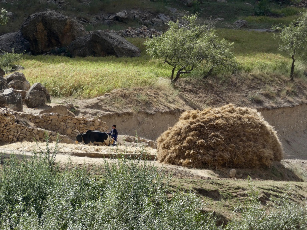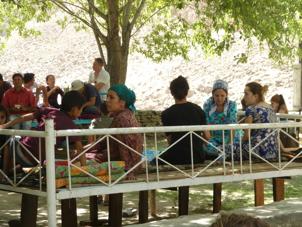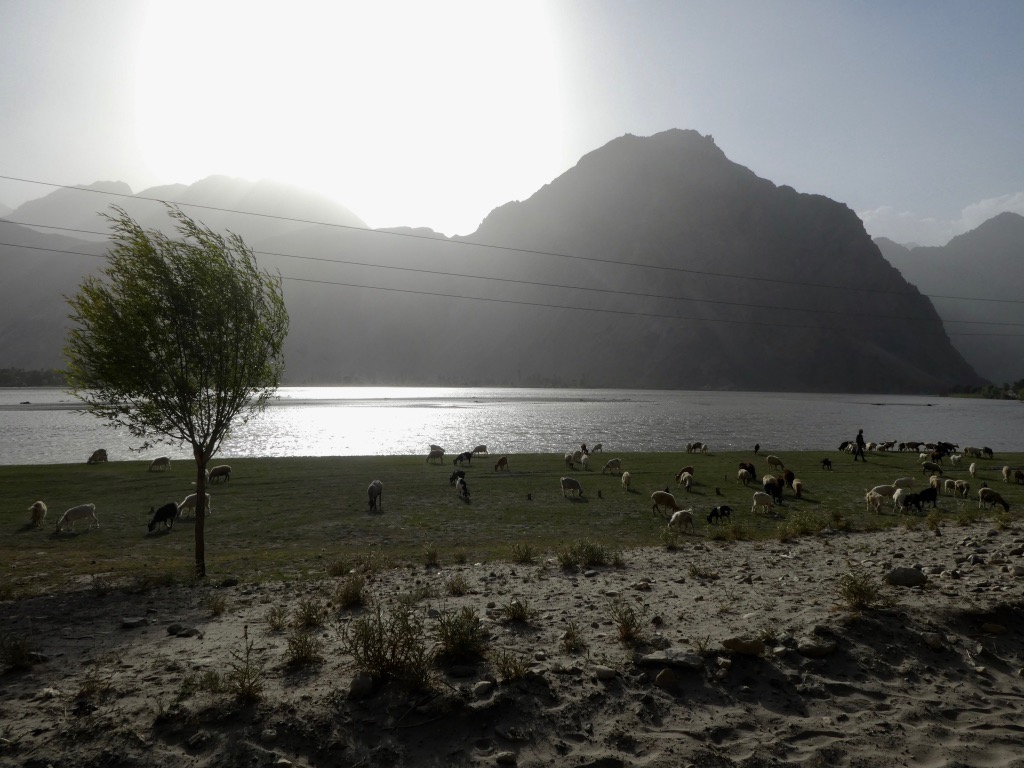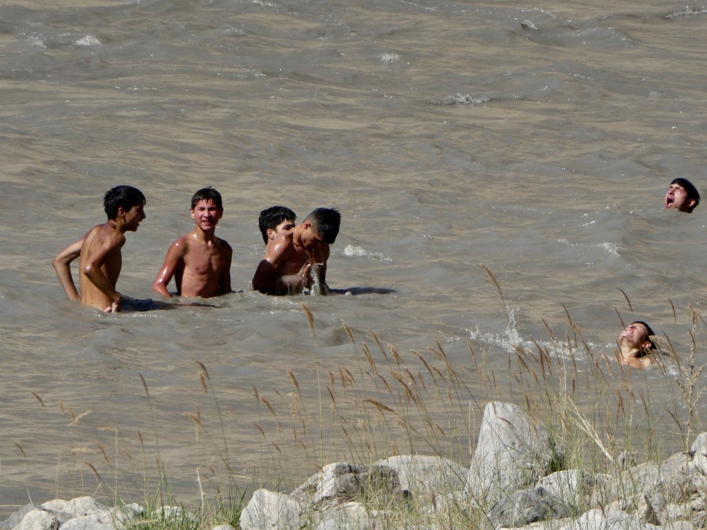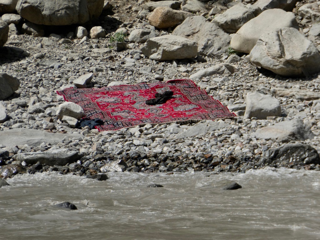 Nach allen den Sicherheitshinweisen und Berichten aus Afghanistan, ist der Blick über die Grenze für uns alle immer wieder faszinierend. Wir sind überrascht wie viele nette Dörfer da am Panj auf der anderen Seite liegen mit Feldern, die sich hoch auf die dahinterliegenden Bergrücken ziehen. Alltagsleben auf beiden Seiten der Grenze – badende Kinder an beiden Ufern des Panj, Teppichwaschaktionen, Feldarbeit und idyllische Abendstimmung.