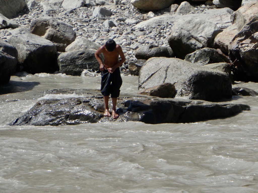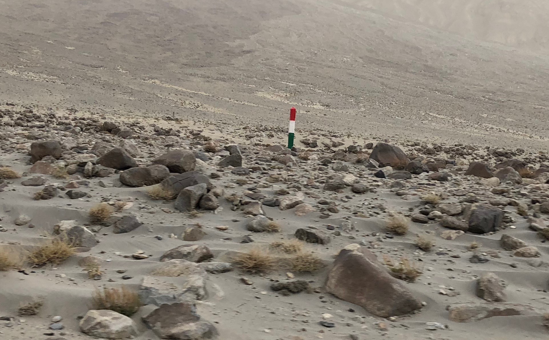 Beidseits des Panj leben die gleichen Ethnien und die Grenze wurde beim „great game“ vor ca 100 Jahren von Russland und England entlang des Flusses durch mehrere Volksgruppen gezogen. Die Leute sprechen dieselben Sprachen und sind vorwiegend gemäßigte schiitische Ismailiten. Trotzdem gibt es nur wenige Brücken und Grenzübergänge. Allerdings ist die Grenze auch nicht sehr stark gesichert, wir sehen nur gelegentlich eine Grenzpatrouille, die zu Dritt zu Fuß der Straße entlang schlappt. Hin und wieder ein Grenzpfosten …