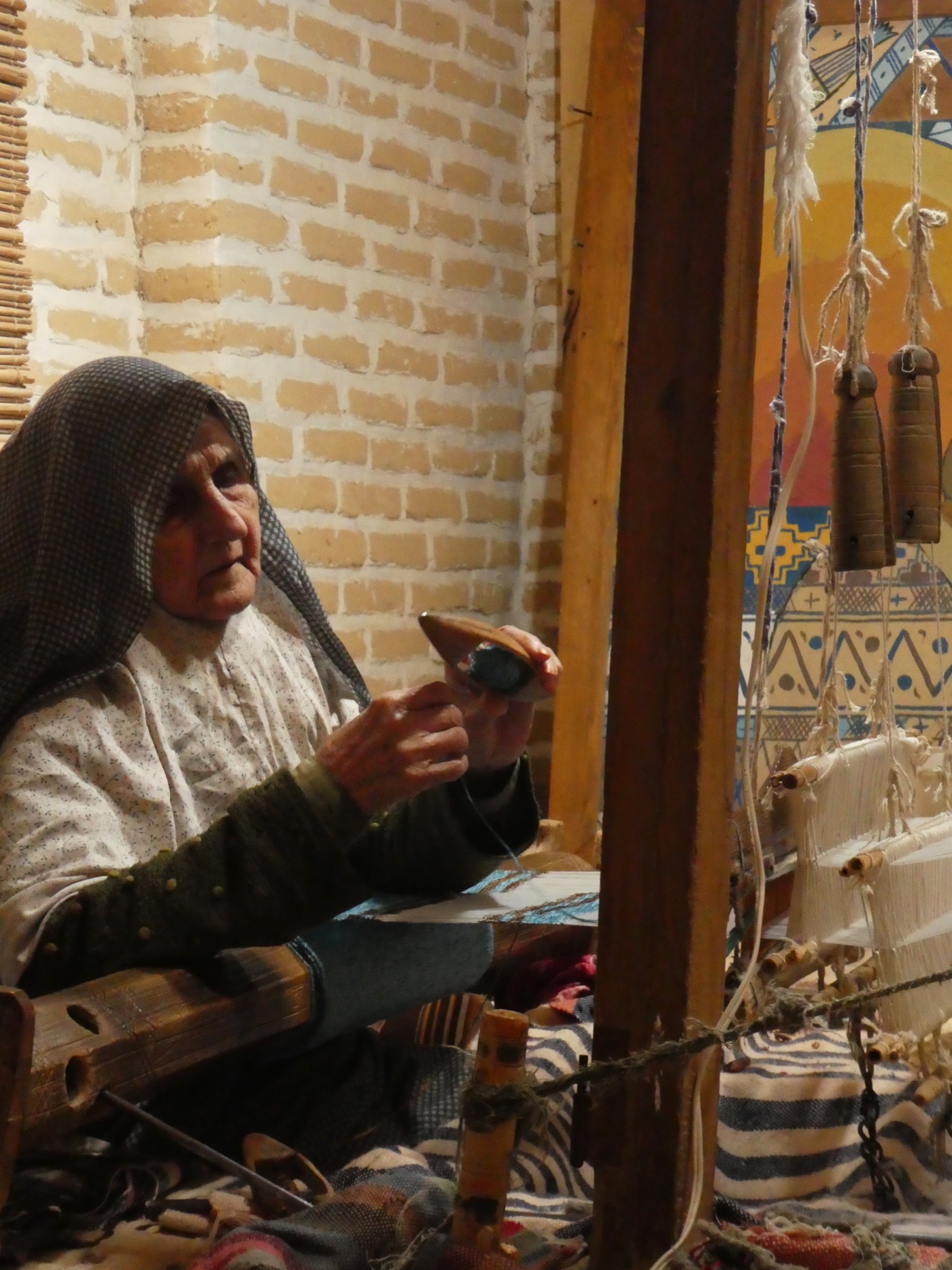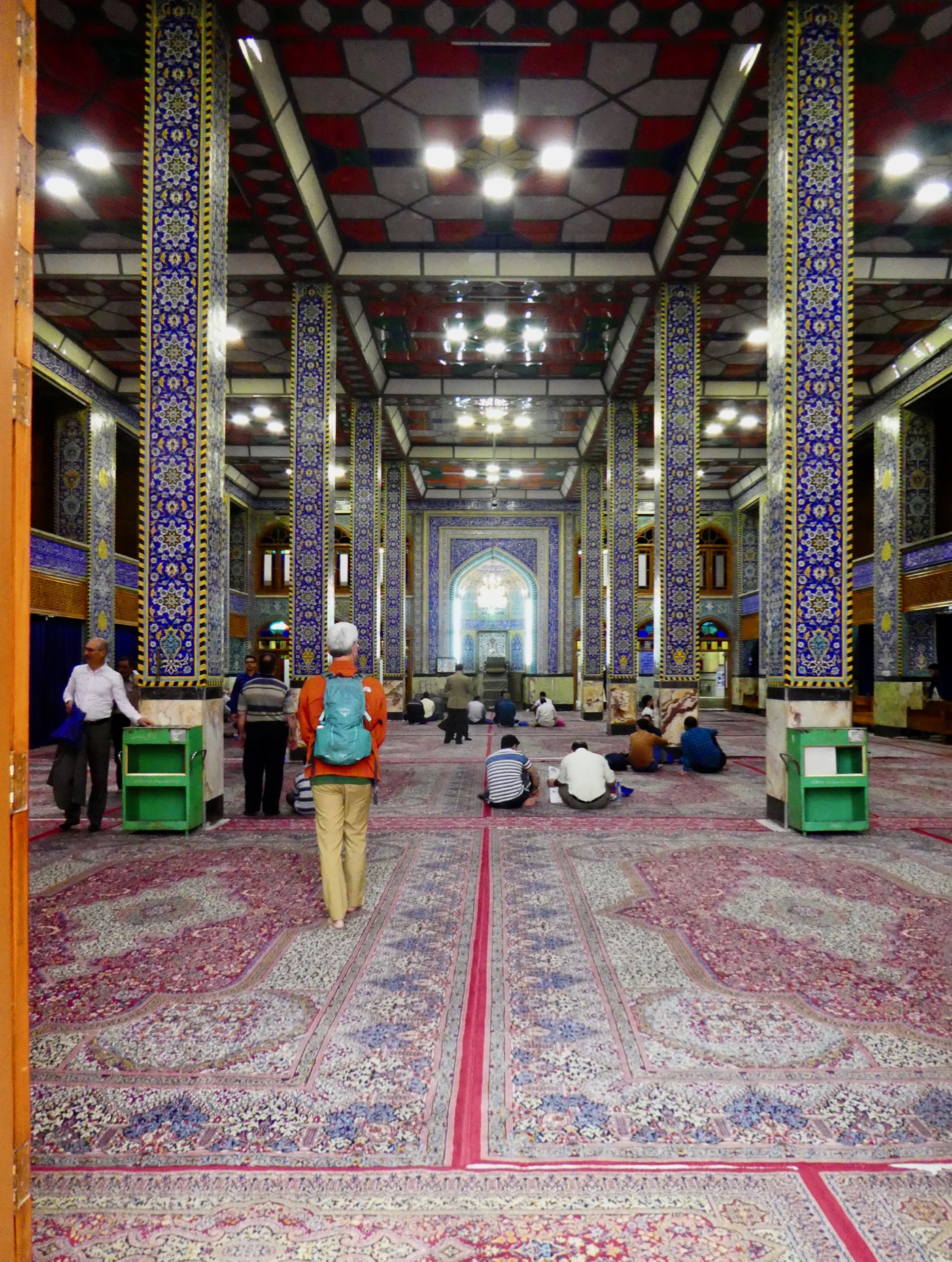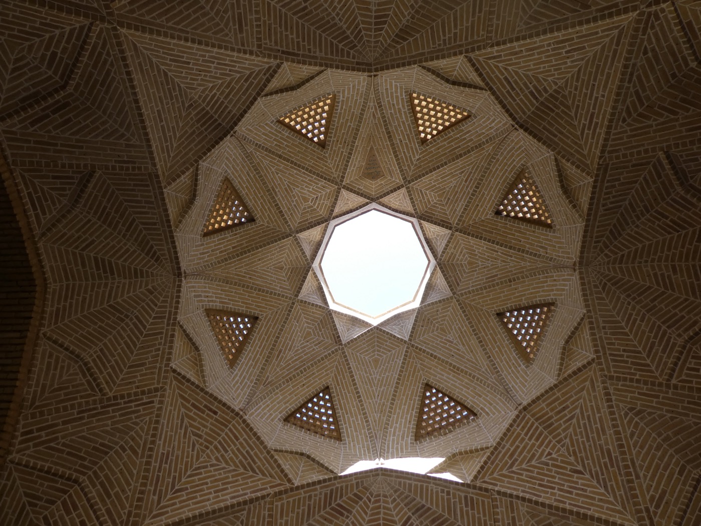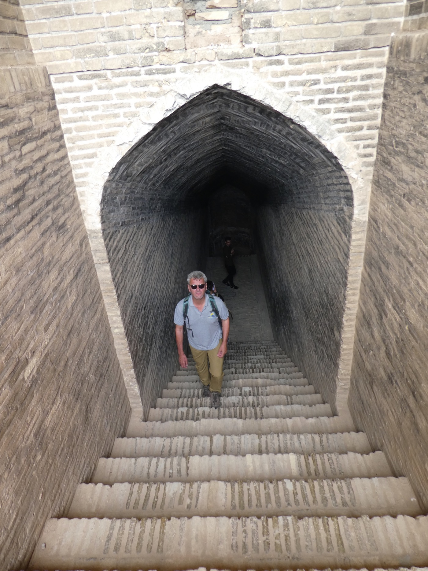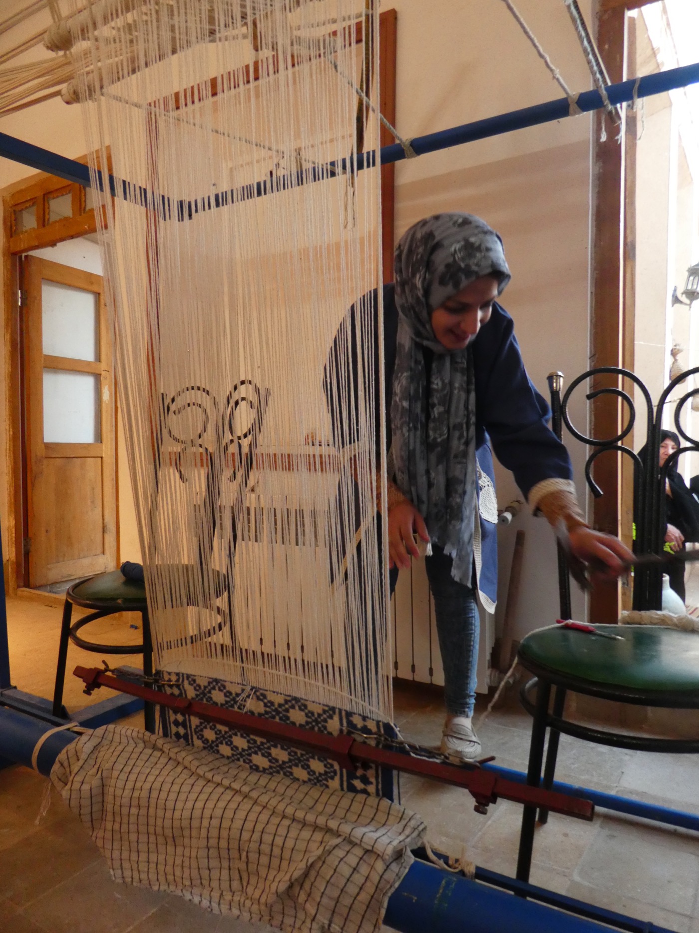 In Meybod beeindruckt uns der Taubenturm, in dem mehrere tausend Tauben zur Düngerproduktion gehalten wurden. Die Eisproduktion in der Wüste ist auch sehr interessant … in Becken wurde im Winter das Regenwasser gesammelt und gefroren. Dann in Blöcke gehauen und im Eisturm gelagert … heute liegt am Boden nur noch ein dekorativer bunter Teppich. Apropos Teppich – auch in Meybod in einer alten Karawanserei gibt es ein Teppichmuseum und wir schauen einer alten Dame beim Weben zu. Die Wendeteppiche aus Baumwolle haben es mir angetan – schade, dass das Fluggepäck so begrenzt ist.