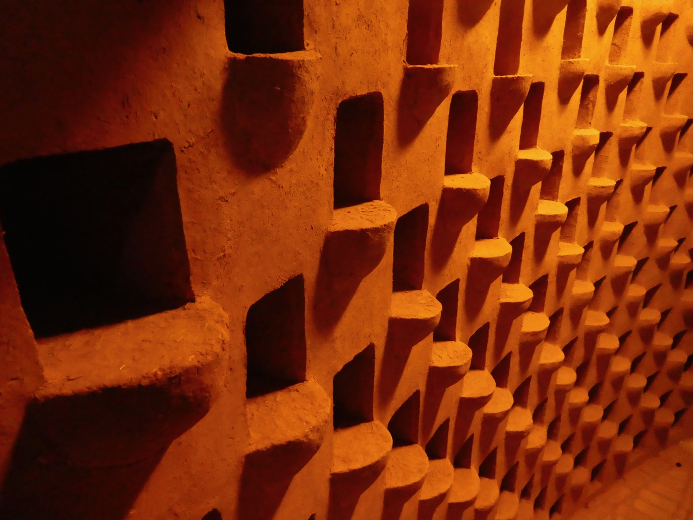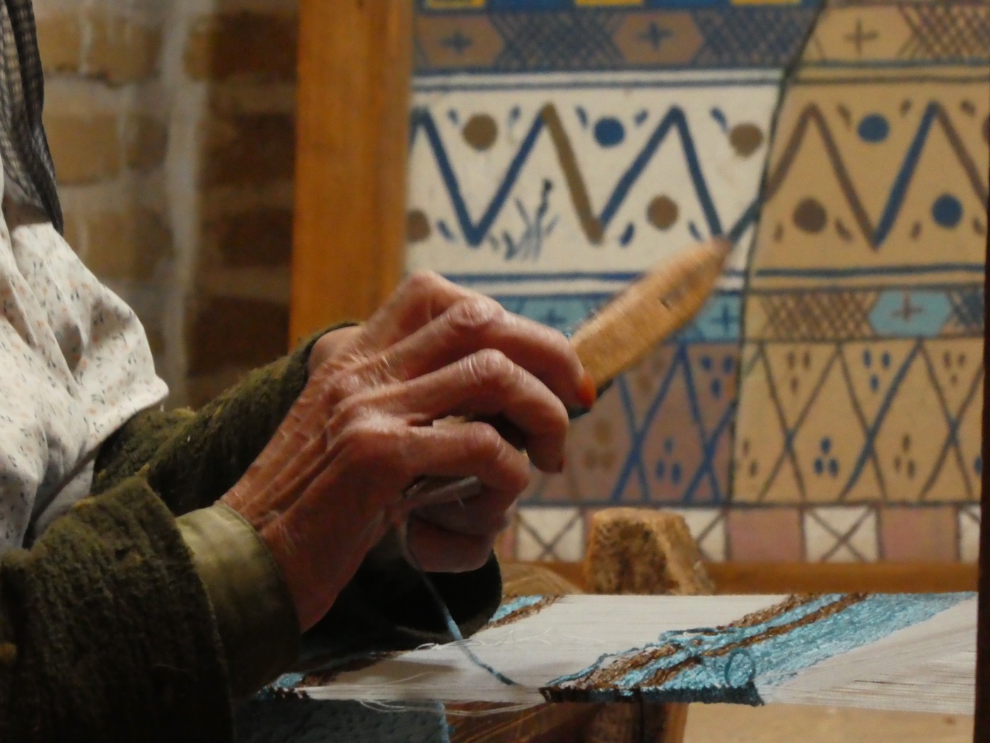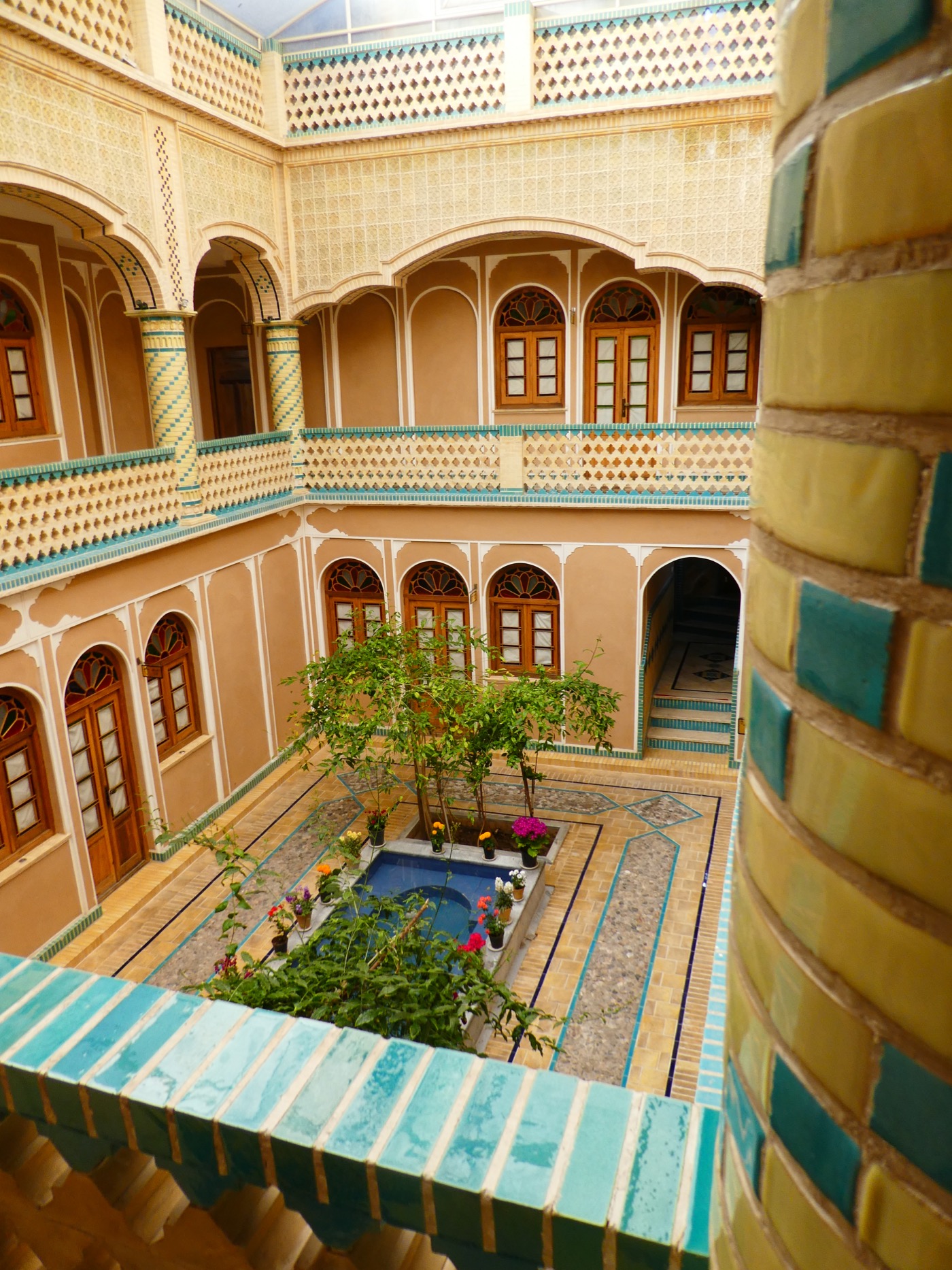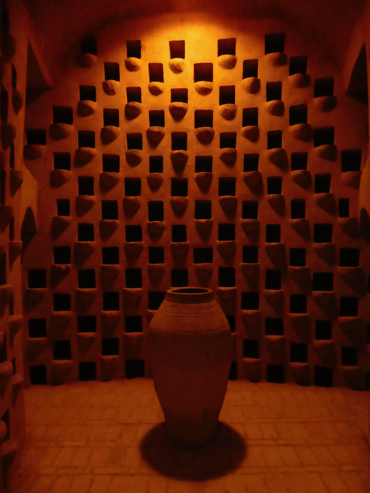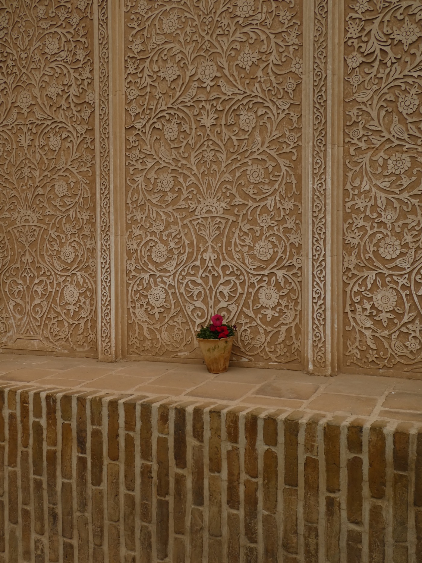 In Meybod beeindruckt uns der Taubenturm, in dem mehrere tausend Tauben zur Düngerproduktion gehalten wurden. Die Eisproduktion in der Wüste ist auch sehr interessant … in Becken wurde im Winter das Regenwasser gesammelt und gefroren. Dann in Blöcke gehauen und im Eisturm gelagert … heute liegt am Boden nur noch ein dekorativer bunter Teppich. Apropos Teppich – auch in Meybod in einer alten Karawanserei gibt es ein Teppichmuseum und wir schauen einer alten Dame beim Weben zu. Die Wendeteppiche aus Baumwolle haben es mir angetan – schade, dass das Fluggepäck so begrenzt ist.