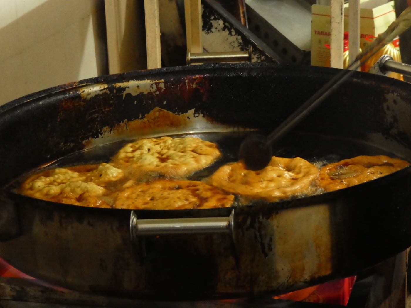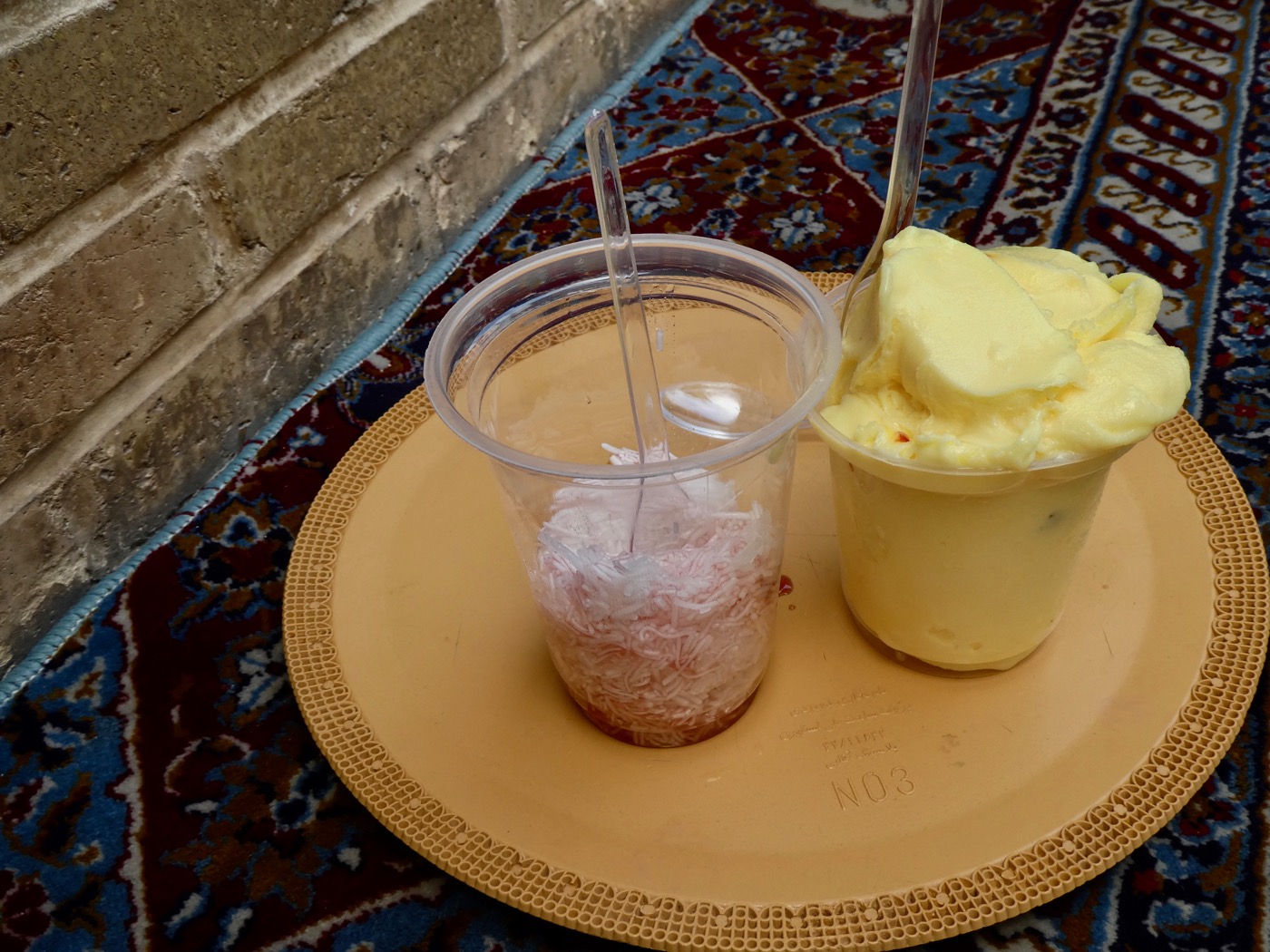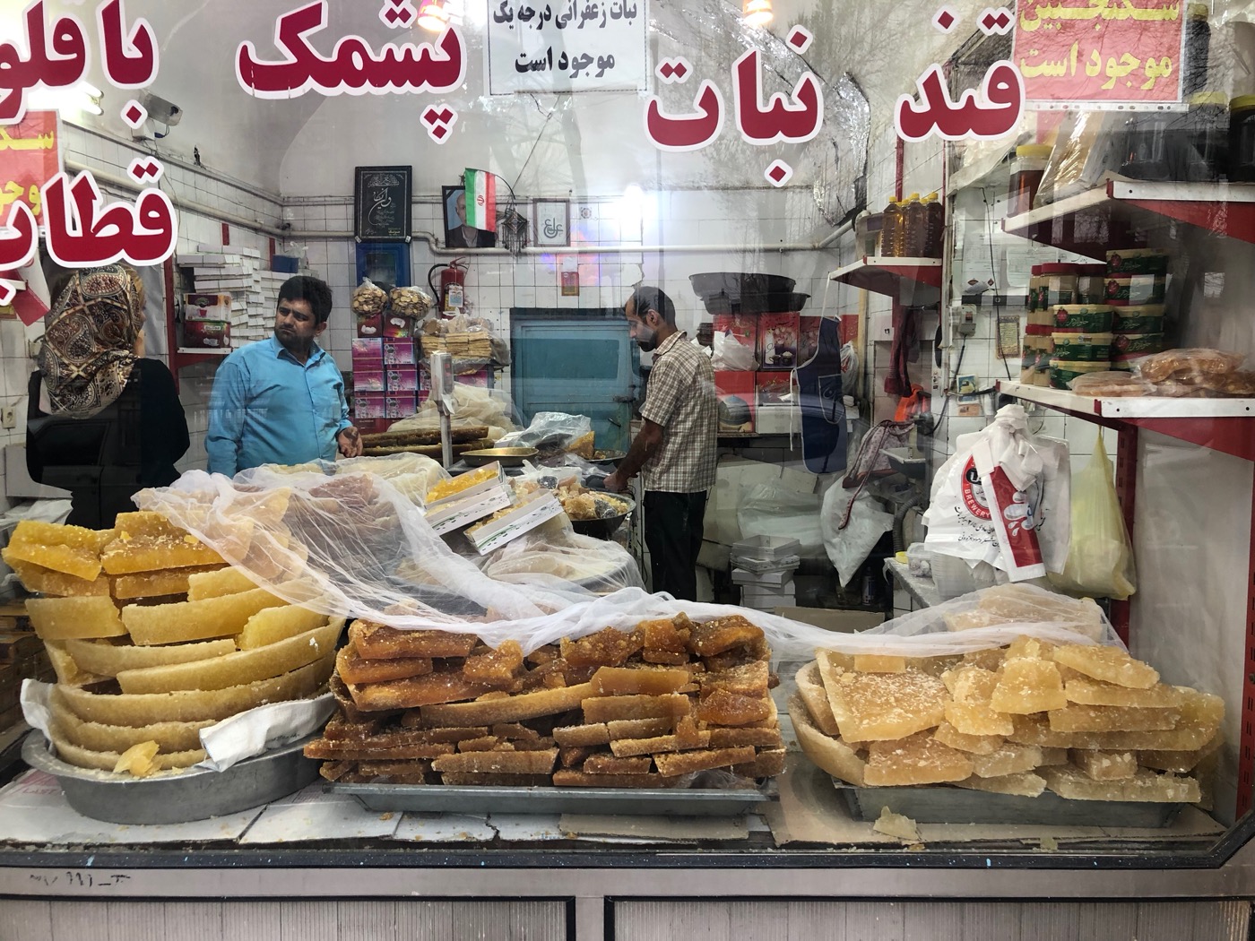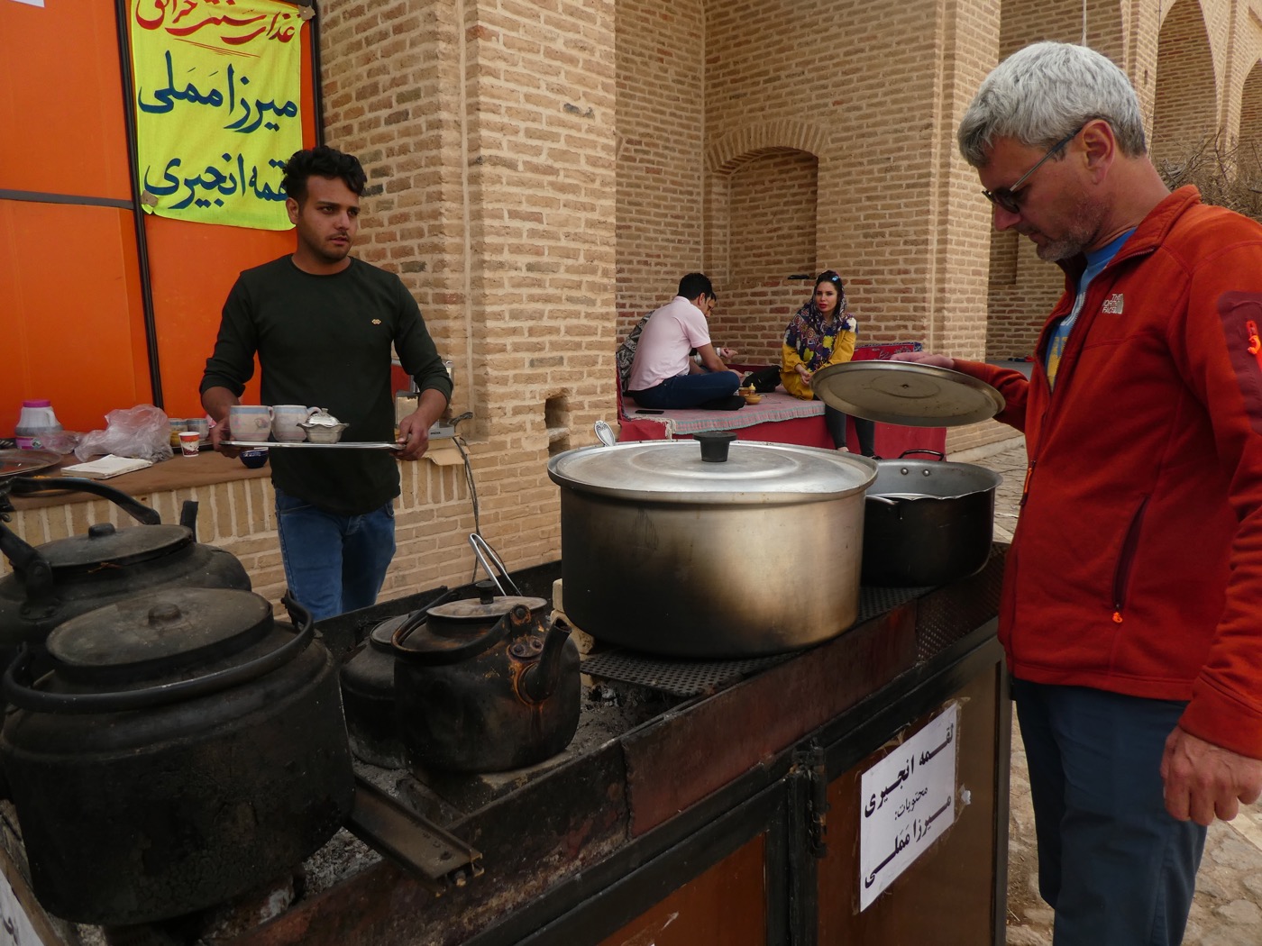 Auch kunsthandwerklich ist Yazd interessant: Viele Töpfereien, Teppiche werden gewebt – jede Region hat hier ihren eigenen Stil und die Patisserie ist einfach unglaublich LECKER!!! … insbesondere die Yazadi – kleine Rührteigküchlein mit Pistazien oben drauf – haben es uns angetan! Mit den noch warmen süßen Stückchen füttern uns viele Iraner im Vorübergehen! In Nowruz-Stimmung wird dieses Gebäck in Familiengroßpackungsmenge frisch beim Bäcker erstanden und bereits auf der Straße die ersten Teile genossen.
