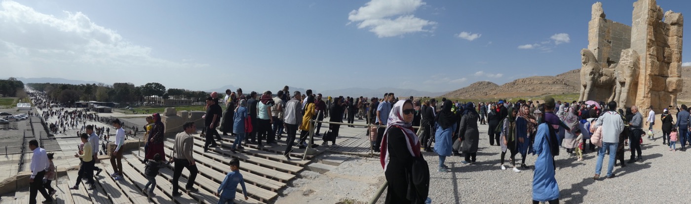 Unser erstes Ziel ist Persepolis, eine antike Stätte – gebaut während des Achaemenid Reiches ca 500 Jahre vor unserer Zeitrechnung. Gemeinsam mit vielen Iranern besichtigen wir die beeindruckende Anlage.