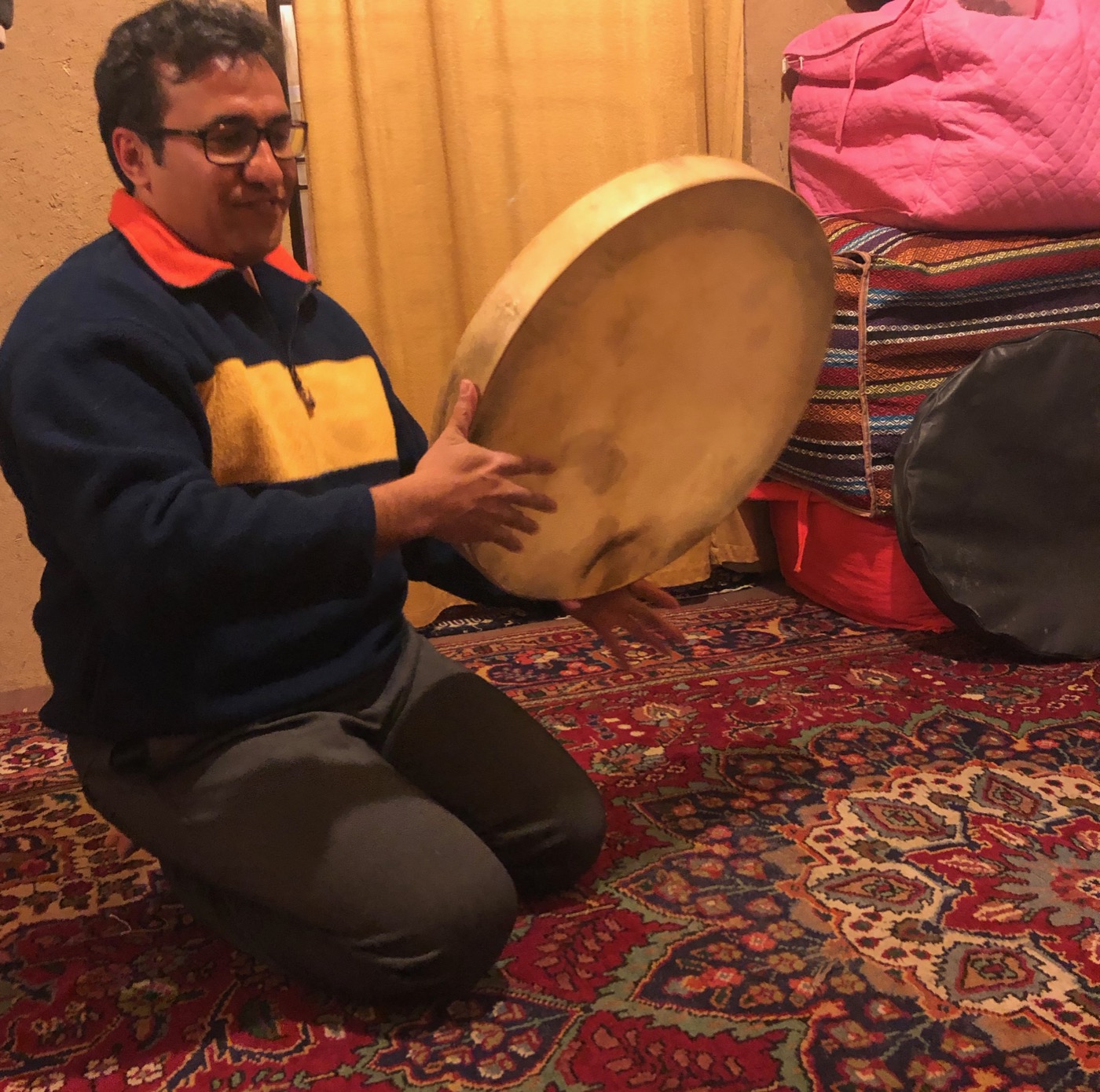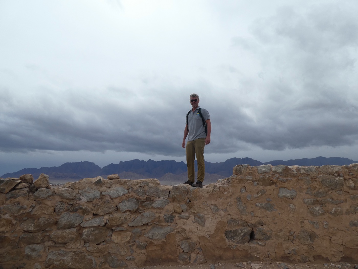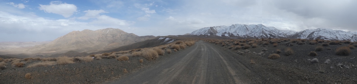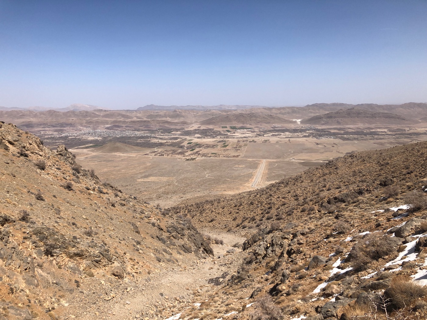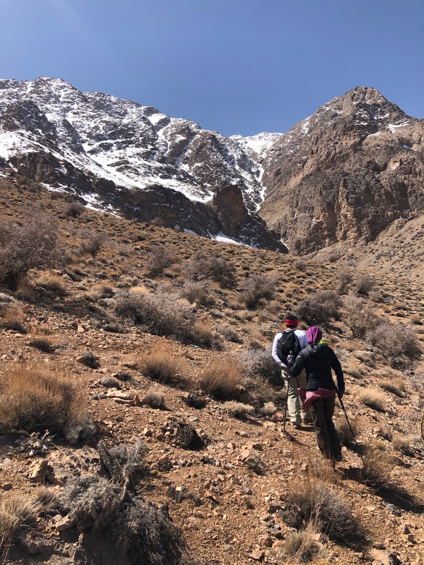 Zum Übernachten organisiert Hooman uns ein Homestay in Jafar Abad Sofia – es liegt in einem Tal zwischen Zagrosgebirge im Süden und der Wüste im Norden. Aufgrund der Sanktionen gegen den Iran sind booking.com, Airbnb etc. hier nicht aktiv und unsere üblichen „Tools“ taugen nichts. Iranische Websites in Farsi sind wenig hilfreich, so sind wir wegen Unterkunft meist auf Hilfe angewiesen. Das Homestay wird von Kamis liebevoll betrieben, er hat Wirtschaft studiert und seine Frau ist Ärztin in Shiraz. Kamis erzählt von seiner Bergsteigervergangenheit und bietet uns für den nächsten Tag an mit uns in den umliegenden Bergen zu wandern – wir bleiben also noch eine weitere Nacht. Am Morgen dürfen wir zunächst noch mit einer alten Steinmühle Getreide malen und im Ziegenlederbeutel Yoghurt schütteln. Schmunzelnd beobachten uns die Hausangestellten … Aber nun wollen wir mit Kamis auf den nächstgelegenen Berg – er sagt, es sei ein 4000er (was ich bezweifle und die Karten geben auch nicht viel her). Auf dem Berg liegt noch deutlich Schnee, also gut – wer wird da zweifelnd schauen! Nach zwei Stunden Anstieg zeigt sich allerdings (vöööööllig unerwartet), dass das Unternehmen zumindest ohne Steigeisen und Pickel nicht zu machen ist und zudem Kamis Kondition auch nicht mehr zum Besten steht. Innerlich kopfschüttelnd ermöglichen wir Kamis einen möglichst gesichtswahrenden Rückzug … zu Tee&Kebab. Die anschließende (Auto-) Tour durch die Dörfer ist auch ganz schön – viel Landschaft, ein zerfallenes Lehmdorf und ein weiteres nett renoviertes Guesthouse. Diese Projekte von meist jungen Paaren sind der neuste Trend und auch die Teheraner genießen die gemütlichen traditionellen Unterkünfte – nur zu finden sind sie noch schwer. Wir tragen unseren Teil zum Marketing bei und setzen eifrig Markierungen auf Maps.me und iOverlander. Ein abwechslungsreicher Tag – allerdings kann Kamis am nächsten Tag kaum laufen wegen seinem Muskelkater …