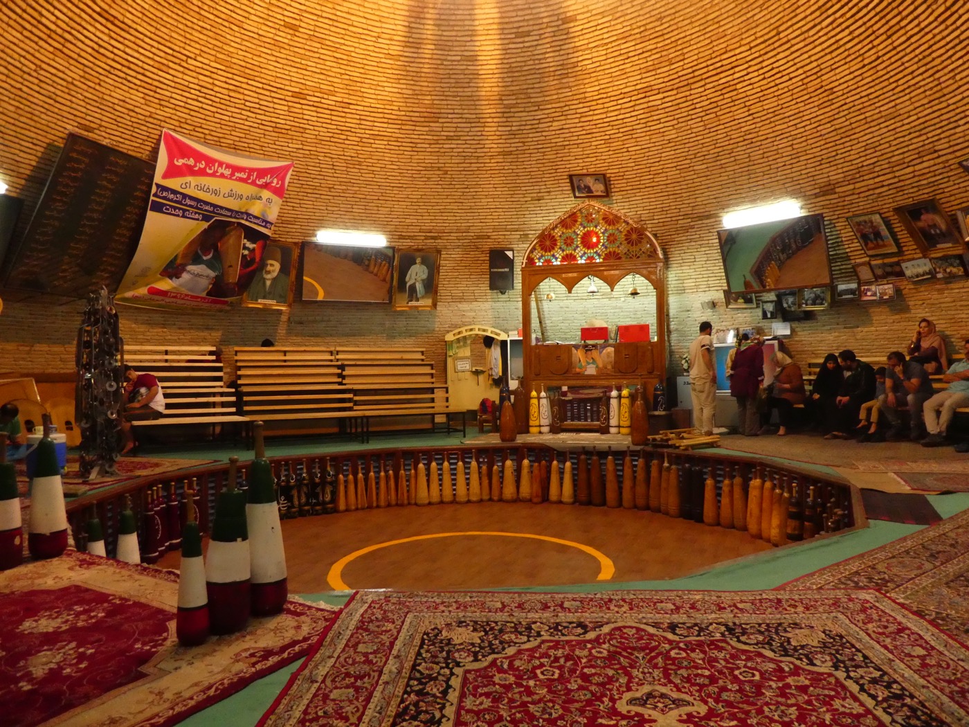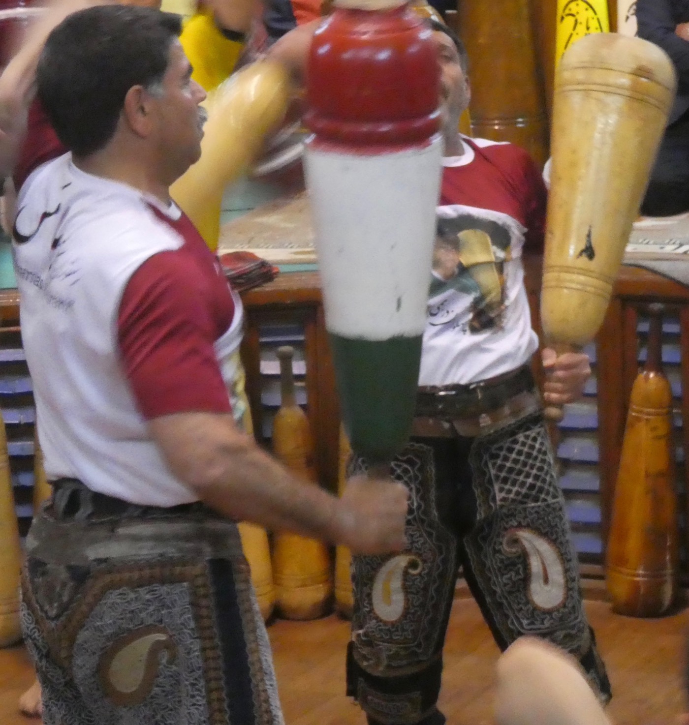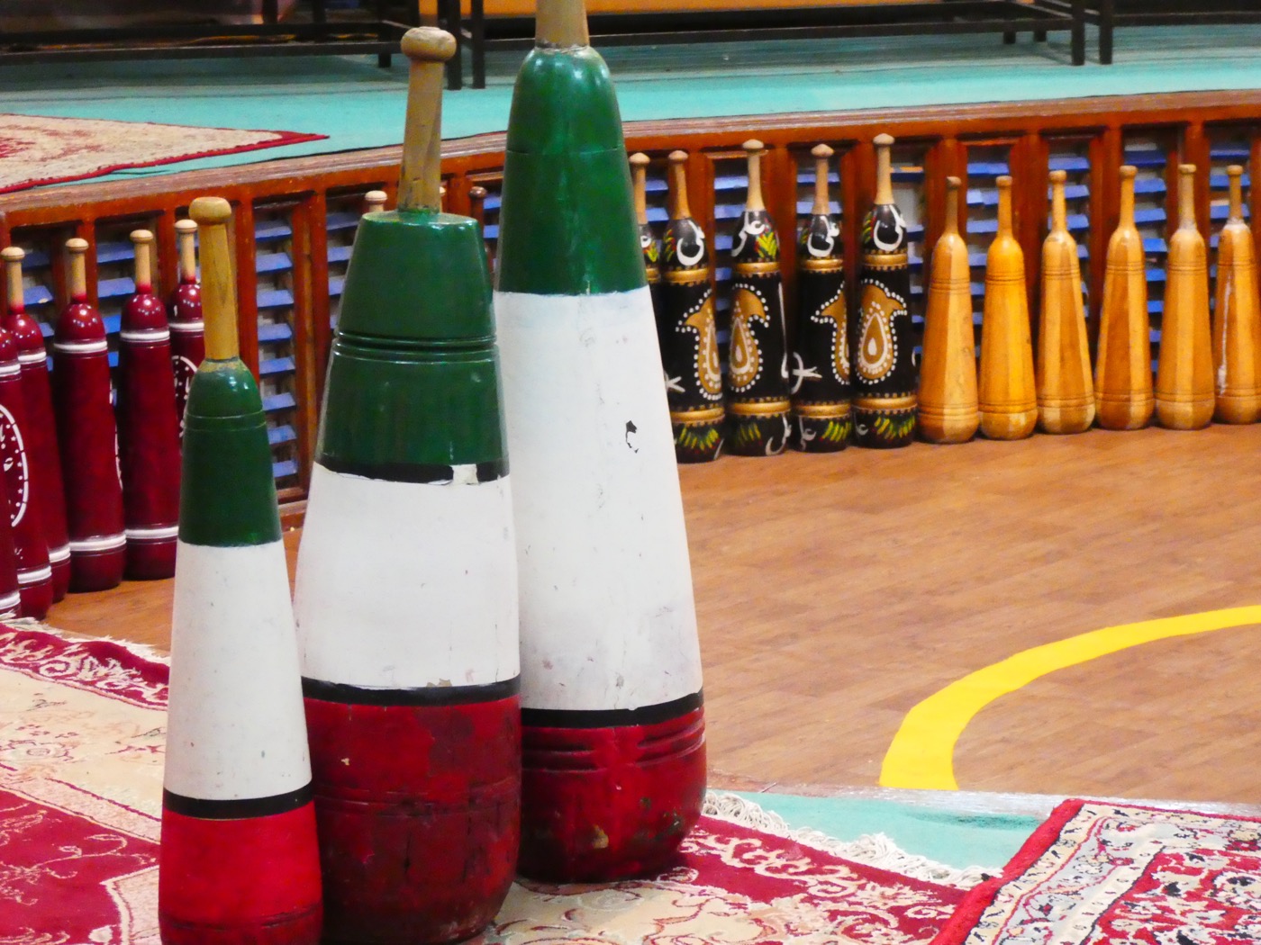 Einen traditionellen iranischen Sportclub „Saheb A Zaman Zurkhaneh“ – den Keulenschwingerclub – besuchen wir ebenfalls: In einem Gewölbekeller treffen sich Männer allen Alters, trainieren und kämpfen, wie sie es schon vor tausenden Jahren taten. Dabei kann man mächtig stark werden, wie Bilder und Heldentafeln an den Wänden beweisen. Doch heute wird nur trainiert in einer Mischung aus klassischem Bodybuilding und rhythmischer Sportgymnastik. Auf einem Podest sitzt also ein multifunktionaler Antreiber, der singt, trommelt, ab und an den Gong schlägt und fortwährend Kommandos gibt, während im Ring die Trainings-wütigen sich zuerst strecken und dann in sehr schwierig aussehende Liegestütze übergehen. Der Antreiber trommelt sich derweil in Ekstase und ruft immerzu dieselben Kommandos in die Menge, die von ihr genauso ekstatisch wiederholt werden. Nach scheinbar endlosem Aufwärmtraining werden die Keulen in Aktion gebracht, diese machen das Trainingszeremoniell so einzigartig. Sie sind in Größe, Gewicht und Handhabung Schwertern nachempfunden.