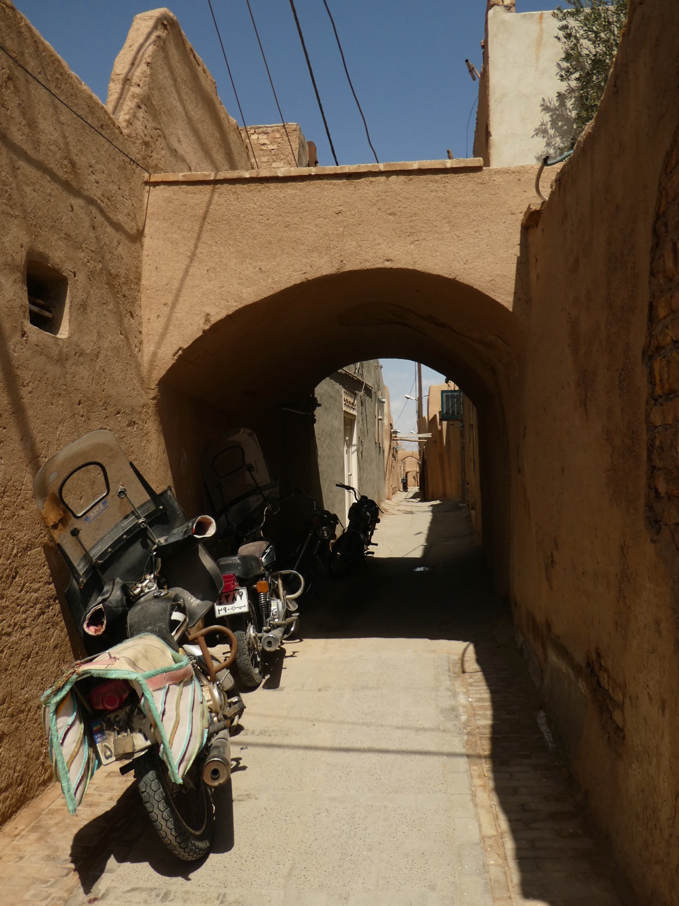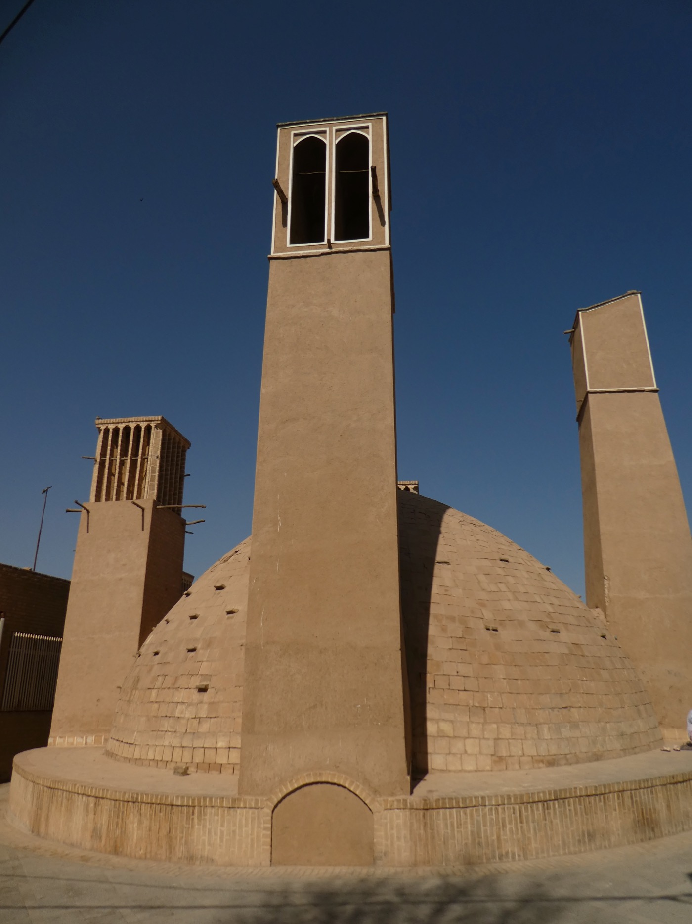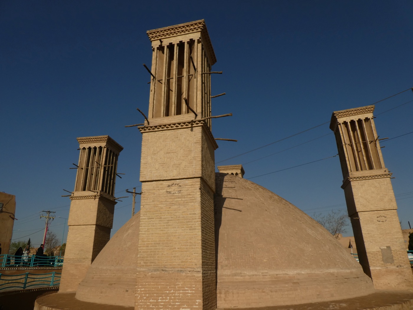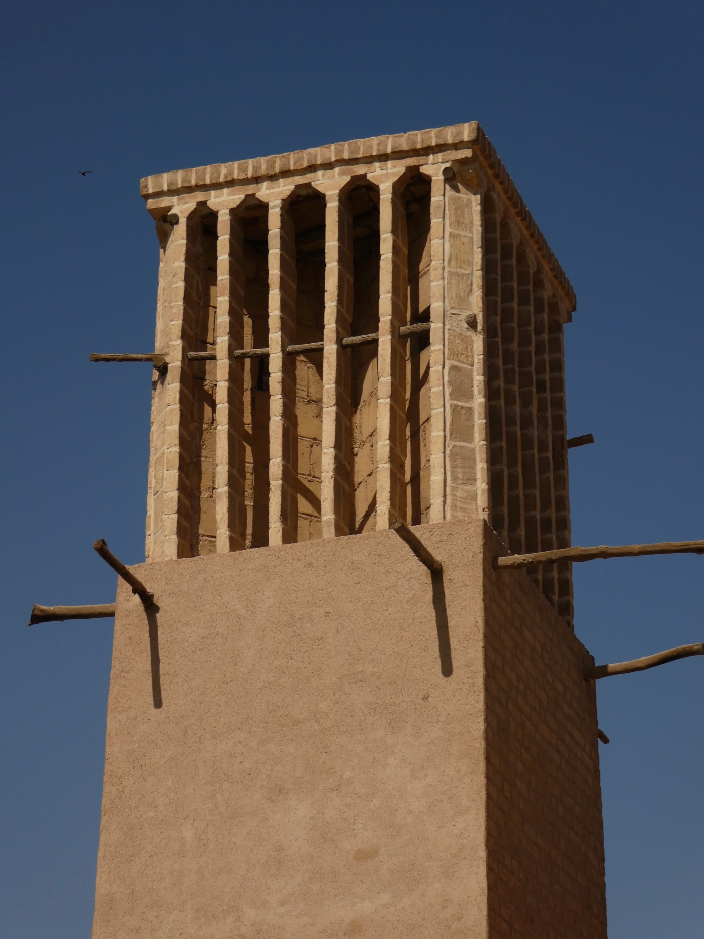 Außerdem haben die Qanat – ein 2000 Jahre altes, häufig unterirdisches Bewässerungssystem – eine hohe Bedeutung in der Wüstenstadt. Die Abgänge zu den Kanälen und Wasserspeicher mit den Windtürmen zur Belüftung und Kühlung sind überall anzutreffen und sehr prächtig gebaut.