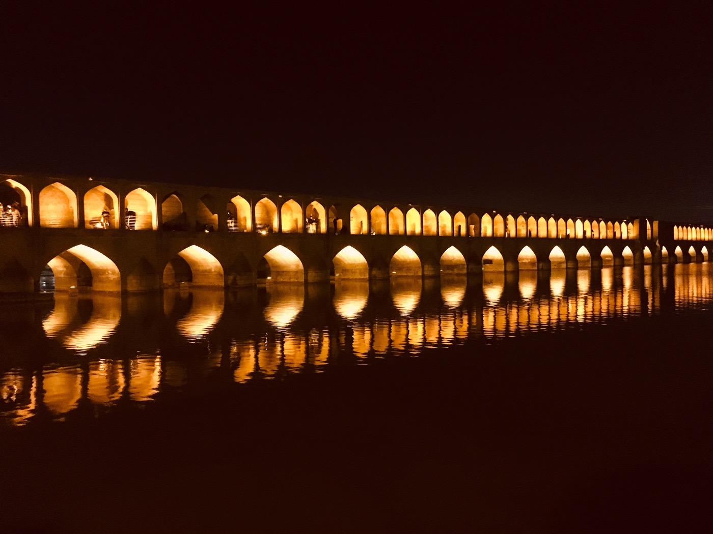 Schließlich kommen wir in Isfahan an, Freiburgs Partnerstadt und die Stadt im Iran, von der alle schwärmen. Da wir aber nach unserem Trekking noch einmal nach Isfahan kommen werden, lassen wir es langsam angehen. Den Naqsh-e Jahan Platz – der größte offene Platz der Welt – umrunden wir leider im Regen – fotografieren ist wieder nicht … Ein Tag verbringen wir im armenischen Quartier und sind überrascht als wir mehr über die Geschichte dieses Volkes im Iran erfahren. Unter Shah Abbas I wurden die Armenier im 17. Jhd aus dem Nordwesten des persischen Reiches umgesiedelt und ließen sich in Isfahan nieder, wo sie die Stadt mit Handwerkskunst und Kultur maßgeblich prägten. Wie zuvor in Yazd realisieren wir, dass der Iran wesentlich multikultureller ist als man bei uns annimmt – es gibt wohl 50 unterschiedliche Sprachen, etliche Religionen und drei verschiedene Kalendar. Am Abend bummeln wir über eine der romantischen Bogenbrücken und bewundern die Lichtspiegelungen im Fluss.
