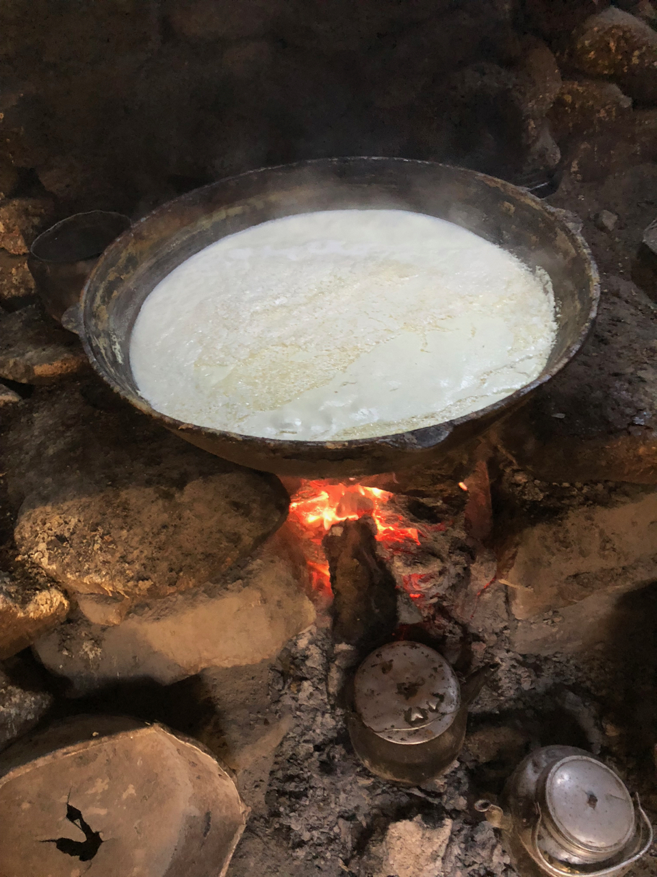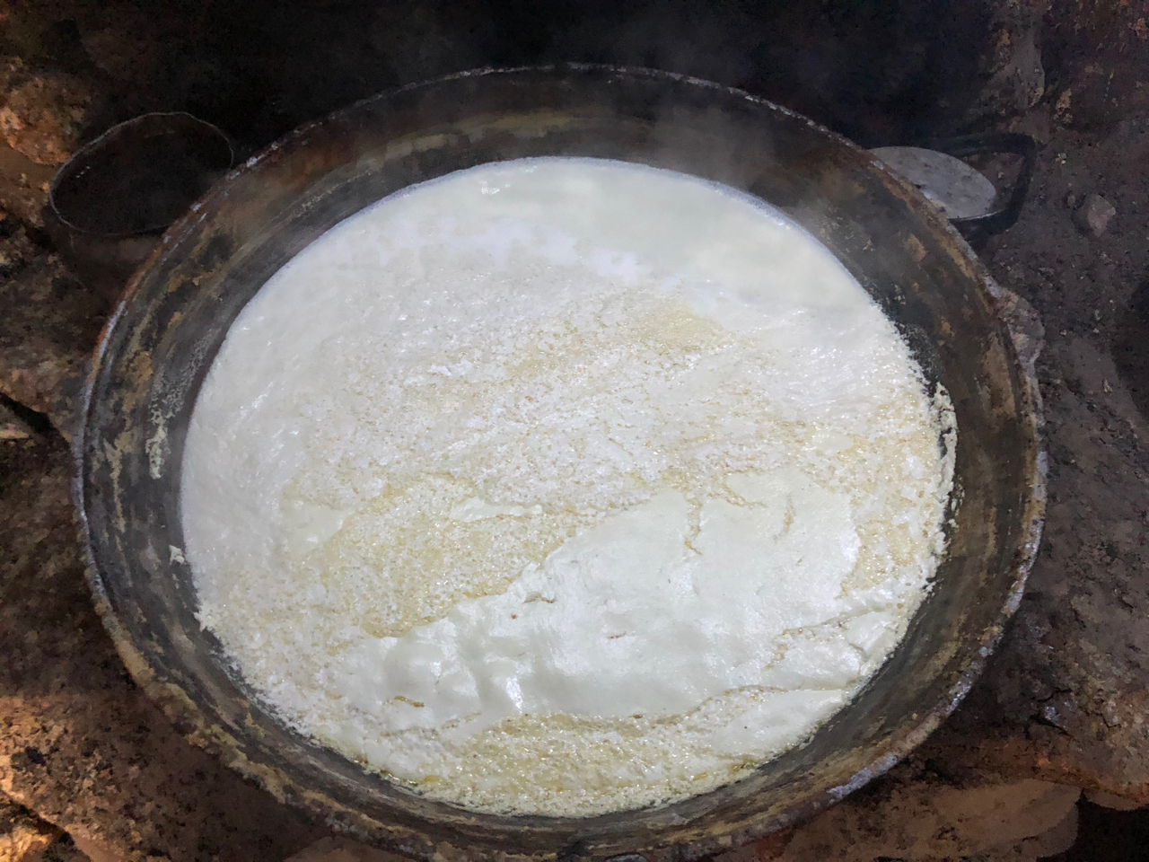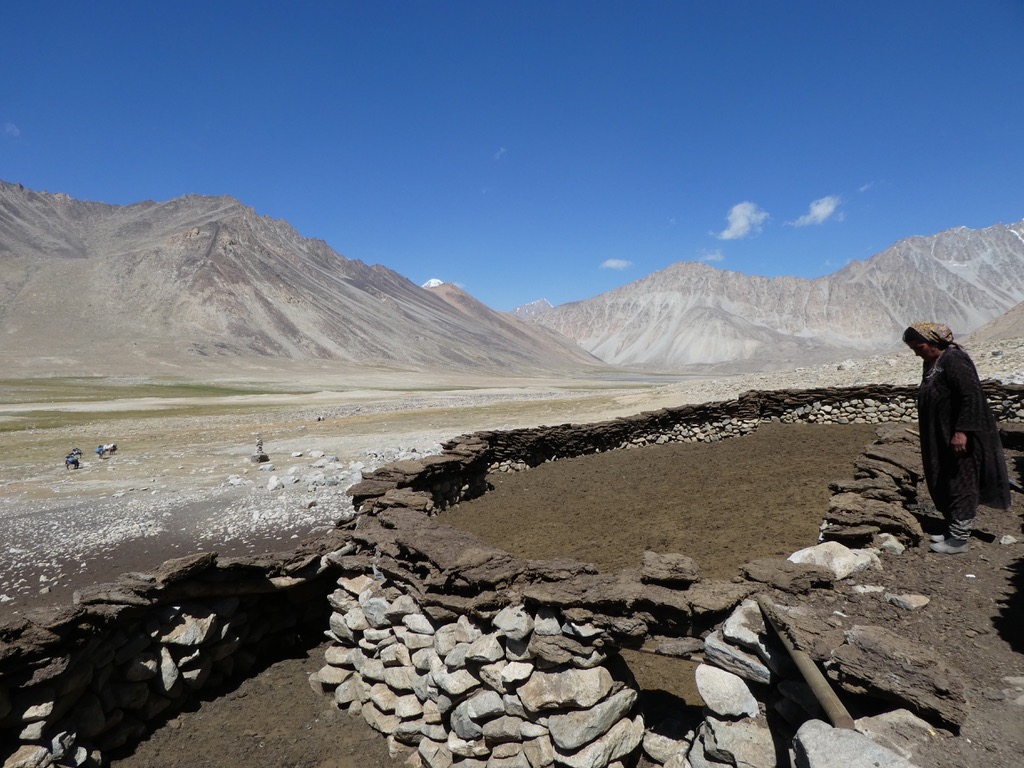 Immer wieder treffen wir auf Hirten, die in einfachen Unterkünften den Sommer auf den Hochalmen verbringen. Auf 4.100 m ist auf einer Alm die Käseproduktion wunderbar zu sehen. Von der Milcherhitzung in der „Küche“ bis zum Trocknen der Käsestücke auf den umliegenden Felsen. Das Resultat ist ein sehr würziger, trockener Käse, der zum Kochen verwendet wird und wenig mit unseren Käsegewohnheiten zu tun hat.