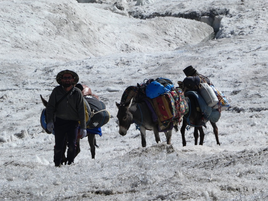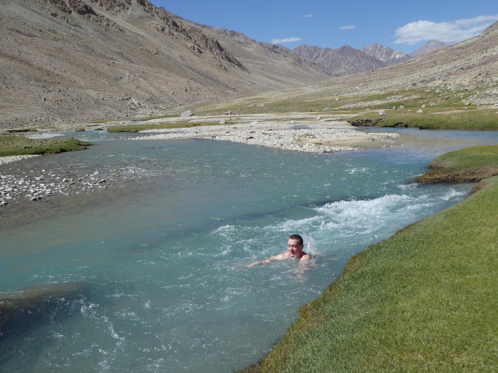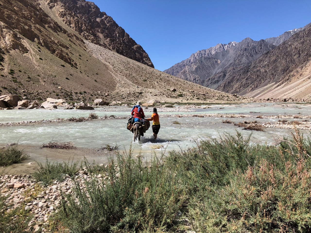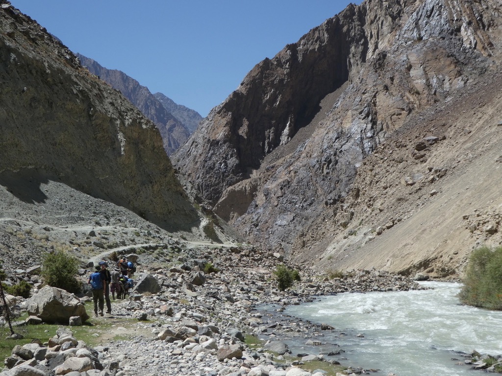 Am Yashikul-Lake treffen wir unsere Begleitmannschaft – Eseltreiber (Donkeymen) mit ihren Eseln. Durch beeindruckende Landschaften wandern wir höher und höher – was aber einige Mutige nicht von einem erfrischenden Bad im Gebirgsbach abhält – Gletscherwassertemperatur …brrrrr !!!