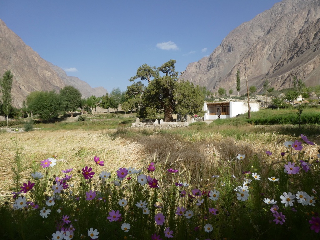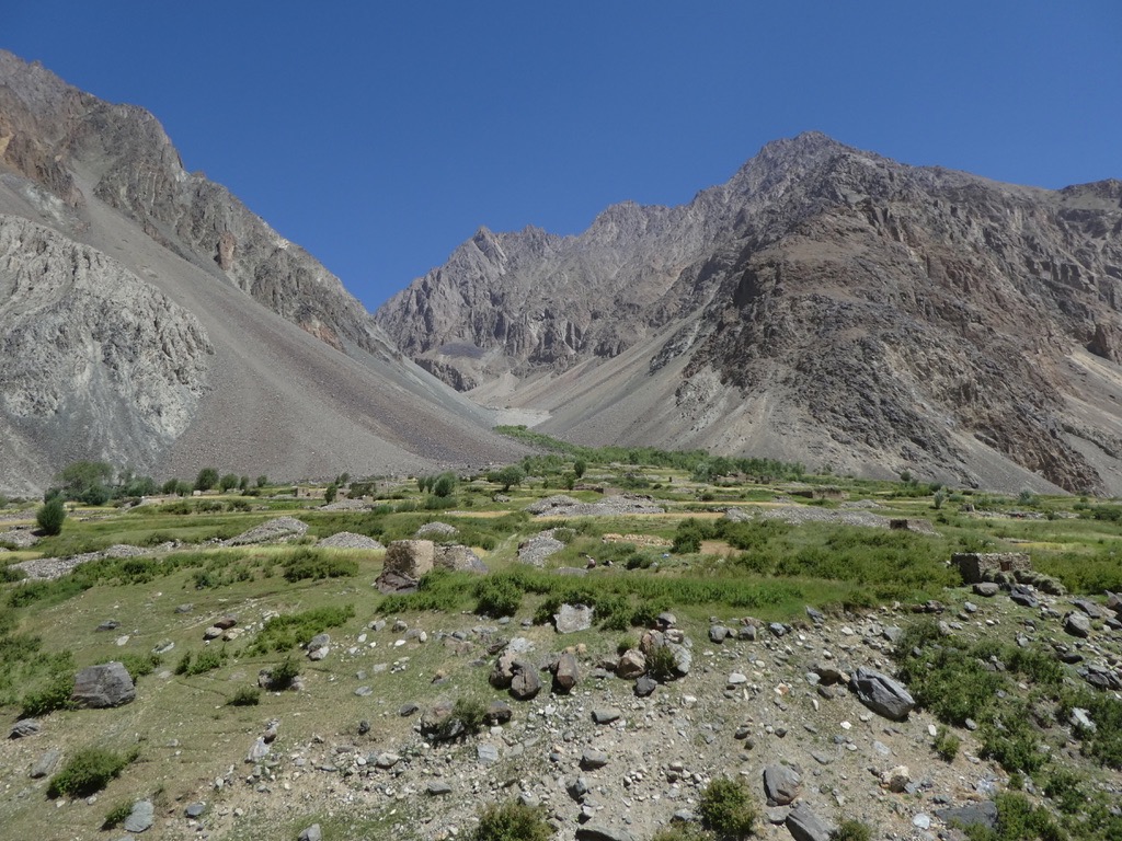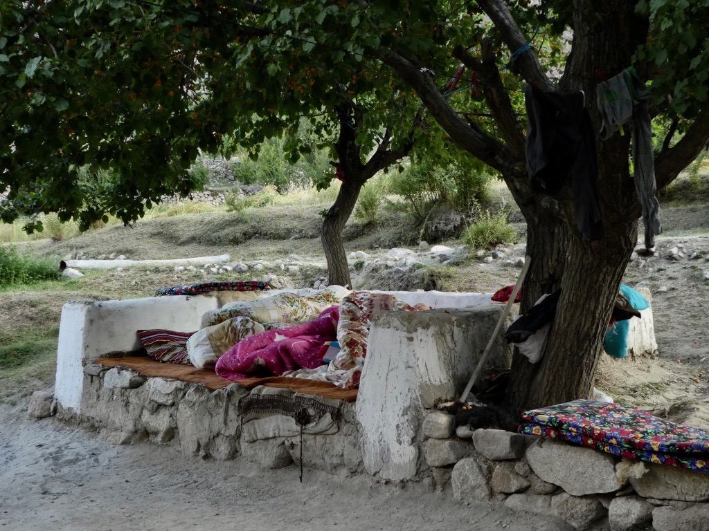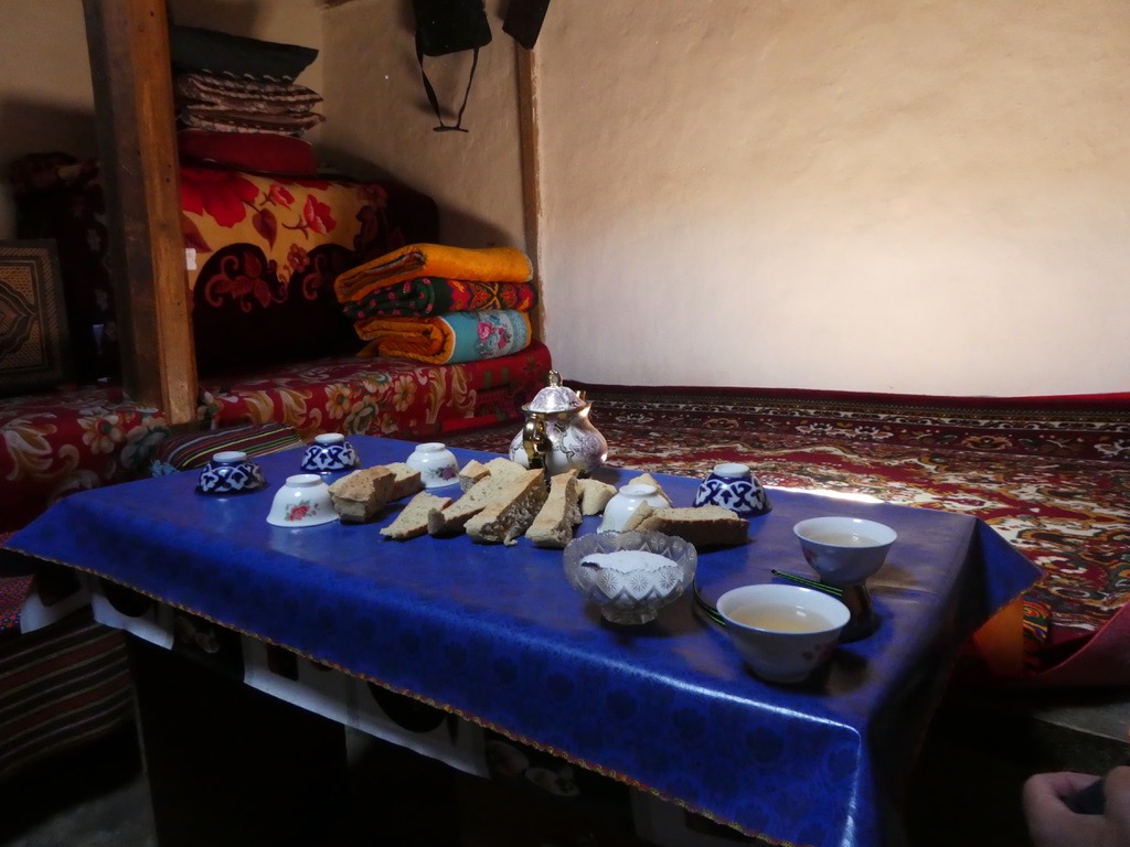 Nach den etwas „erfrischenden“ Tagen in der Höhe laufen wir nun hinunter Richtung Bardara, unserem ersten Örtchen im Bartangtal. Das viele Grün tut gut und wir sind gespannt aufs Dorfleben. Zwischendurch gibt es mal wieder einen Snack bei einem Hirten, einen Tee im Vorbeilaufen – einer der Donkeymen kennt immer jemanden vor Ort, den es zu begrüßen gibt. Besondere Freude machen dann oft unsere Fotos von den Hirtenfamilien oben auf den Almen. Ihre Verwandten in den niedrigeren Regionen freuen sich jedes Mal ein aktuelles Bild von dem einen oder anderen Kind zu sehen. Und wir haben natürlich auch Spaß daran auf diese Weise den so herzlichen und gastfreundlichen Menschen eine Freude machen zu können. In unserem Homestay werden wir herzlich mit Tee und Brot empfangen.