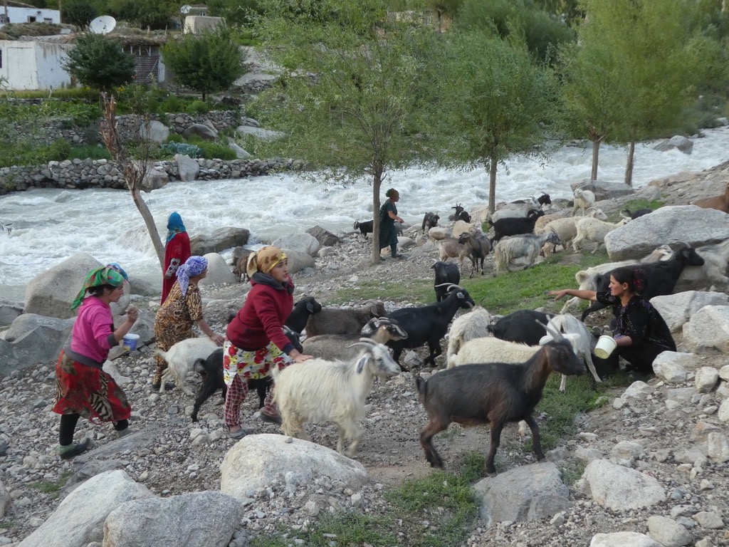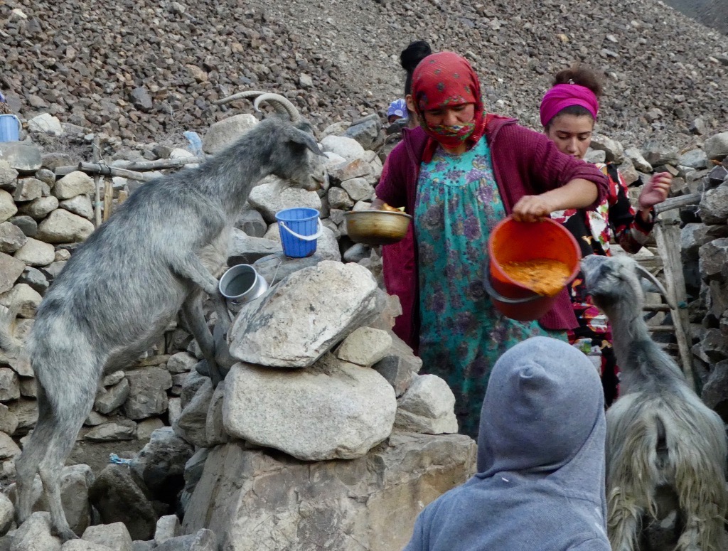 Am späten Nachmittag bummeln wir noch einmal zusammen durchs Dorf – es gibt viel zu entdecken. Einen natürlichen Kühlschrank in einem Geröllhang ( … großes Gerätsel, wo die kalten Luftströmungen herkommen…), Kornspeicher auf Felsen gebaut – viele Dorfbewohner bei der Ernte. Und das Highlight – das abendliche Ziegenmelken … oder der Tratsch- und Ratschtreffpunkt der Frauen des Dorfes (Männer verboten !!!). Zwischendurch noch ein paar Familienfotos geschossen – so schnell kommt Mann zu einer Großfamilie =) =) =)