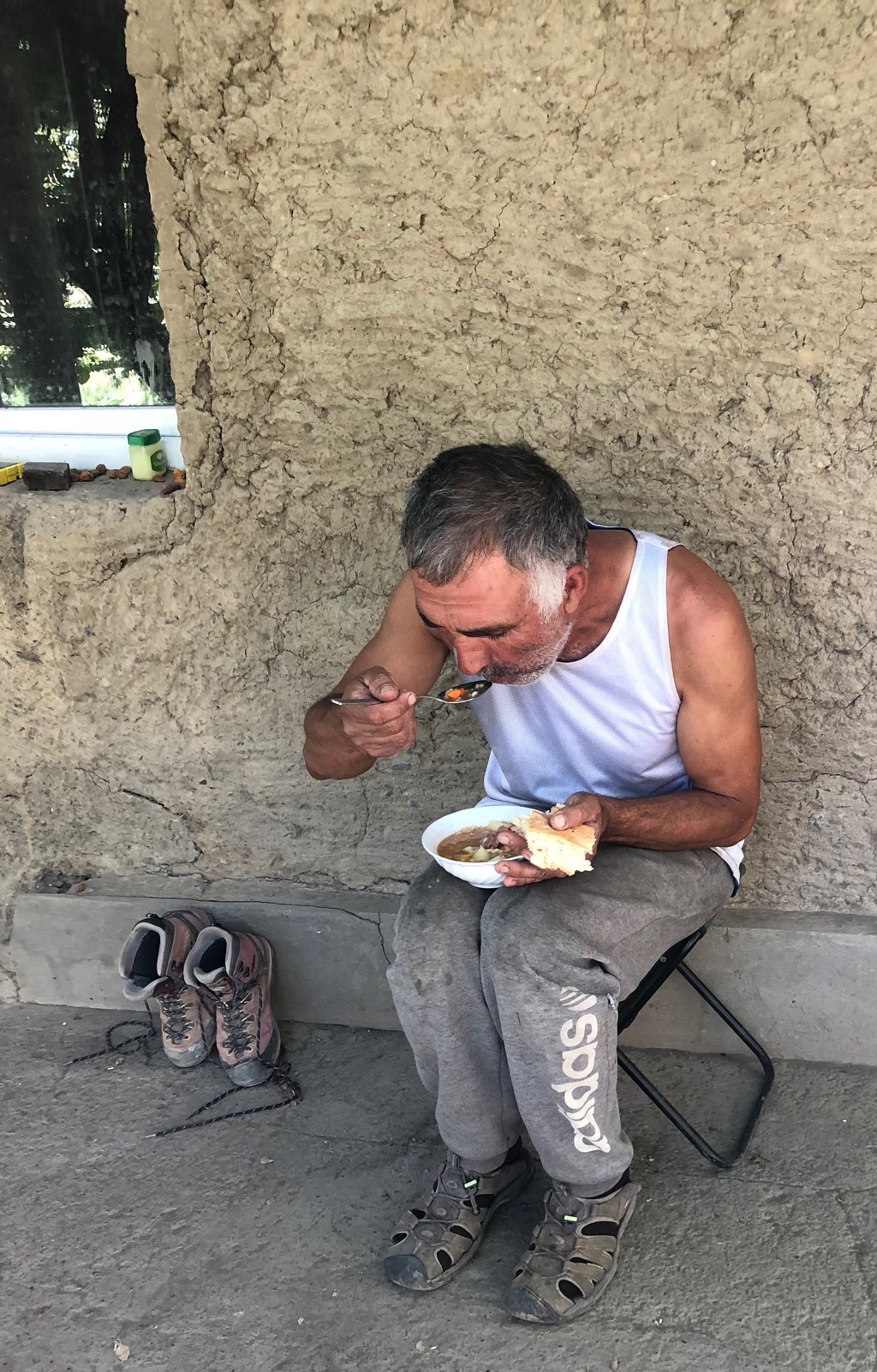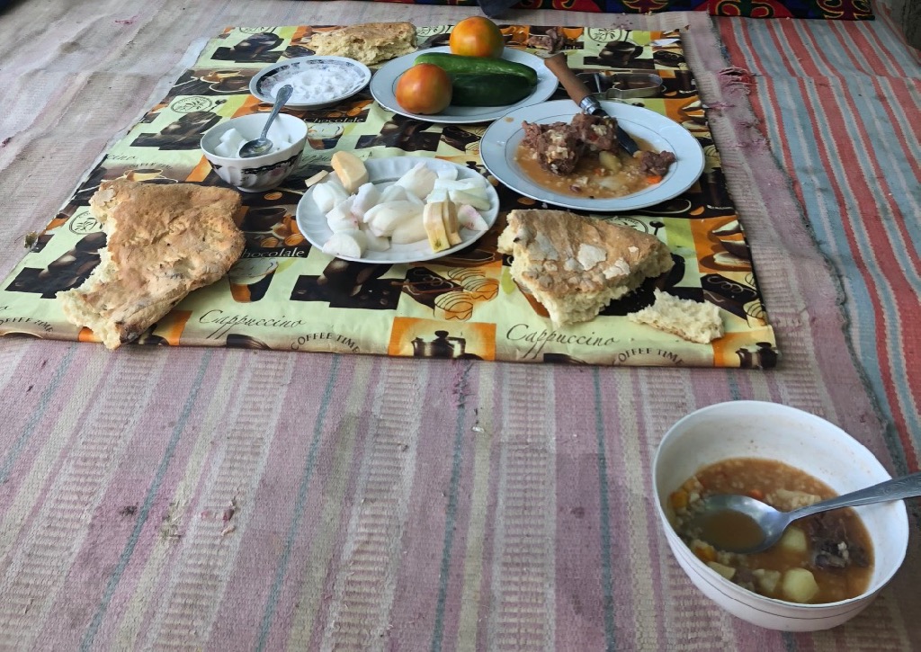 Nachdem der Rest der Gruppe weitergezogen ist, legen Sonja und ich bei Avaz’s Bruder Mulk ein paar Tage Pause in Savnob ein… zur Magenregeneration (Sonja) und einfach mal Seele baumeln lassen (… und Wäsche waschen natürlich …). Mulk verwöhnt uns super mit frischem Gemüse aus seinem Garten. Topchi, unser neuer Guide für die nächsten zwei Wochen kümmert sich sofort herzlichst um uns und führt uns u.a. durch seinen Heimatort.