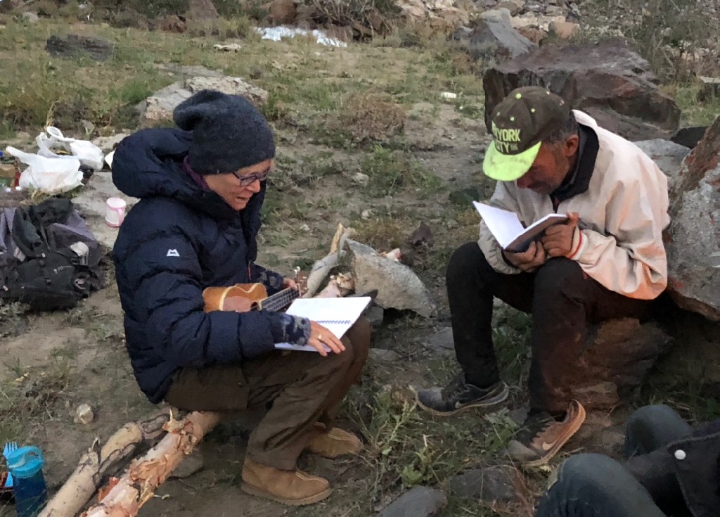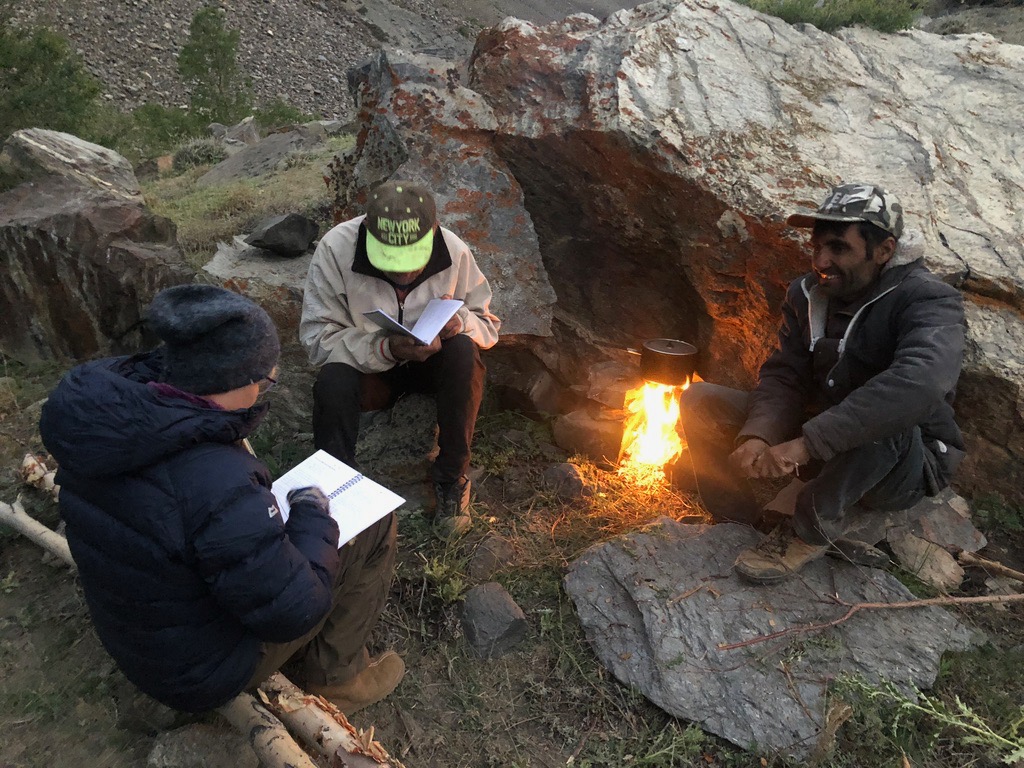 Die nächsten zwei Tage wandern wir dasselbe Tal zurück, kochen auf dem offenen Feuer und Topchi & Sonja machen abends immer wieder gemeinsam Musik. Neben den uns bekannten Lagerfeuersongs reicht es inzwischen sogar schon für ein erstes gemeinsames tadschikisches Lied … das bei weiteren Musikevents auf unserer Tour die Tadschiken immer besonders erfreut ; )