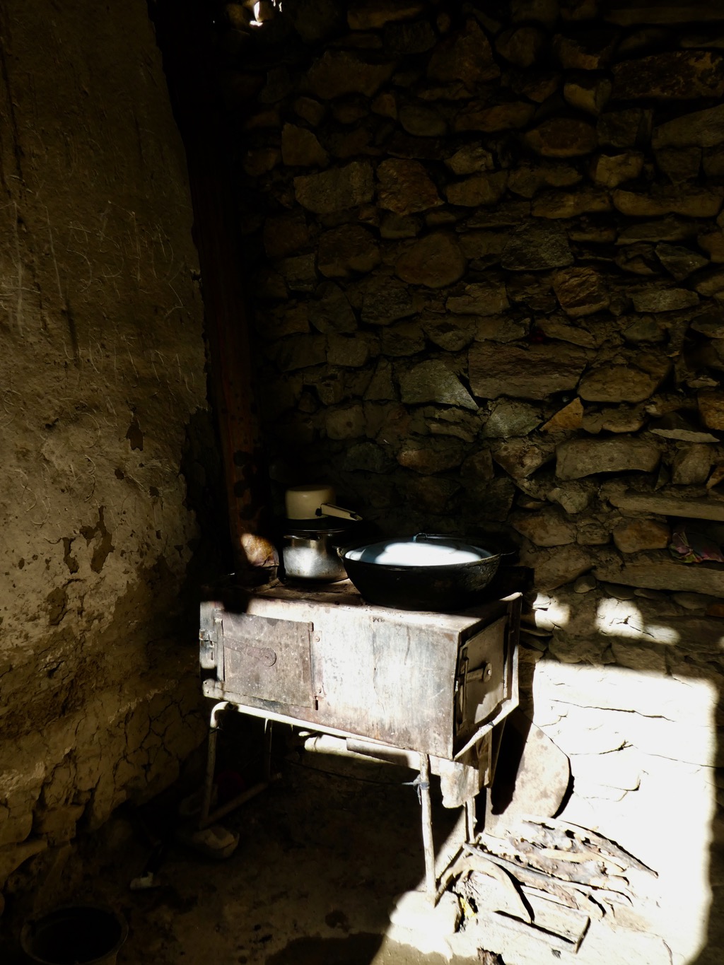 Nach Zeltaufbau ist Kochen angesagt. Es gab schon in Savnob längere Diskussionen mit Avaz bzgl. Gas- vs unserem Benzinkocher, aber der Gaskocher mit Flasche hätte endgültig einen zweiten Esel erfordert und das hielt Avaz für überflüssig … Nachdem der Whisperlite bereits morgens beim Teewasser geschwächelt hatte, geht jetzt gar nichts mehr! Also : Auseinander bauen, Maintenance Kit, Düse, Benzinleitung, Pumpe … Dann rückt Topchi raus, dass das Benzin aus Savnob schlecht sein könnte … mit Öl gemischt (?) – aha, 2-Takter Gemisch ?. Hussein hatte die letzten zwei Tage eine Plastikflasche mit Ersatzbenzin in der Hand getragen. Benzintausch und die ganze Prozedur von vorne. Nichts zu machen! Der Kocher will nicht! Mit völlig Russ verschmierten Händen und nach Benzin stinkend gebe ich nach über einer Stunde auf … ich könnte das Ding auf den Mond schießen !!! Oscheg hatte das HighTech Drahtgestell eh nur mitleidig beäugt und scheint sich fast zu freuen jetzt mit Kuhdung ein richtiges Feuer zur Verfügung stellen zu können – schnell wird ein Steinherd zusammengebastelt und das Abendessen ist gerettet. Als ich dann nach dem Essen im Dunkeln noch auf einen Felsen donnere und mir eine 2 Cent große Wunde in den Handballen reiße, bin ich restlos bedient. Irgendwie bringt mich diese Tour ziemlich an meine Grenze – physisch und psychisch … wir rufen uns die nächsten Tage noch öfters in Erinnerung, dass diese Unternehmung auf unseren Wunsch stattfindet. Aber die Hilfsbereitschaft unserer tadschikischen Begleiter ist immer wieder aufbauend.
